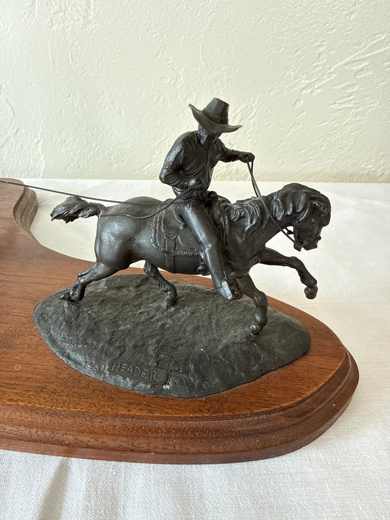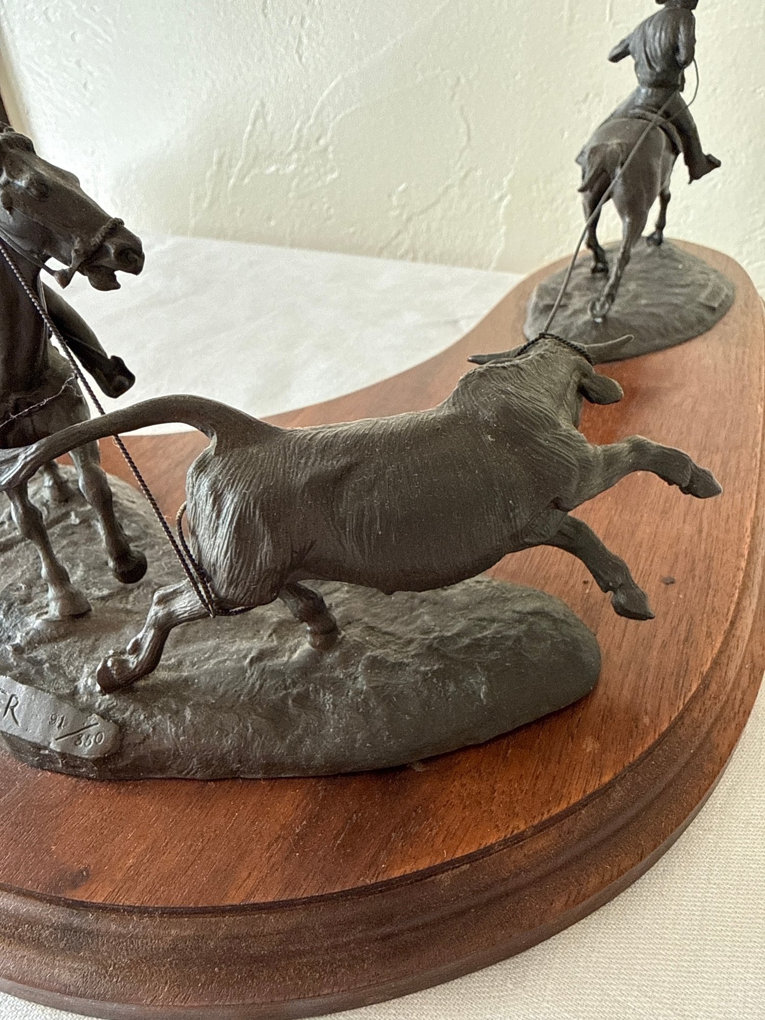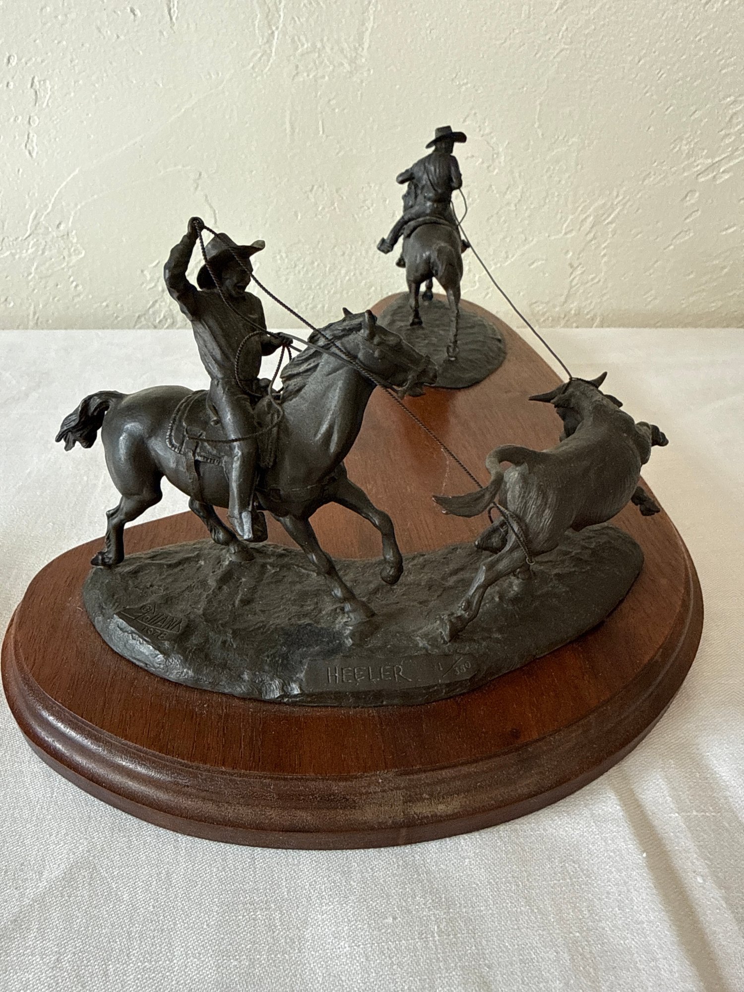 This item is a Don Polland Bronze Sculpture 91/350, “Header & Heeler Team Roping”, as part of a Seven Events of Rodeo collection. Local pickup or courier shipping available – please see shipping terms for details.