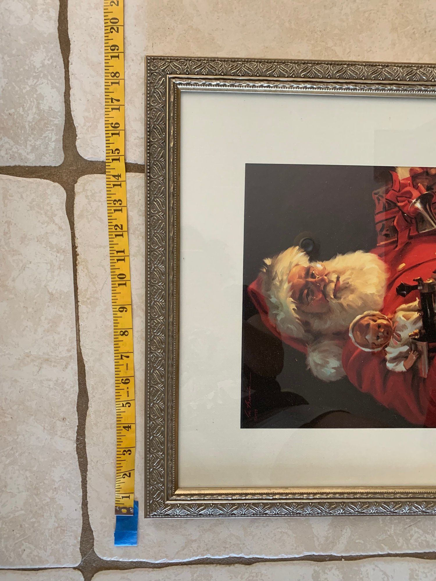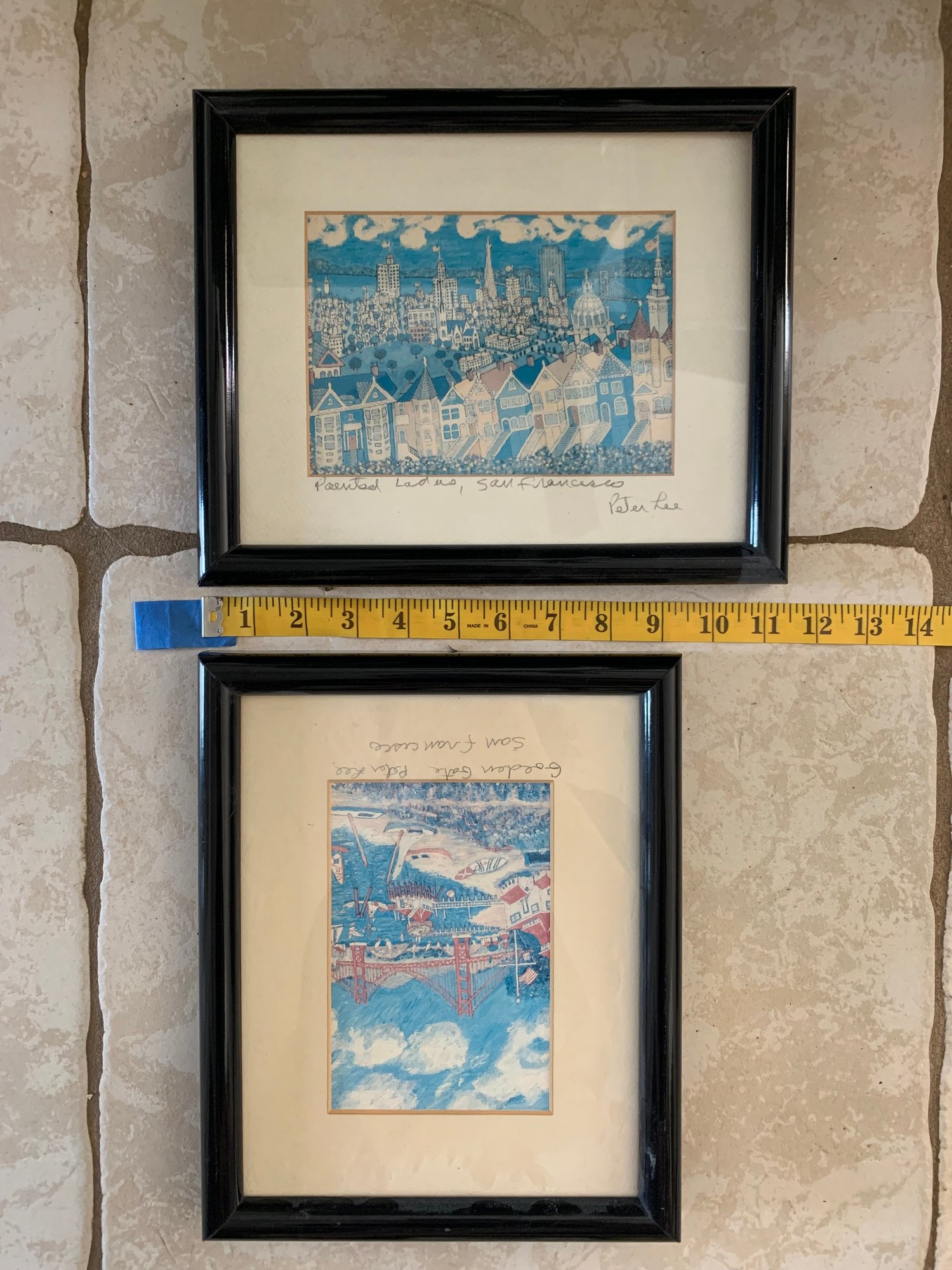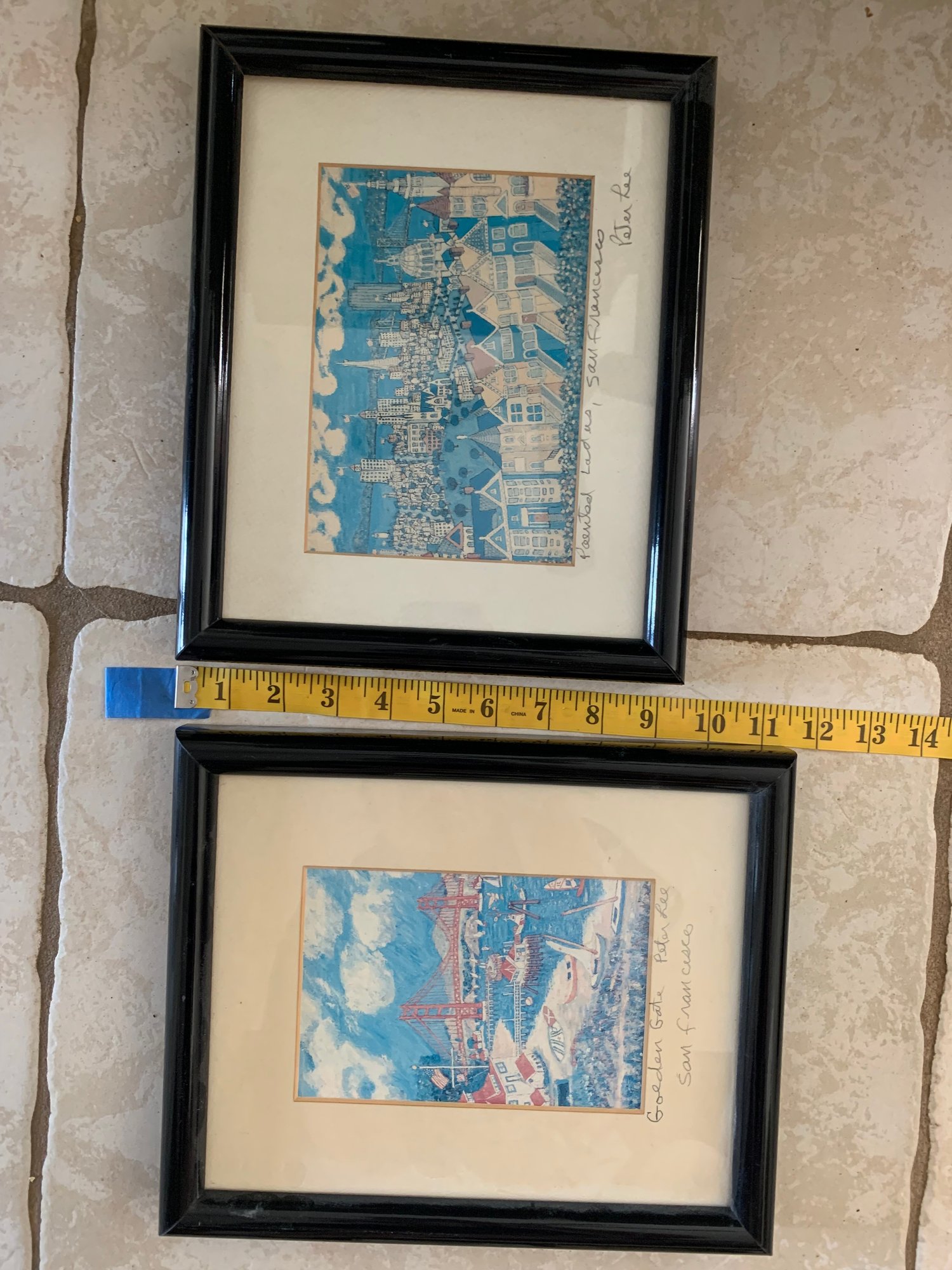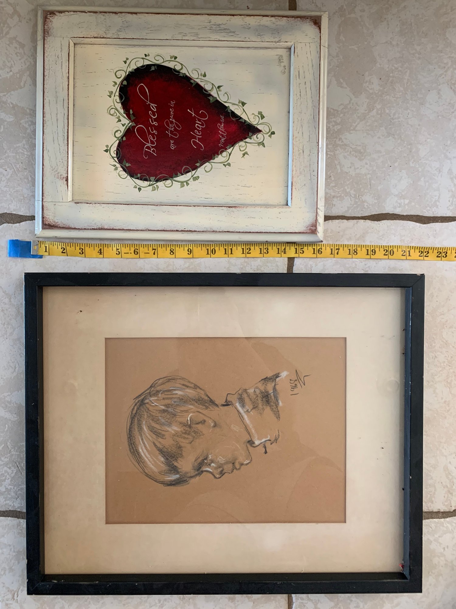 An assortment of framed artworks in various sizes. See photos for dimensions. Local Pickup Only.