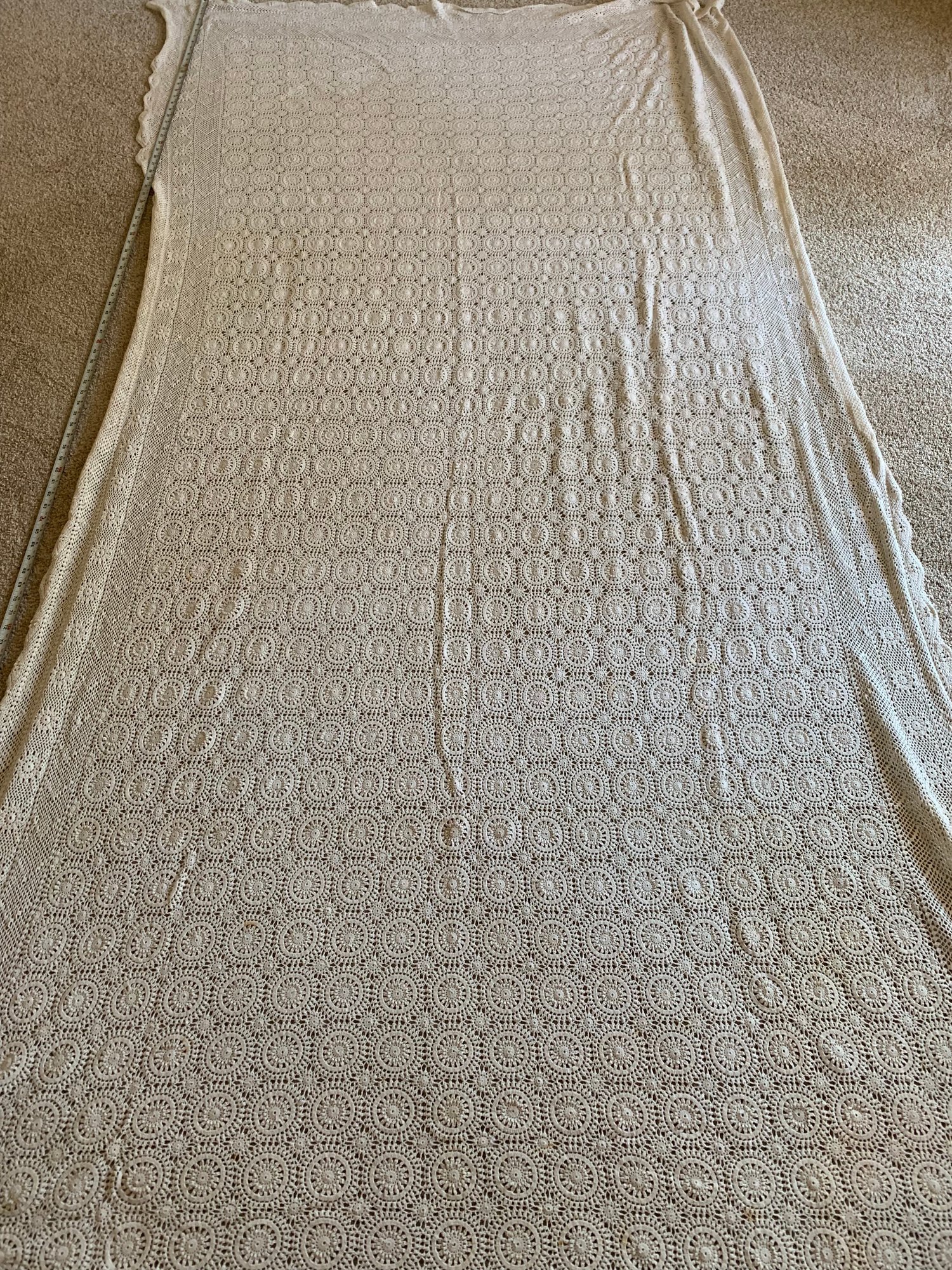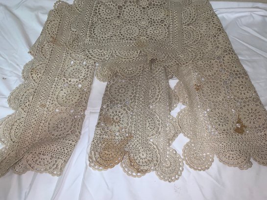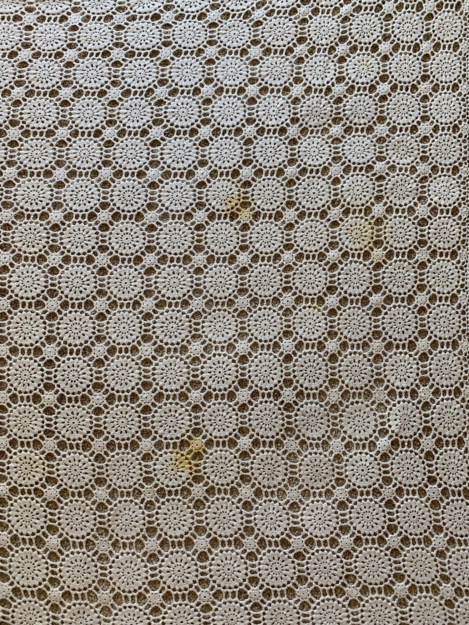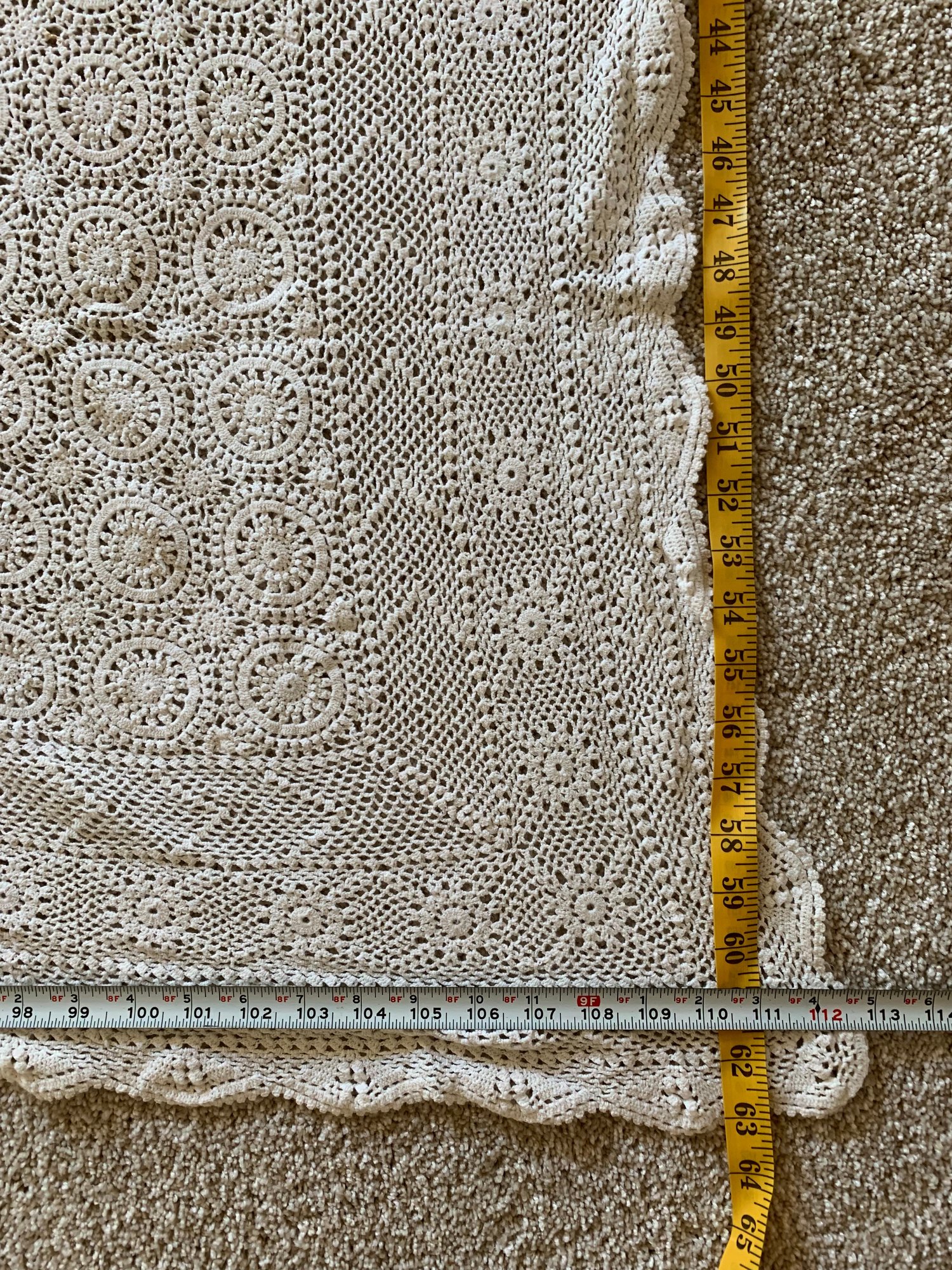 An assortment of place mats and tablecloths. A roll of ribbon and pieces of sheer fabric. Some items are stained and will be shown in photos. Sizes shown in photos.