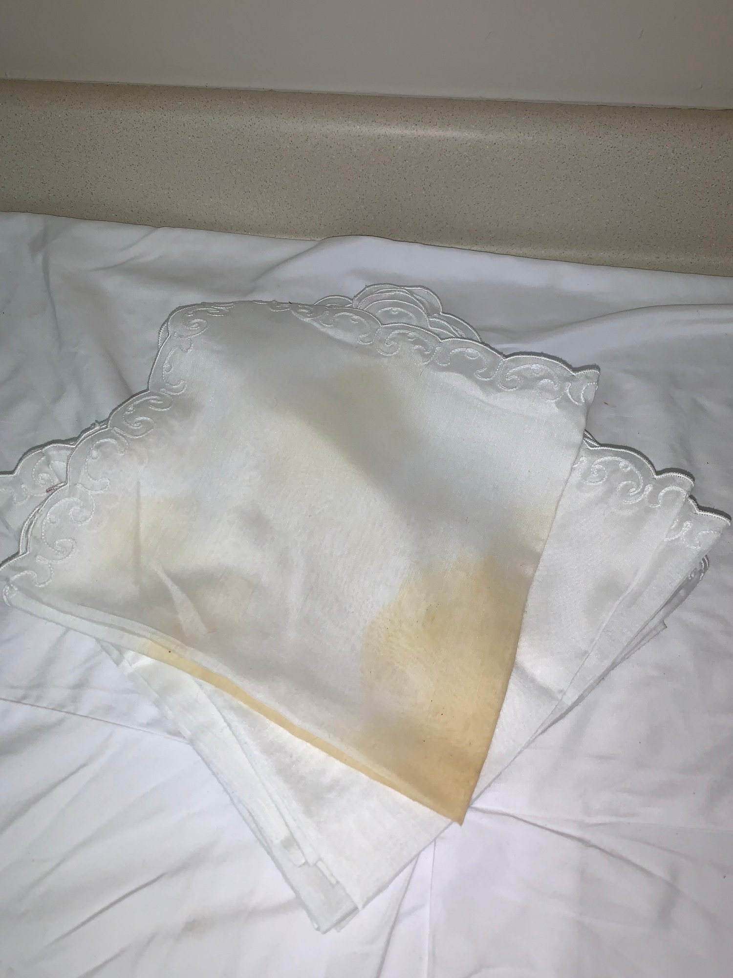 11 purple placemats and 12 purple napkins , 4 tan placemats, 11 white napkins. Local pickup or courier shipping available – please see shipping terms for details.