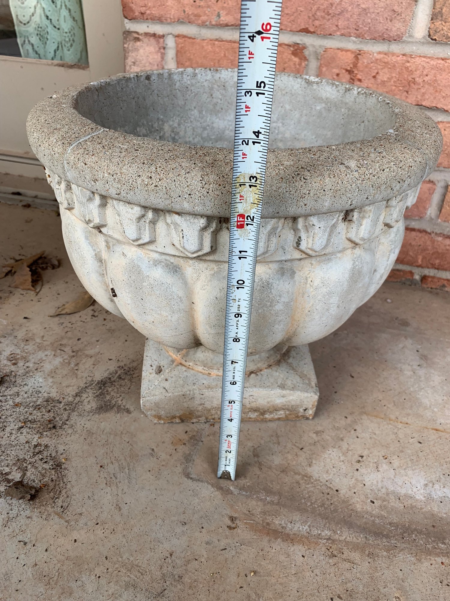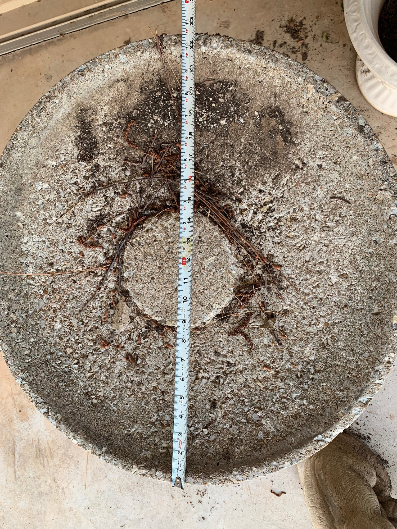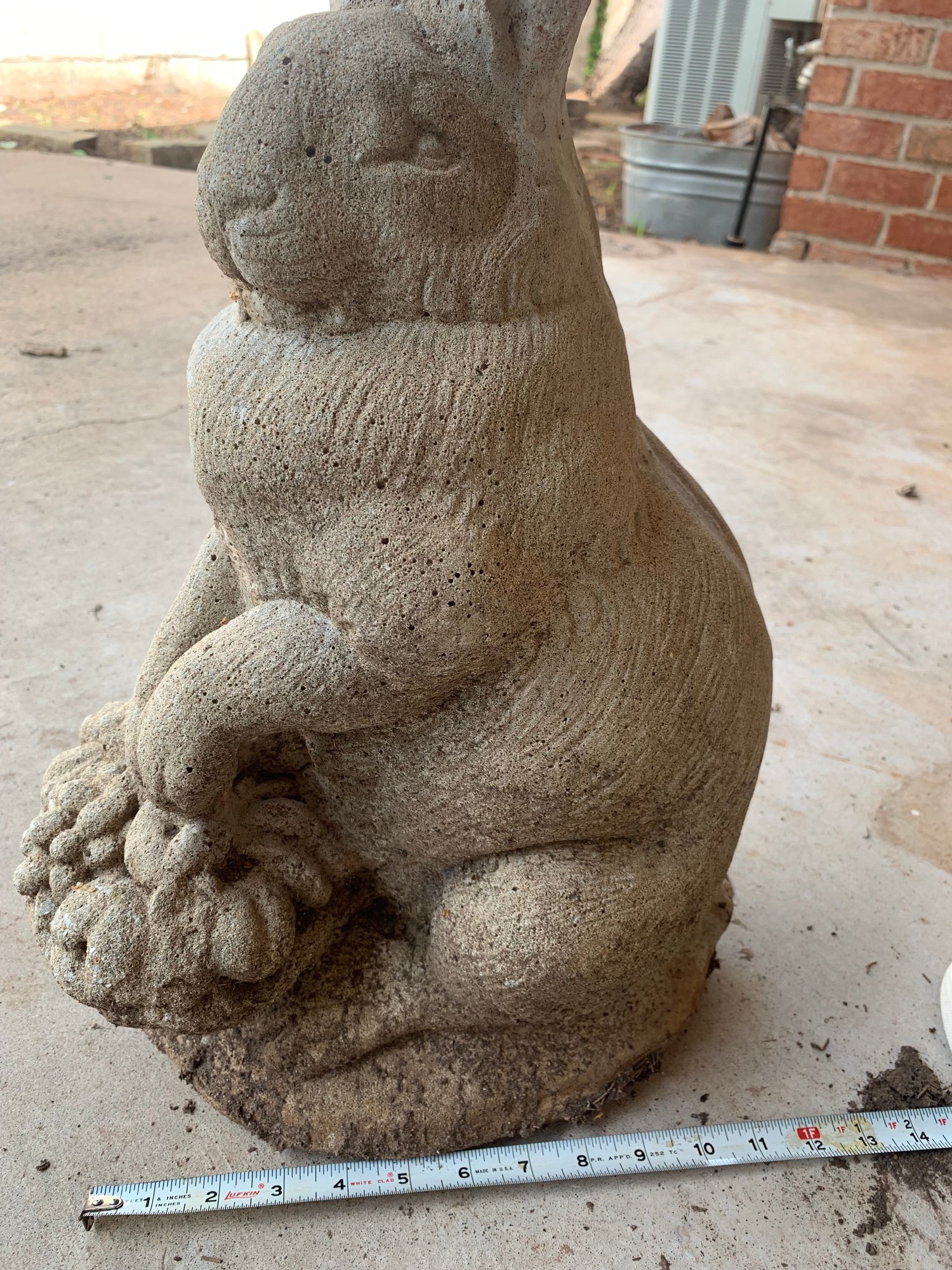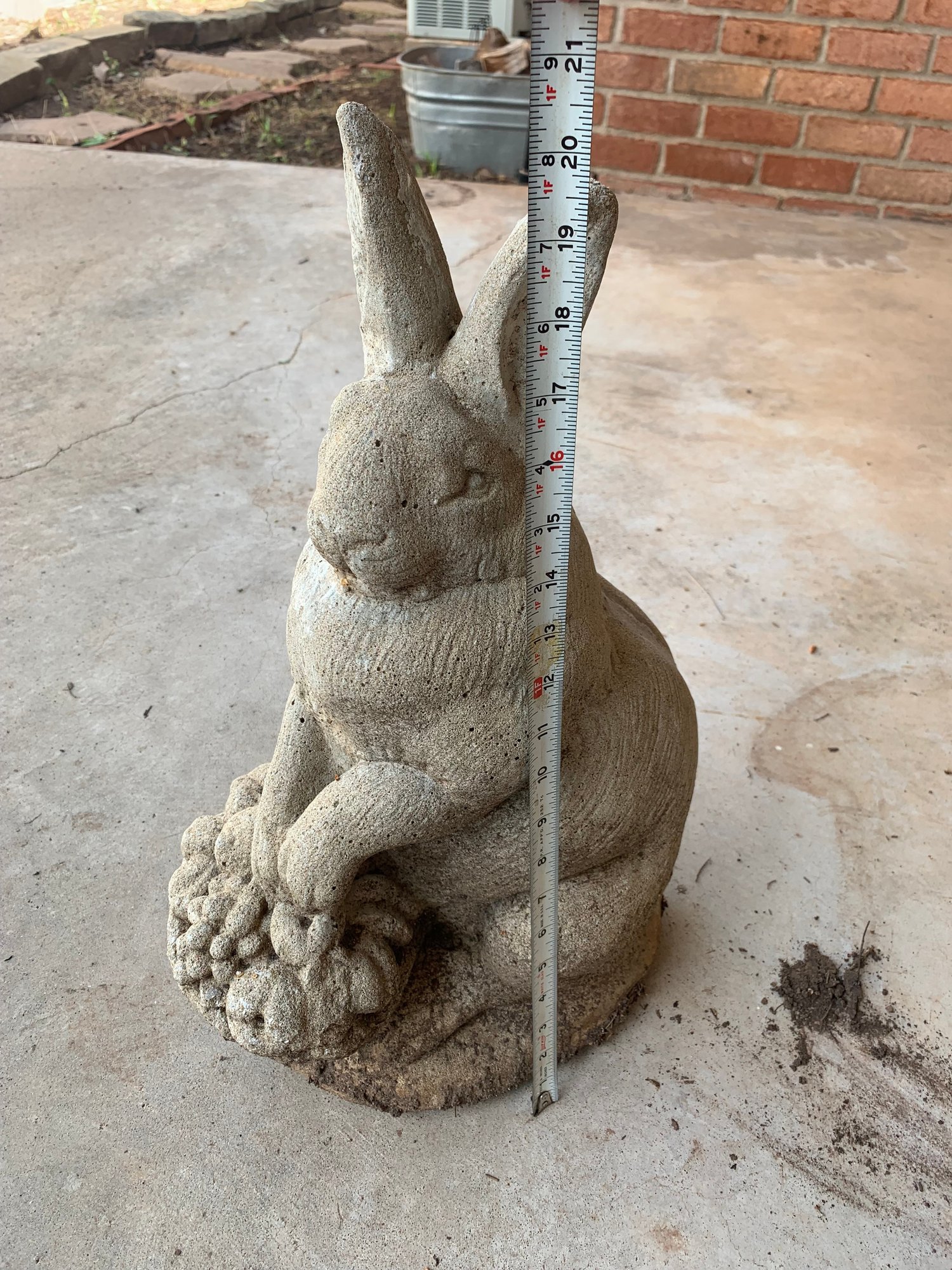 An assortment of lawn decor - two pots, rabbit statue and bird bath. Sizes shown in photos. Local Pickup Only.