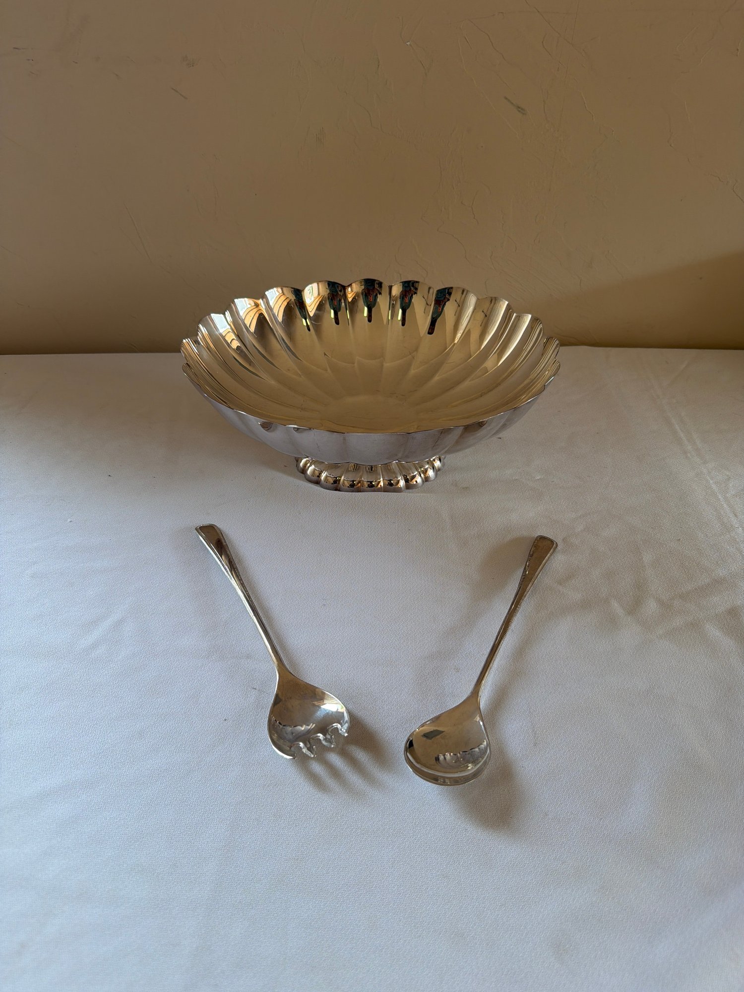 Silver Plated Reed and Barton side dish with spoon and spork serving utensils. Good condition see photos! Local pickup or courier shipping available – please see shipping terms for details.