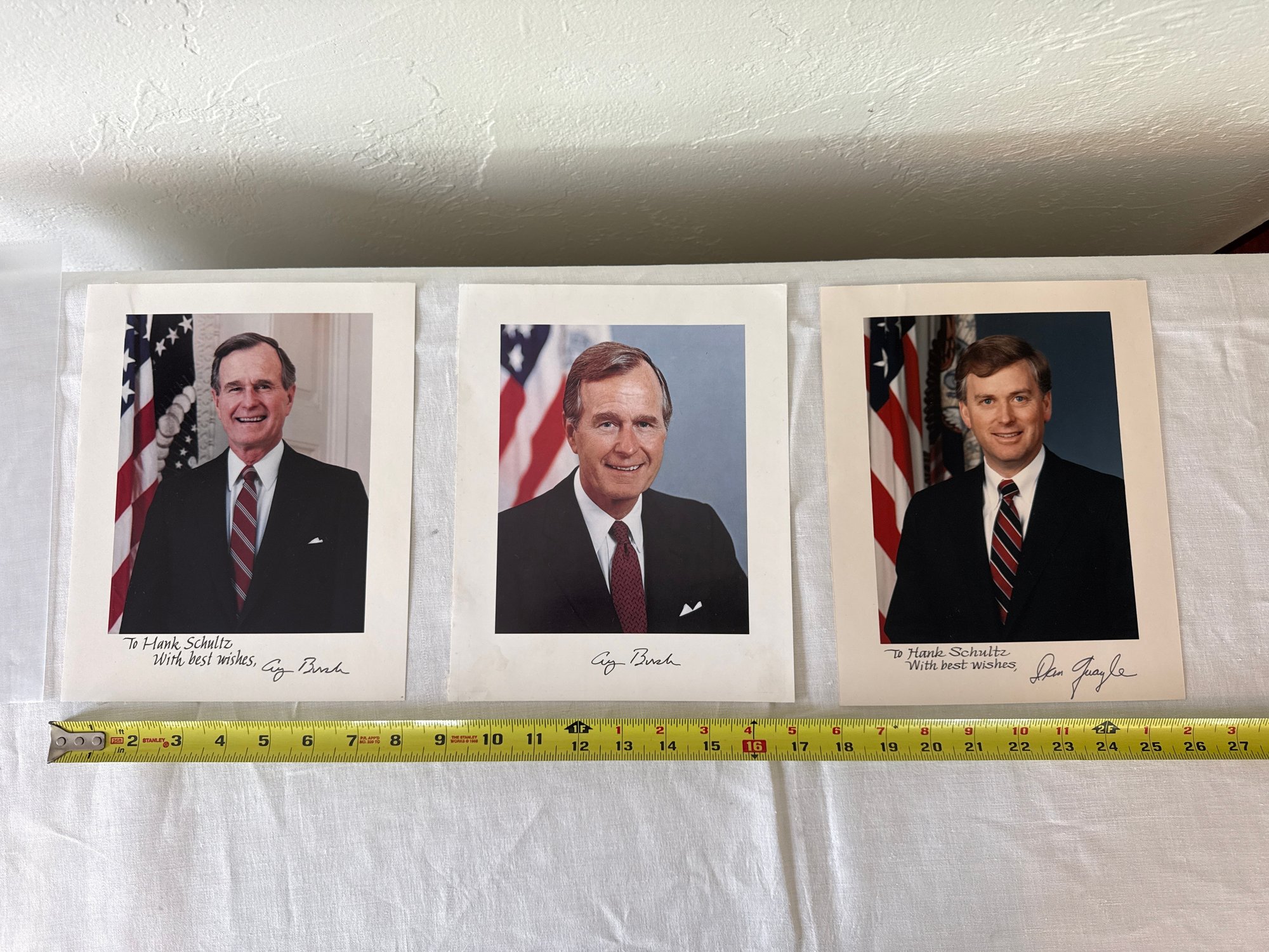 This lot contains personal signature of the past U.S. President George Bush and VP Quayle. See photos for detail. Local pickup or courier shipping available – please see shipping terms for details.