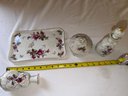 A beautiful assortment of floral porcelain print plates, pourers, and more! Good condition minor dusting suggested see photos! Local pickup or courier shipping available – please see shipping terms for details.