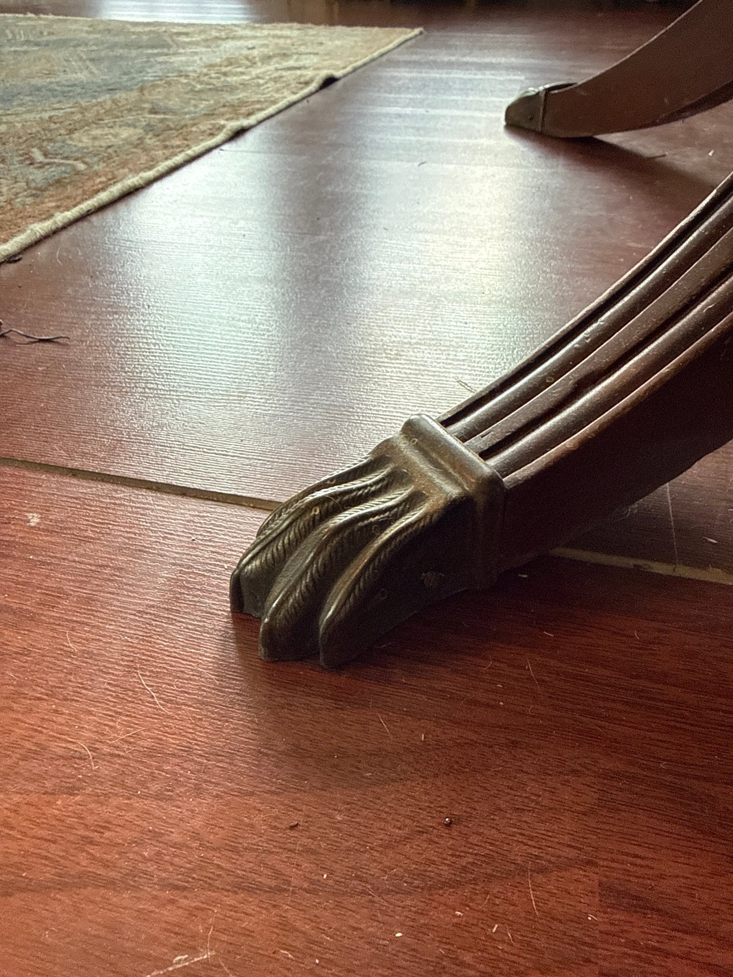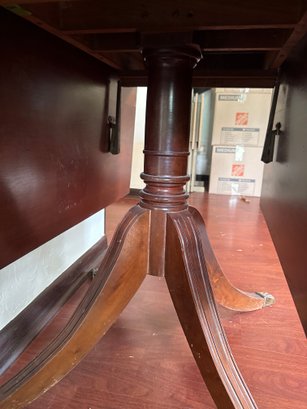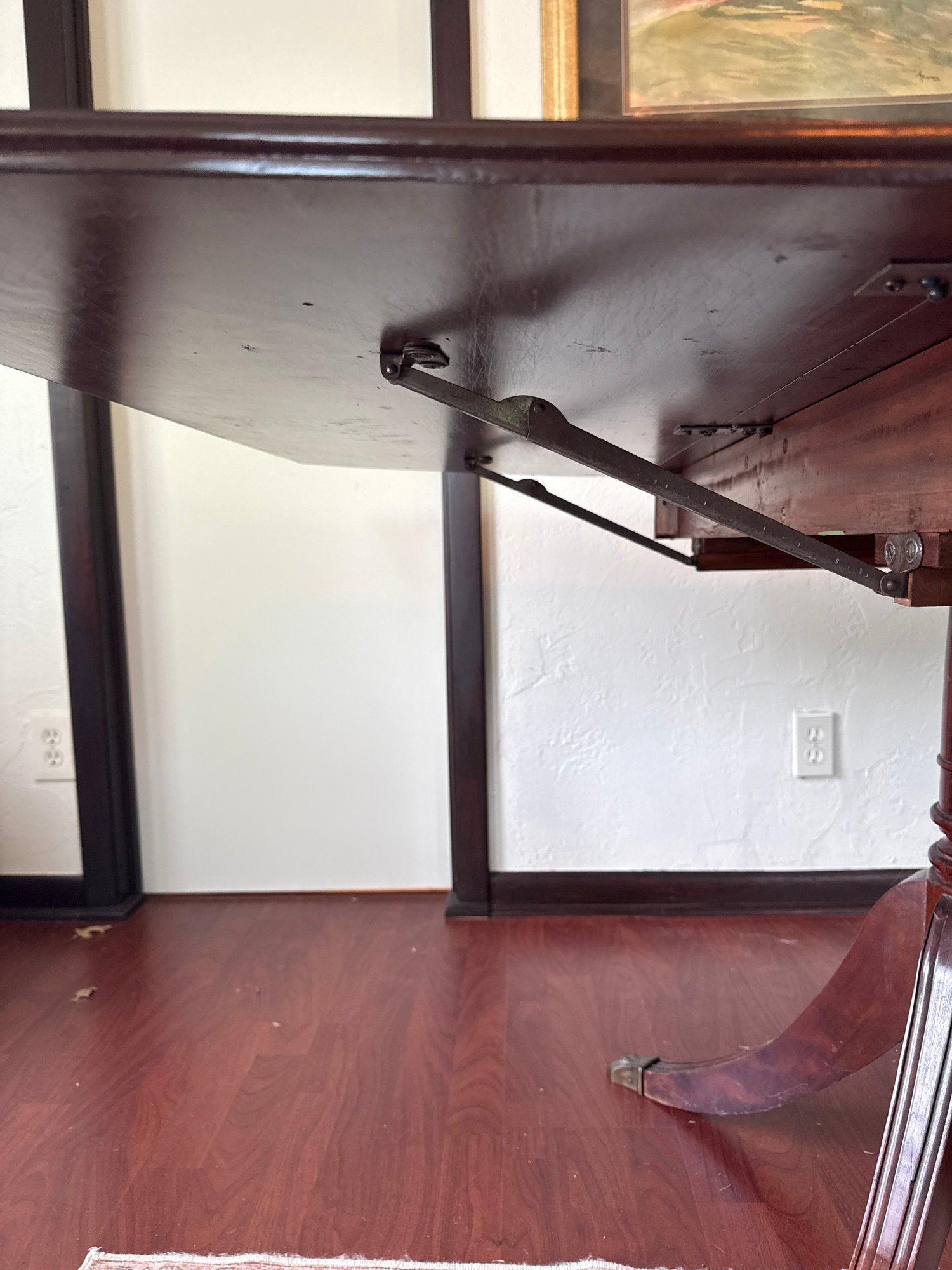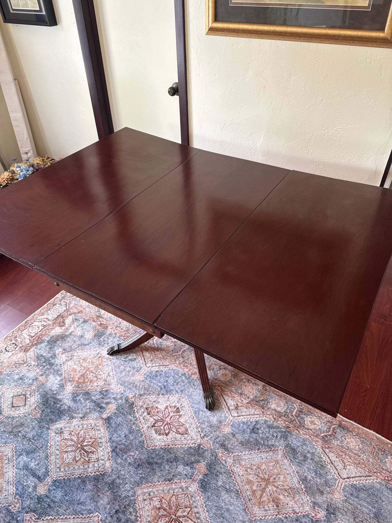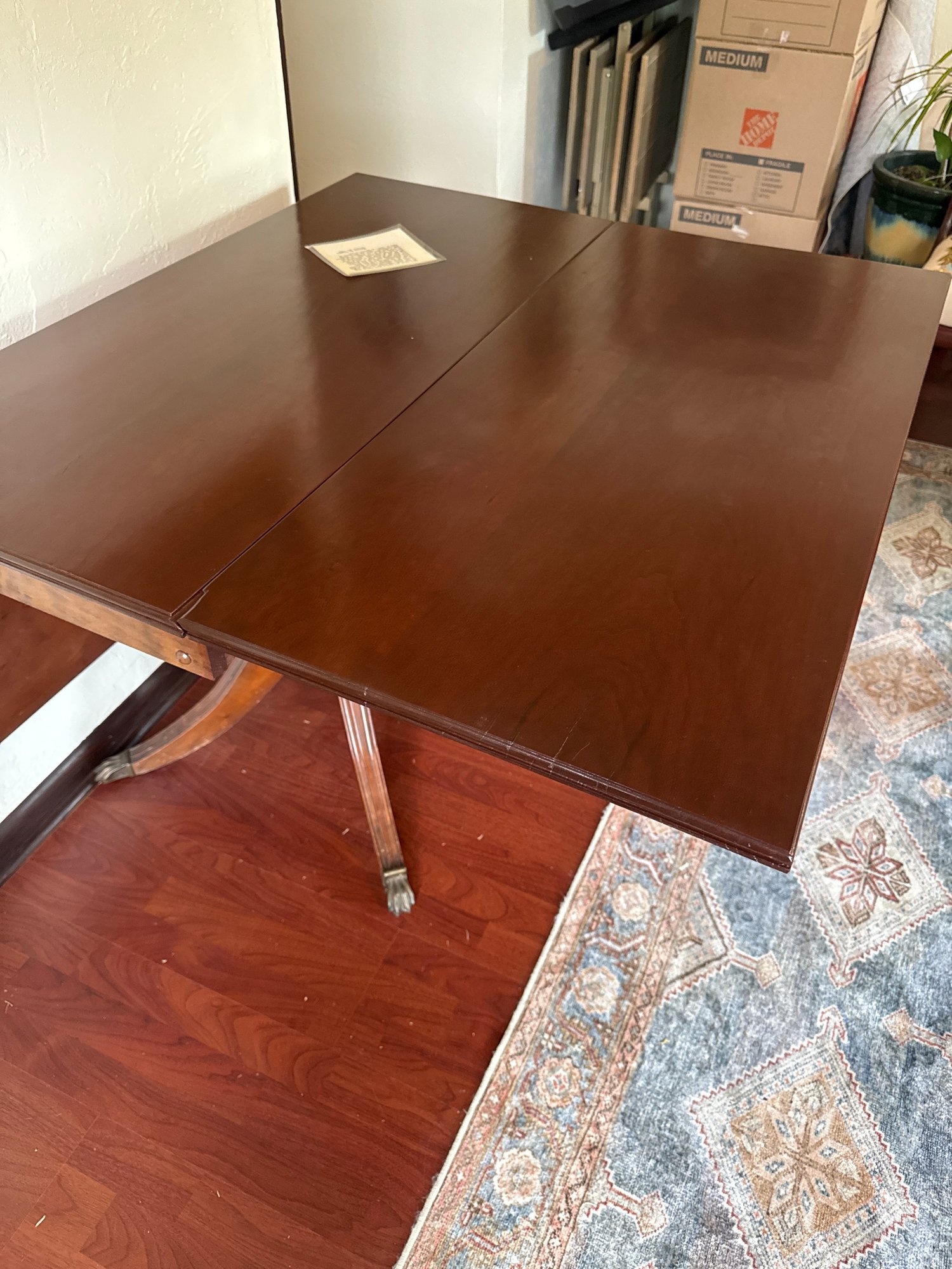 This lot contains a well maintained vintage Gate leg table with brass claw feet. It comes with a note of the history of the table.