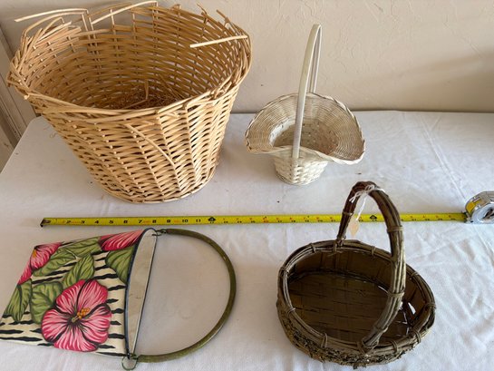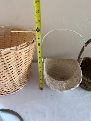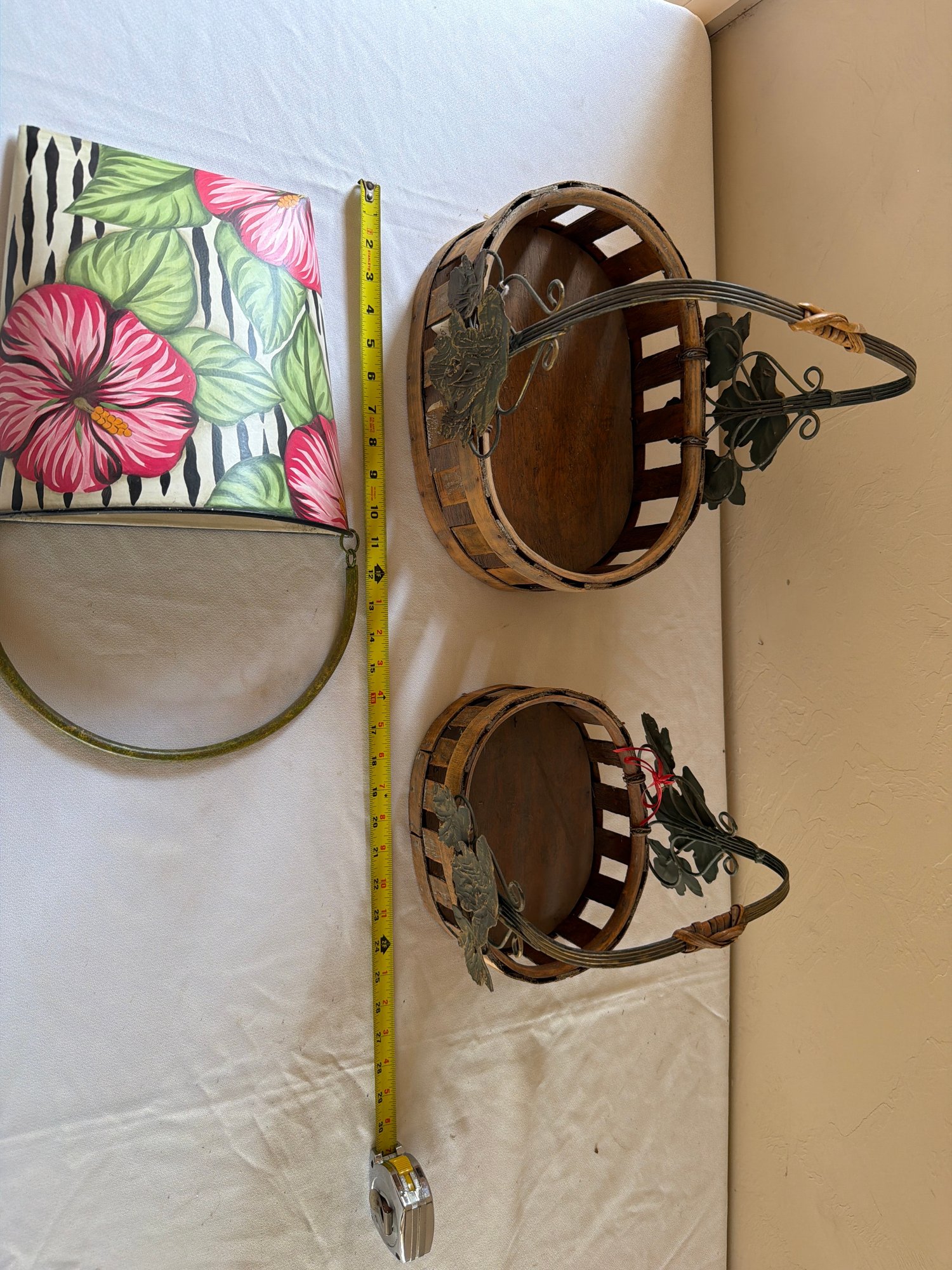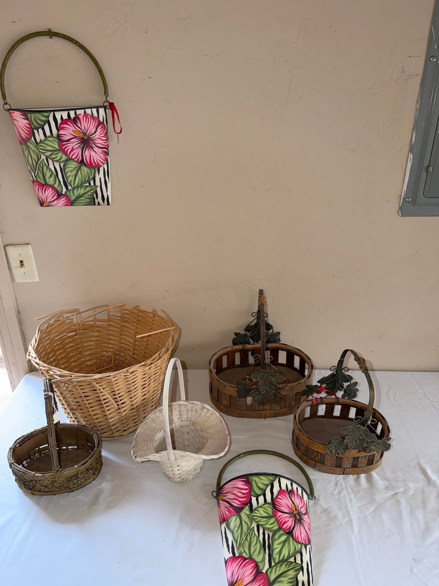 An assortment of wicker baskets and some tropical hanging decor. Various sized baskets some minor ware see photos! Local pickup only.