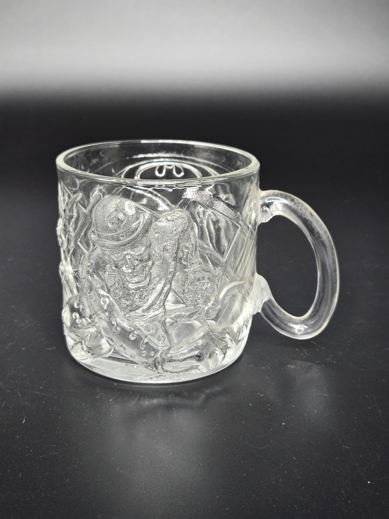 1009 Batman Forever The Riddler is 3.25" tall x 3" diameter" 4.75" with handle.