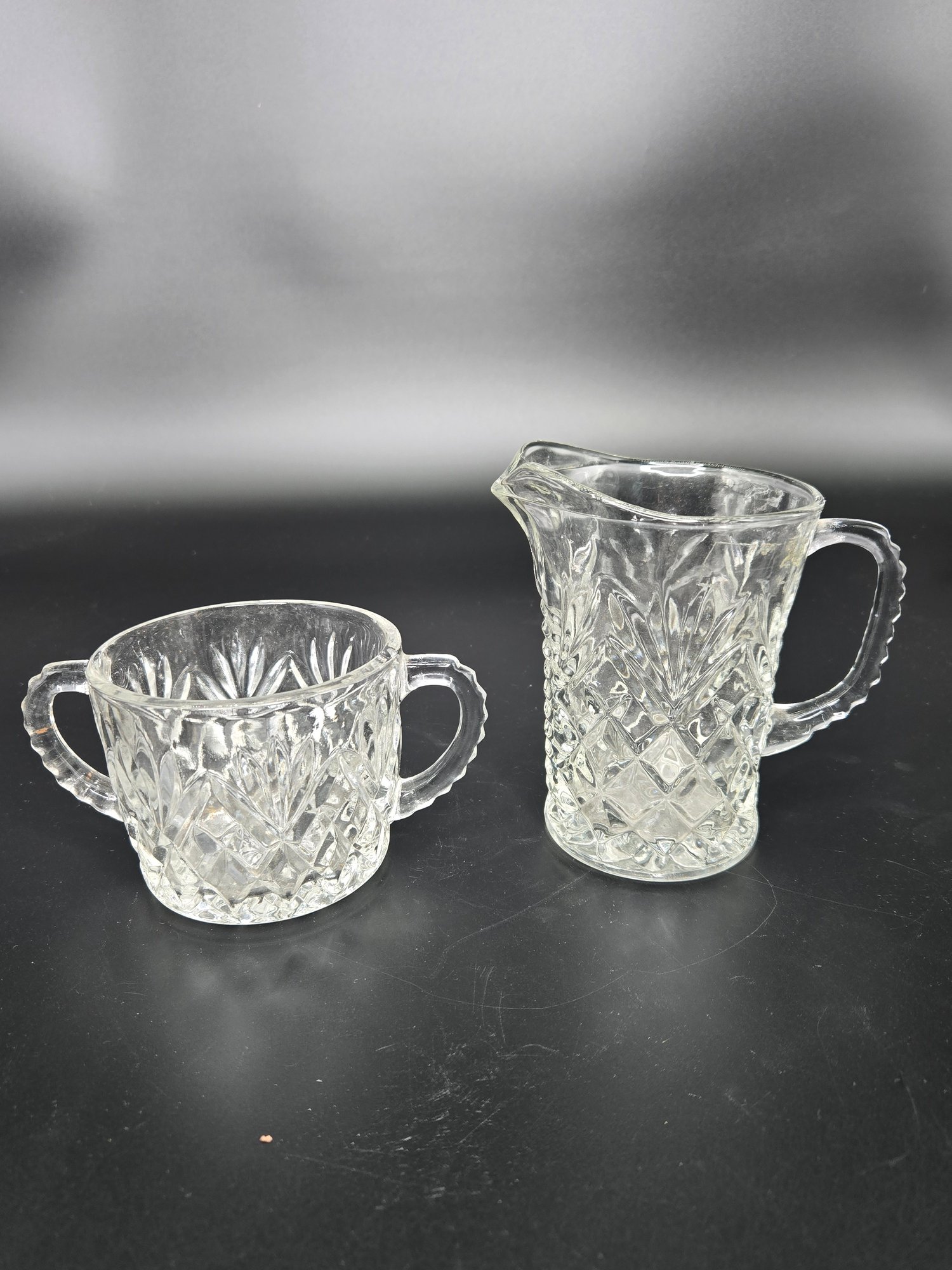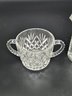 The sugar bowl measures 5 3/4" wide x 3 1/2" deep x 3" tall.