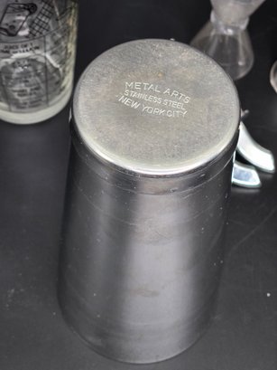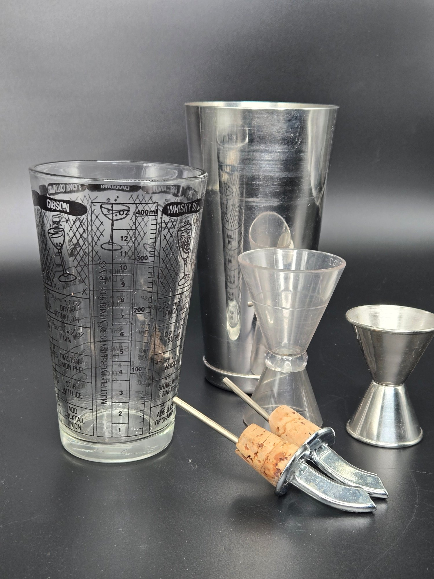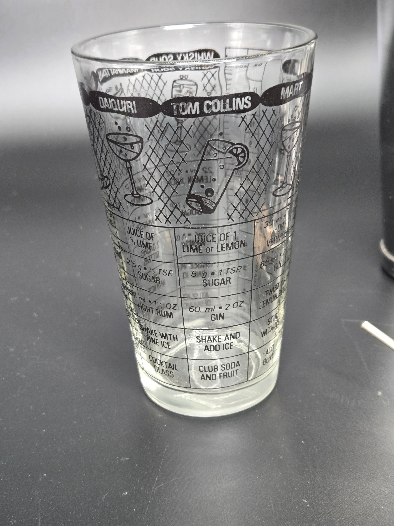 The glass has drink recipes on the side.