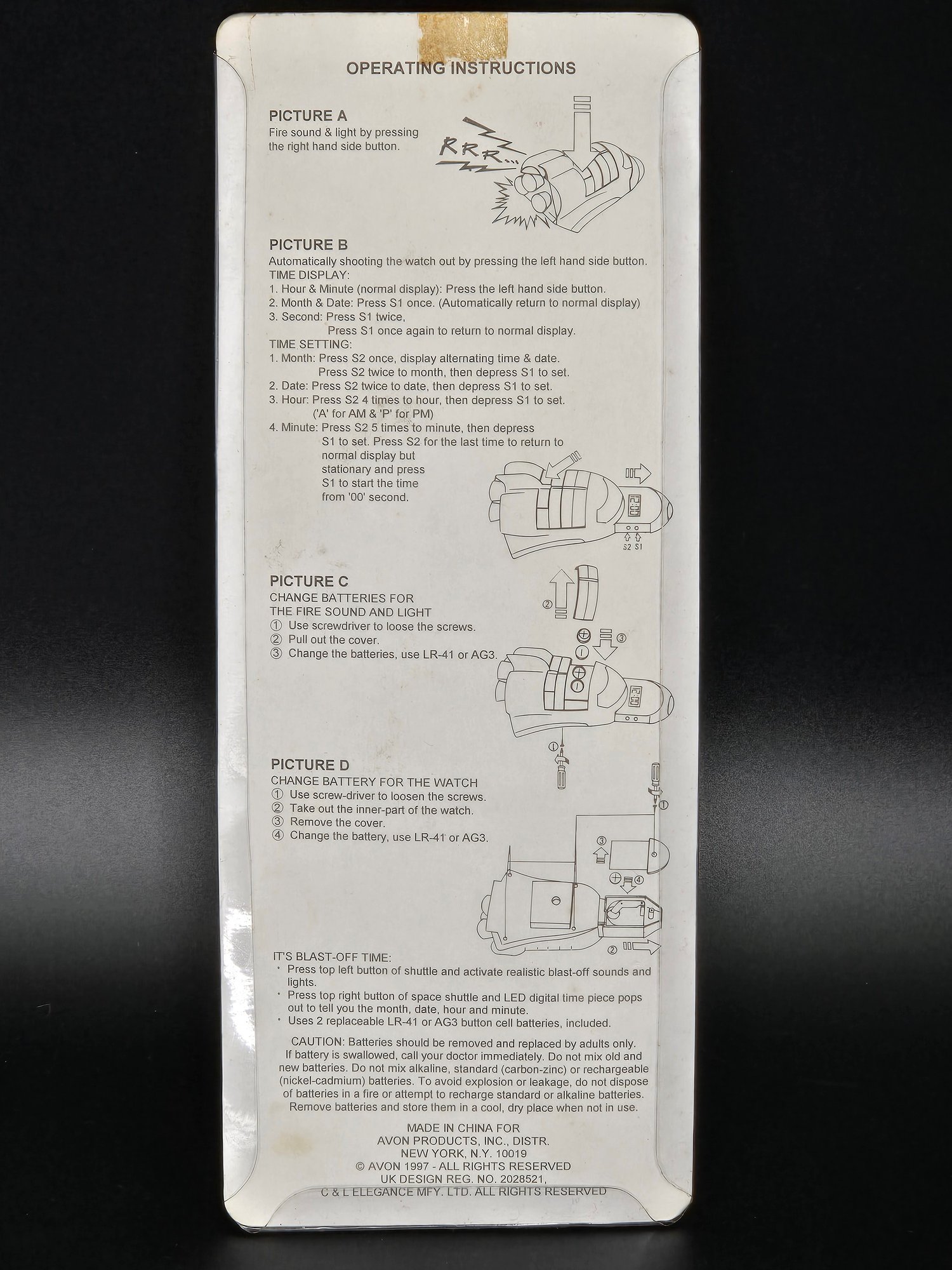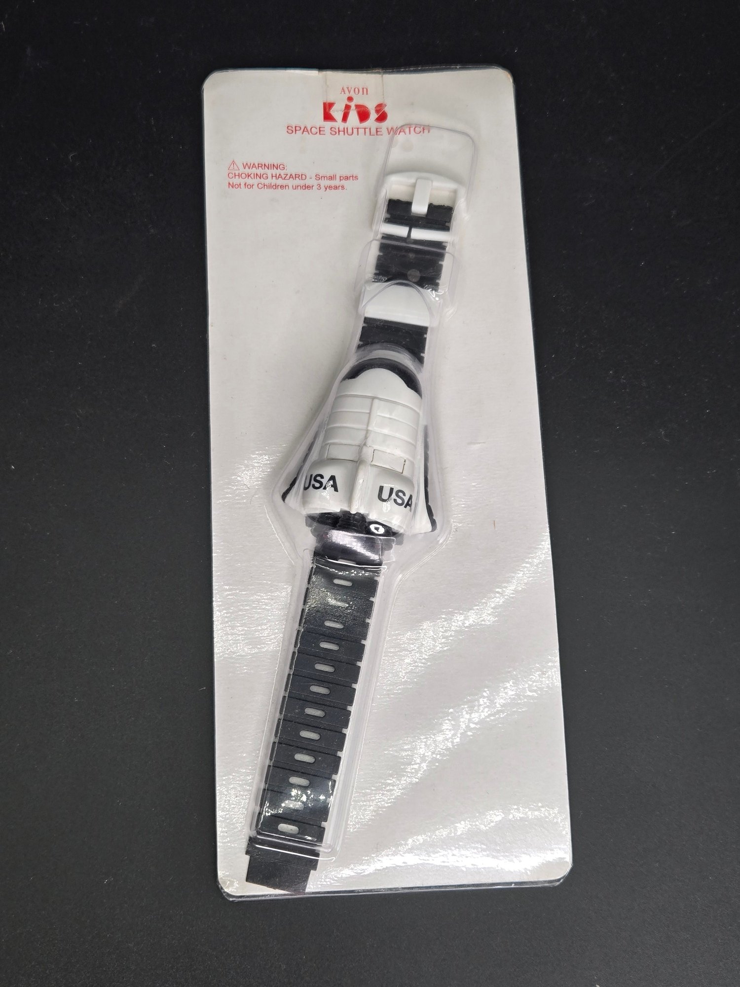 The watch measures 9" long x 1 1/2" wide band. Space shuttle measures 2" wide x 2 1/2" long x 2" tall
