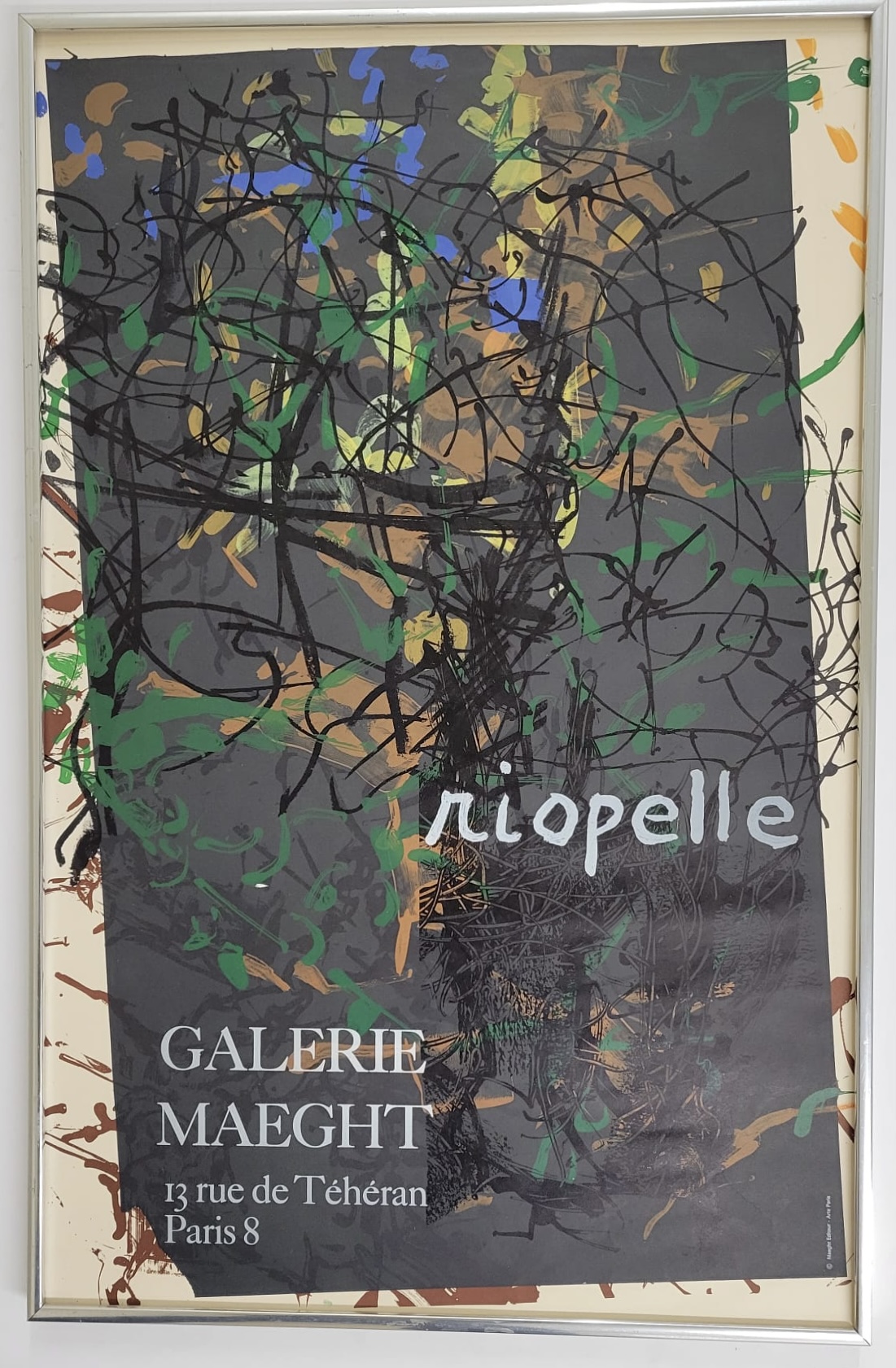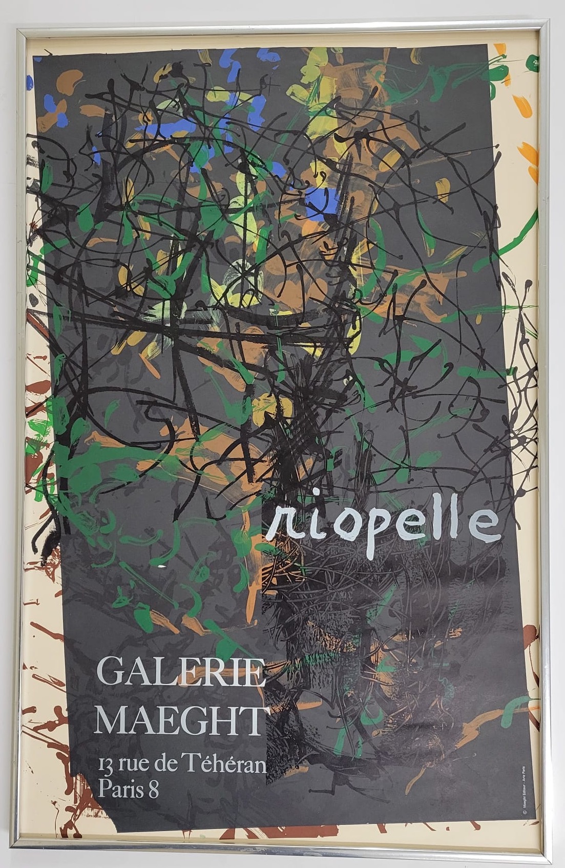 Immerse yourself in the vibrant world of Jean-Paul Riopelle with this striking artwork, a testament to his mastery of color and form. This piece, framed elegantly, captures the essence of Riopelle's dynamic style, characterized by bold brushstrokes and a rich palette that evokes a sense of movement and emotion. No mat Silver Metal Frame Art Size 18X28.