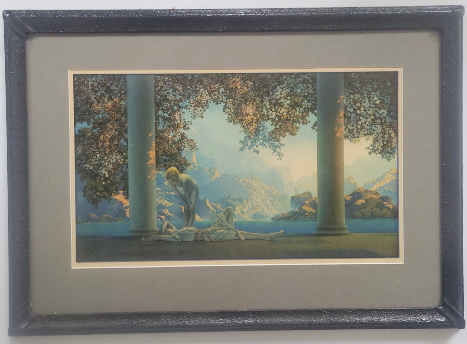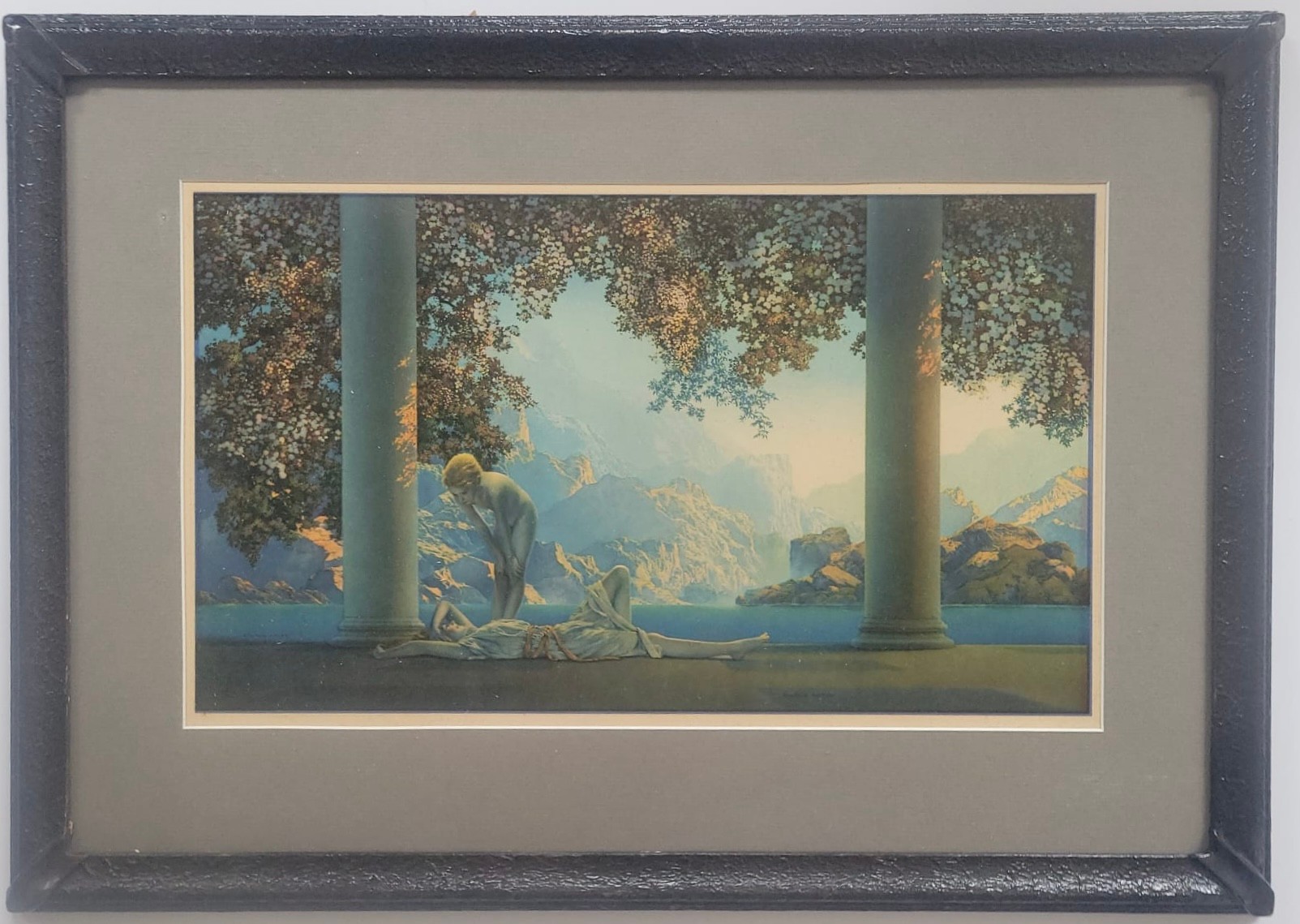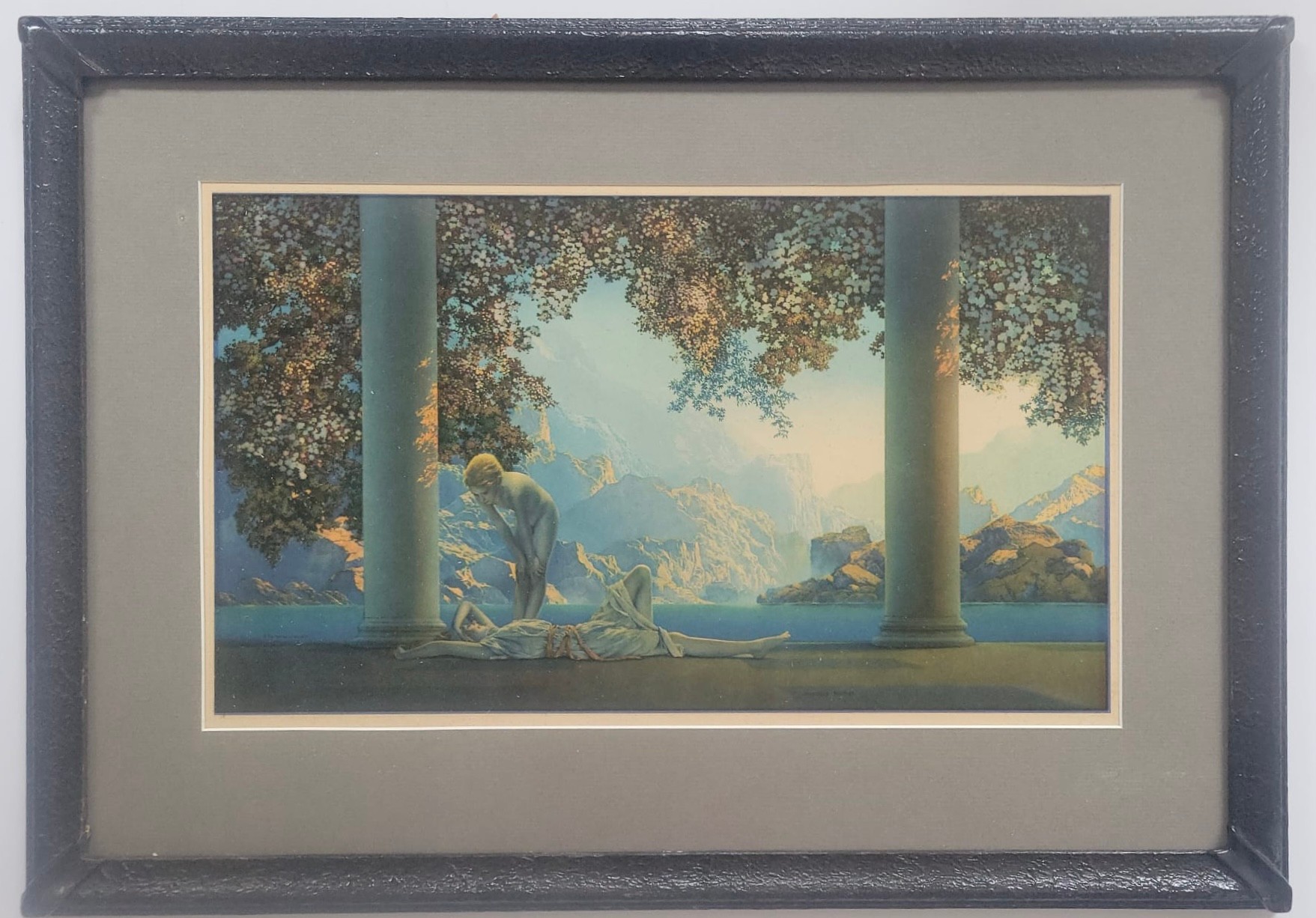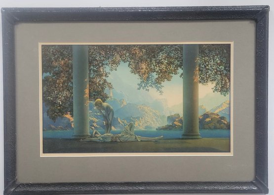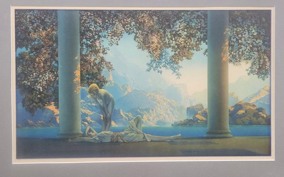 Vintage art print titled "Daybreak" by the renowned American artist Maxfield Parrish.