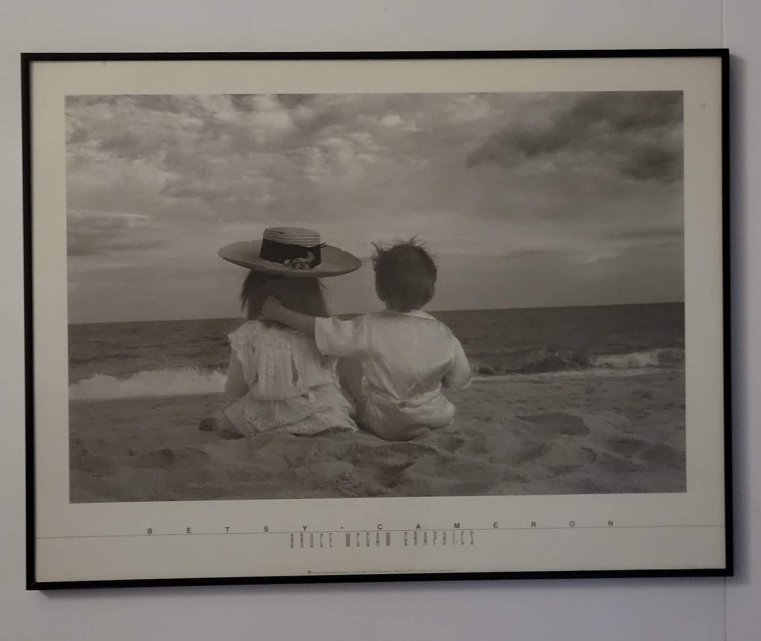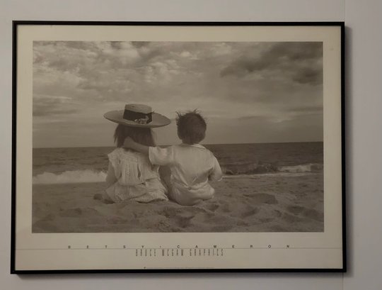 Betsy Cameron Art Print of Two Children on the Beach.. No Mat, Black Metal Frame ( Art Size 18x24)