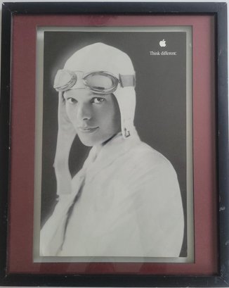 Black-and-white Poster Print of Amelia Earhart, the first female solo pilot to cross the Atlantic Ocean.