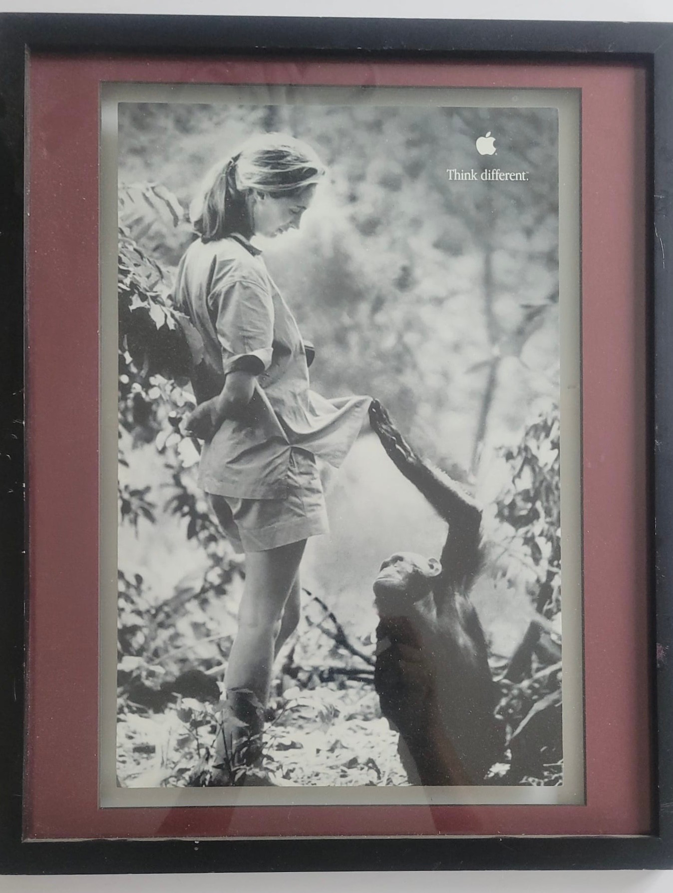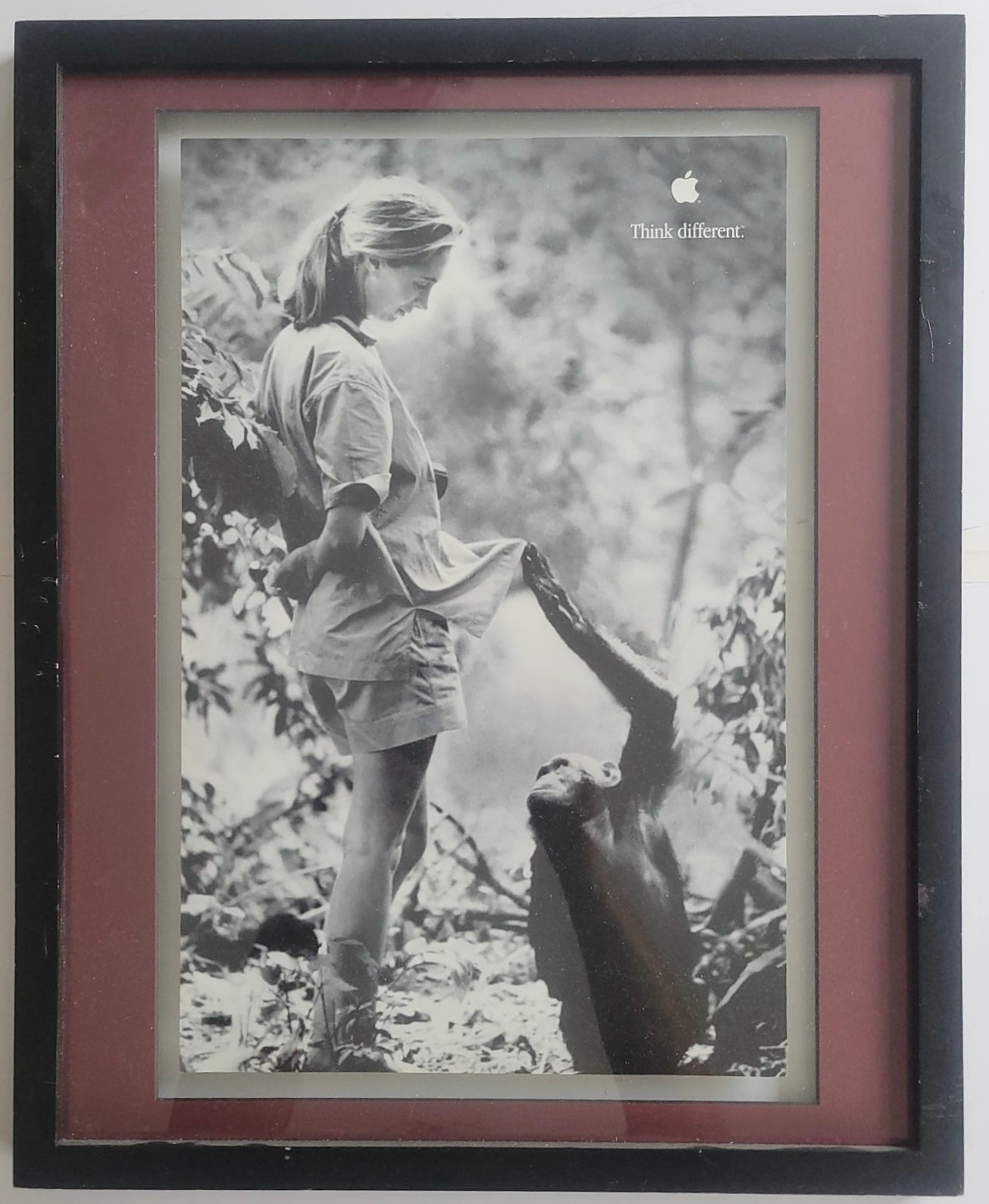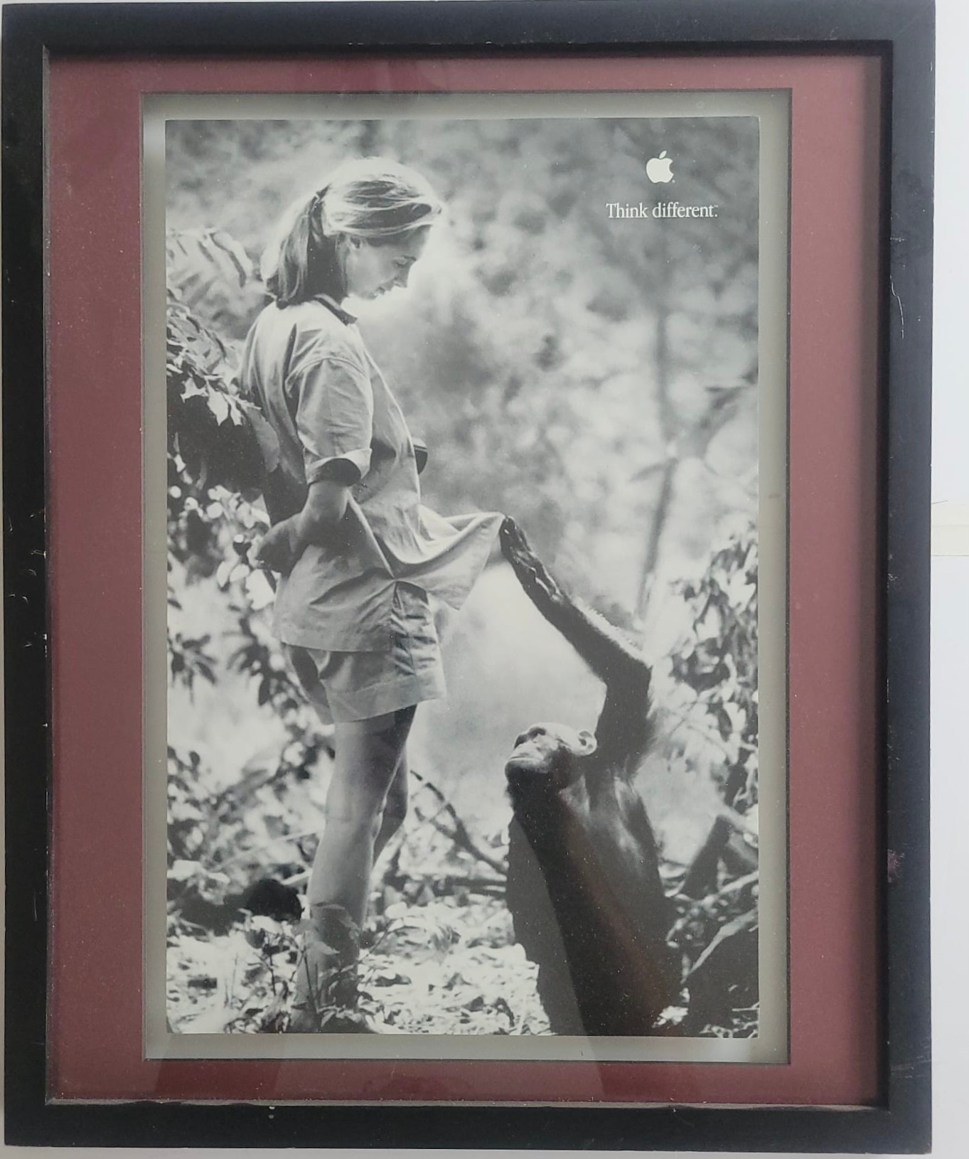 Black and White Poster Print featuring the English primatologist and anthropologist Jane Goodall as part of Apple's "Think Different" campaign.