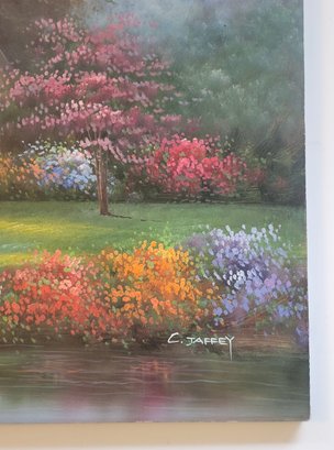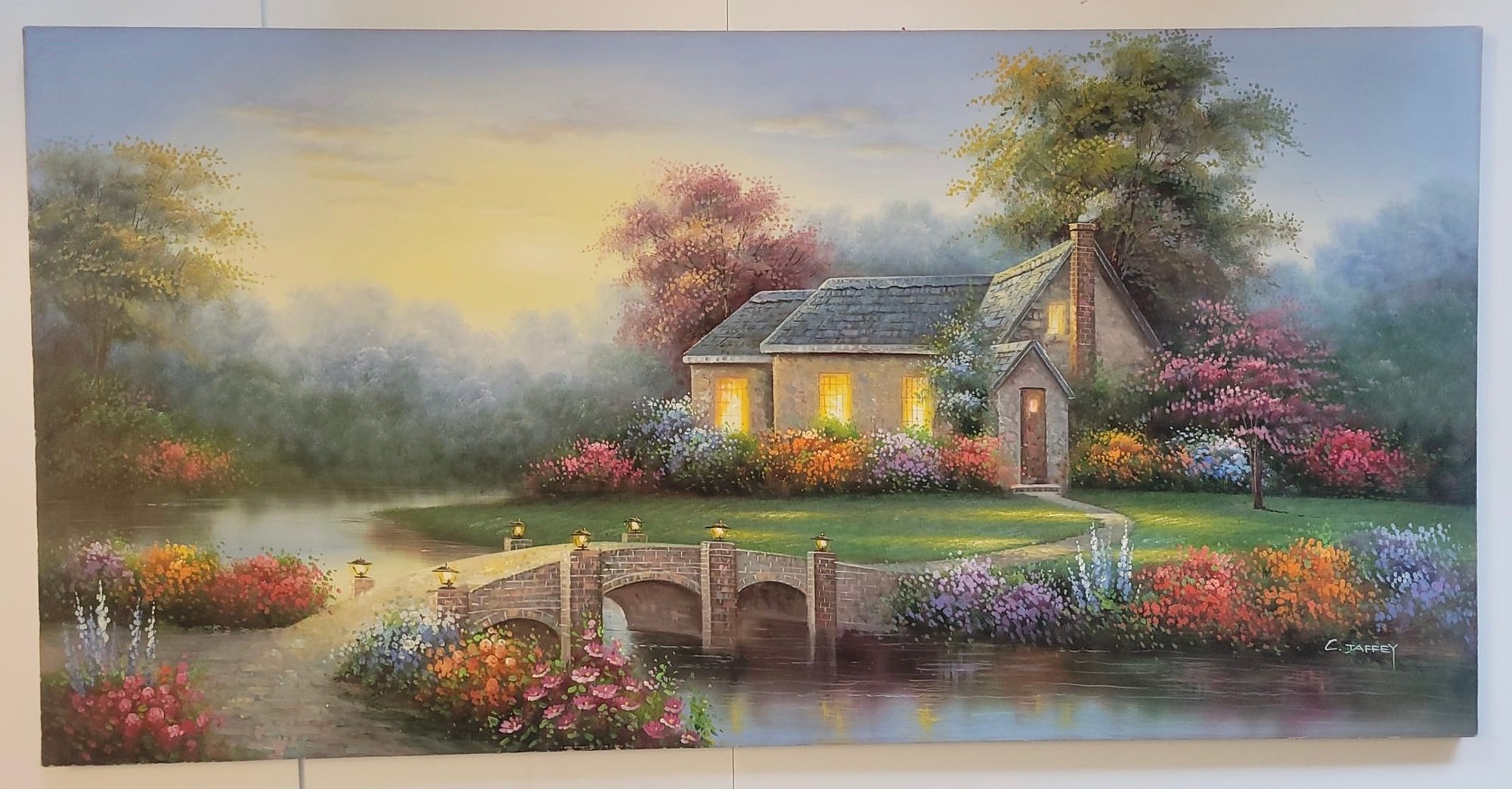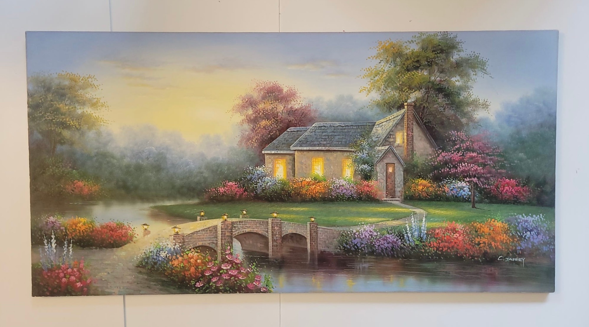 Canvas of Cottage Landscape signed by C. Jaffey.