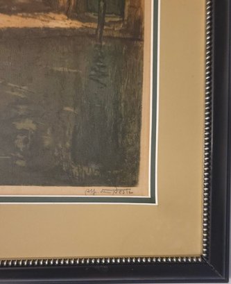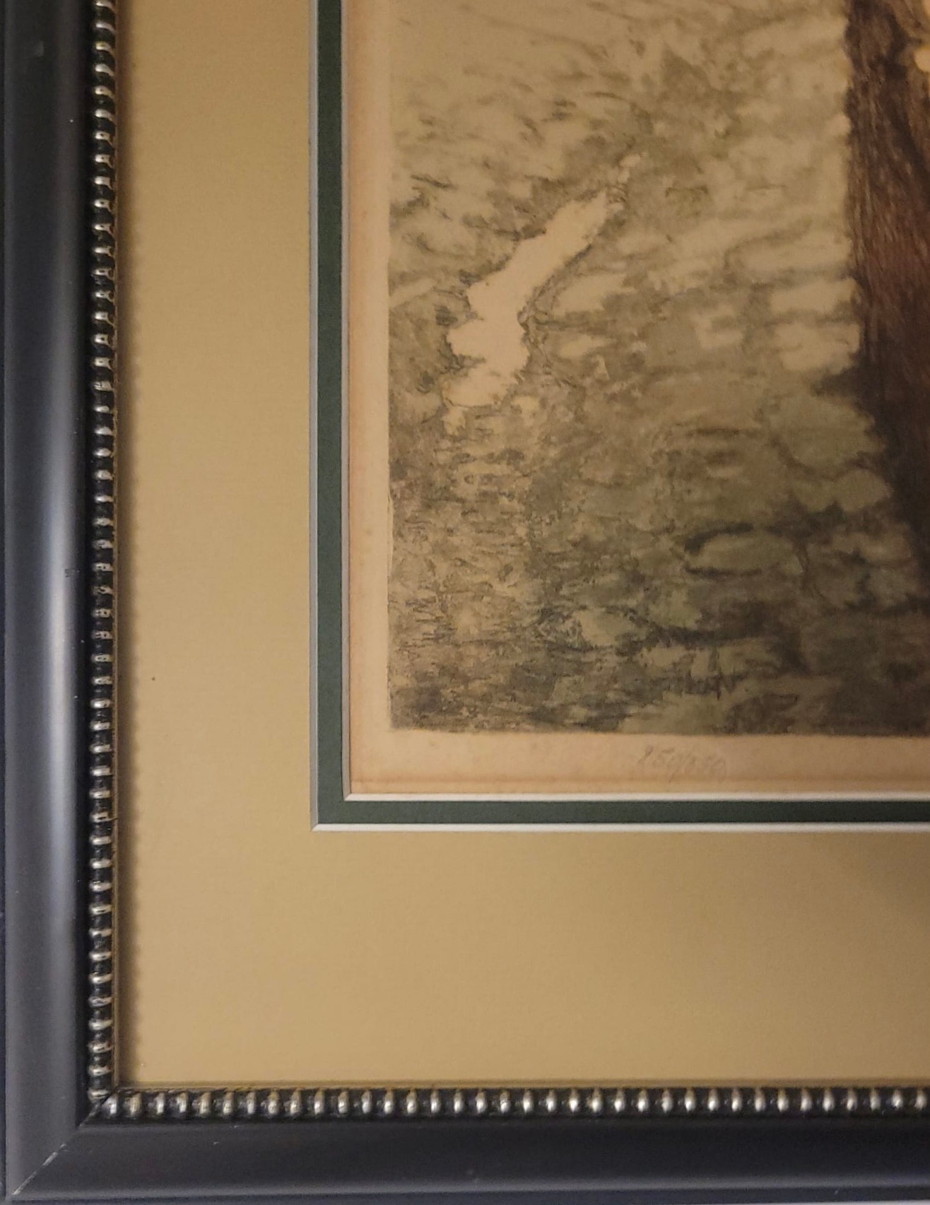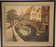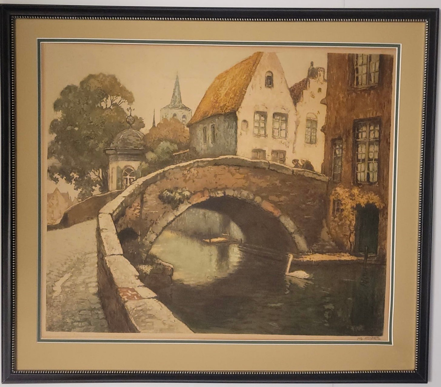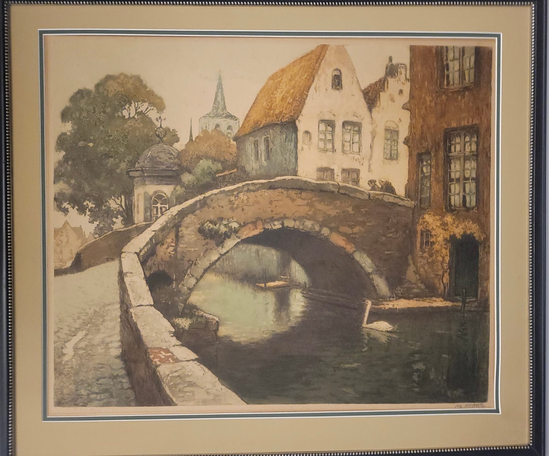 Colored etchingprint depicting a canal scene in Bruges, Belgium, by the Belgian artist Alfred Joseph Auguste Van Neste (1874–1969).