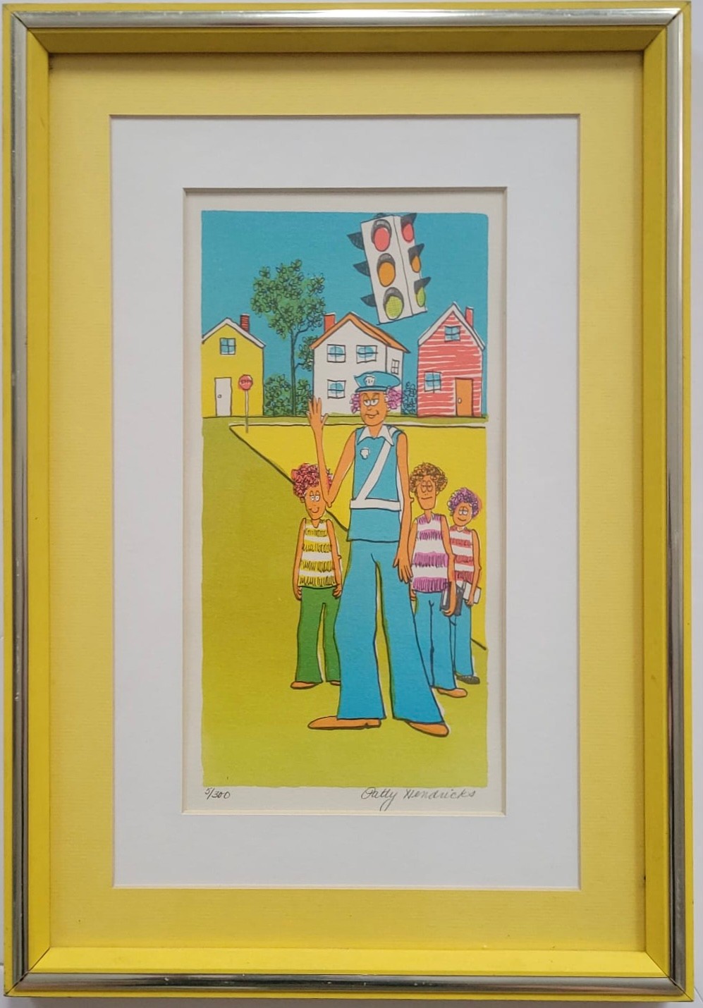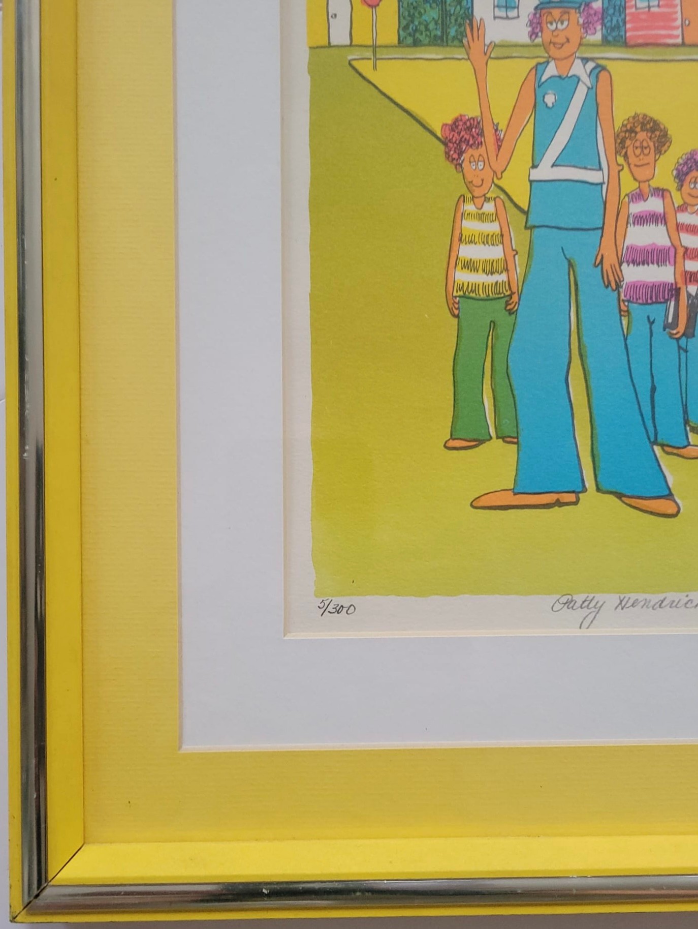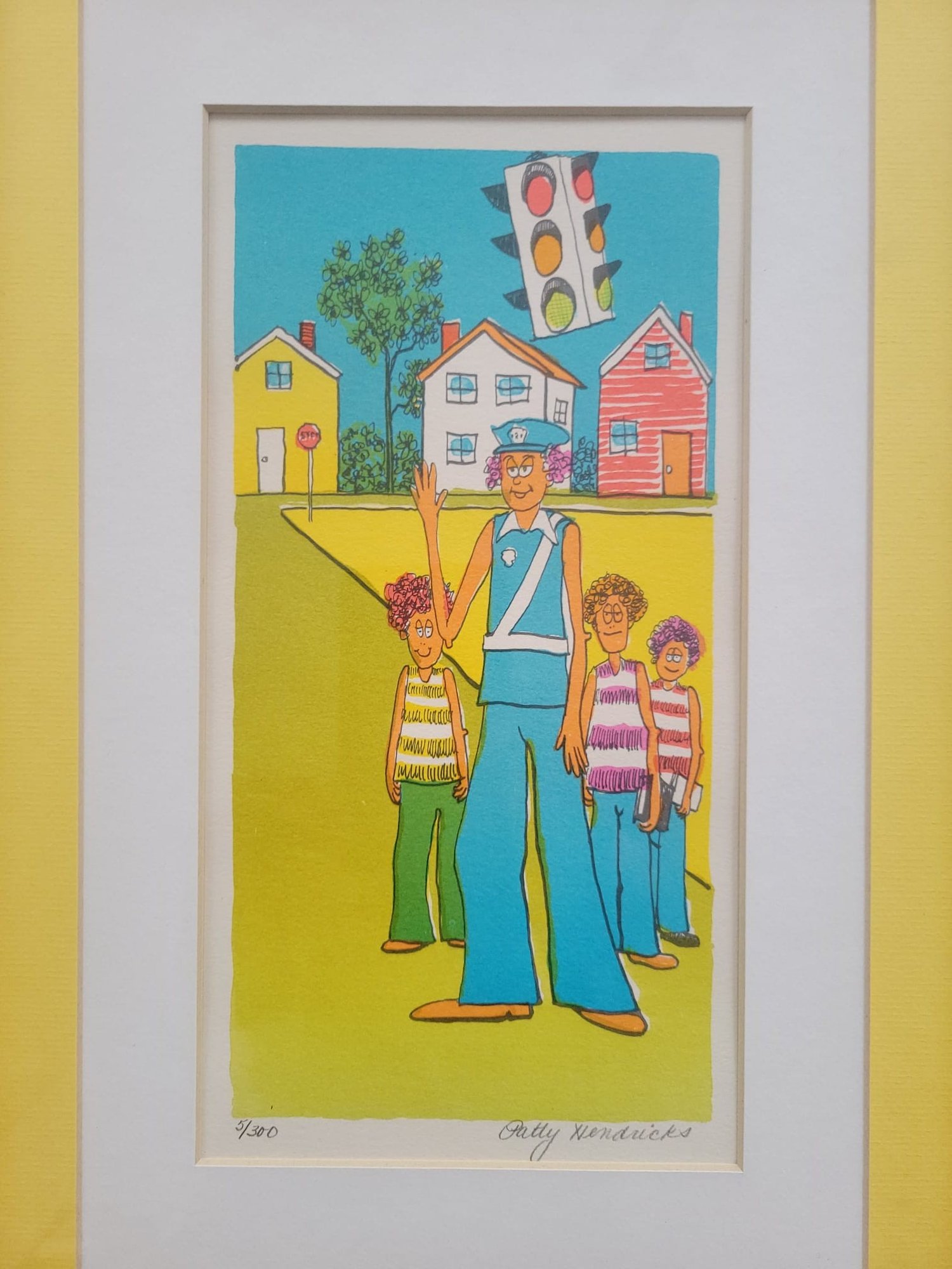 Pencil Signed lithograph titled "Crossing Guard" (or "X-ing Guard") by the artist Patty Hendricks