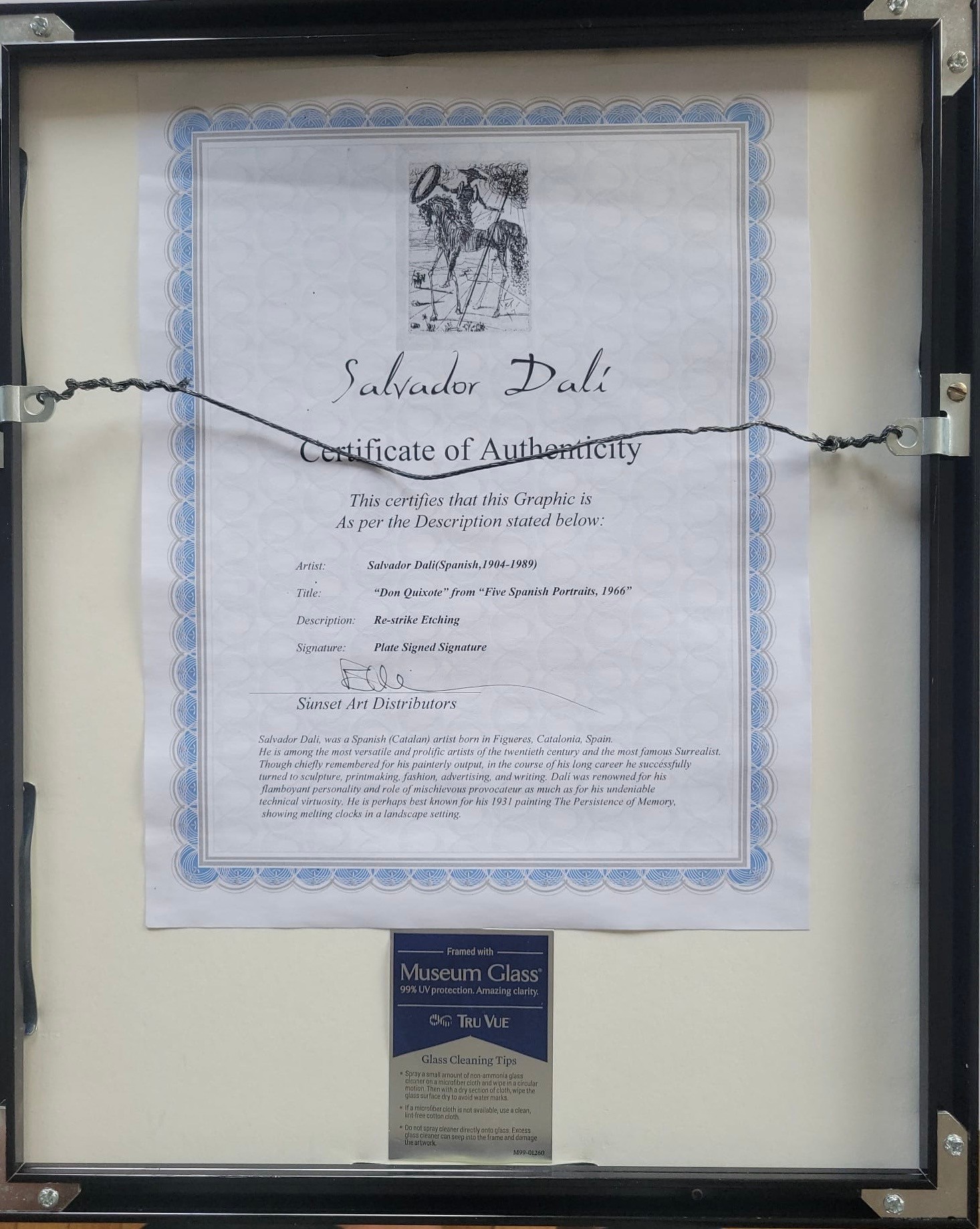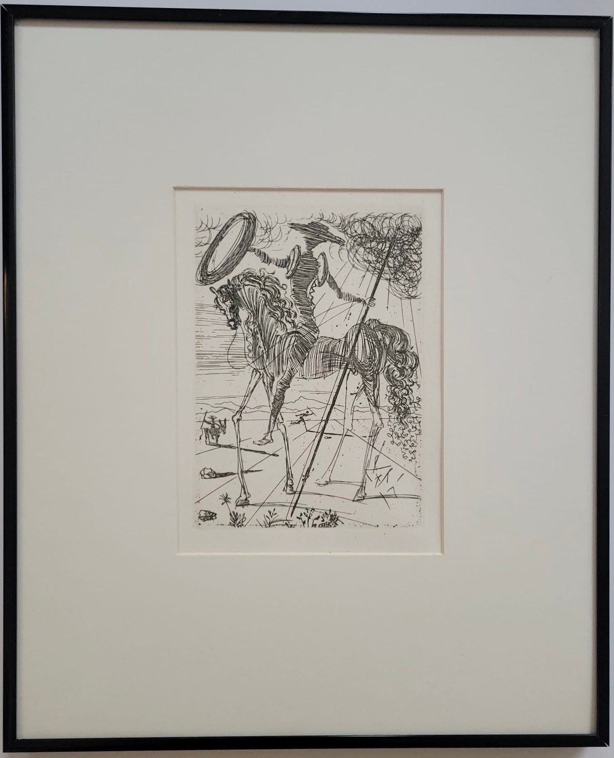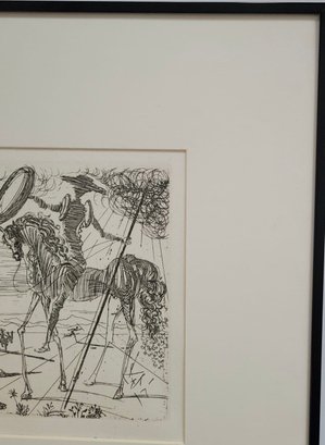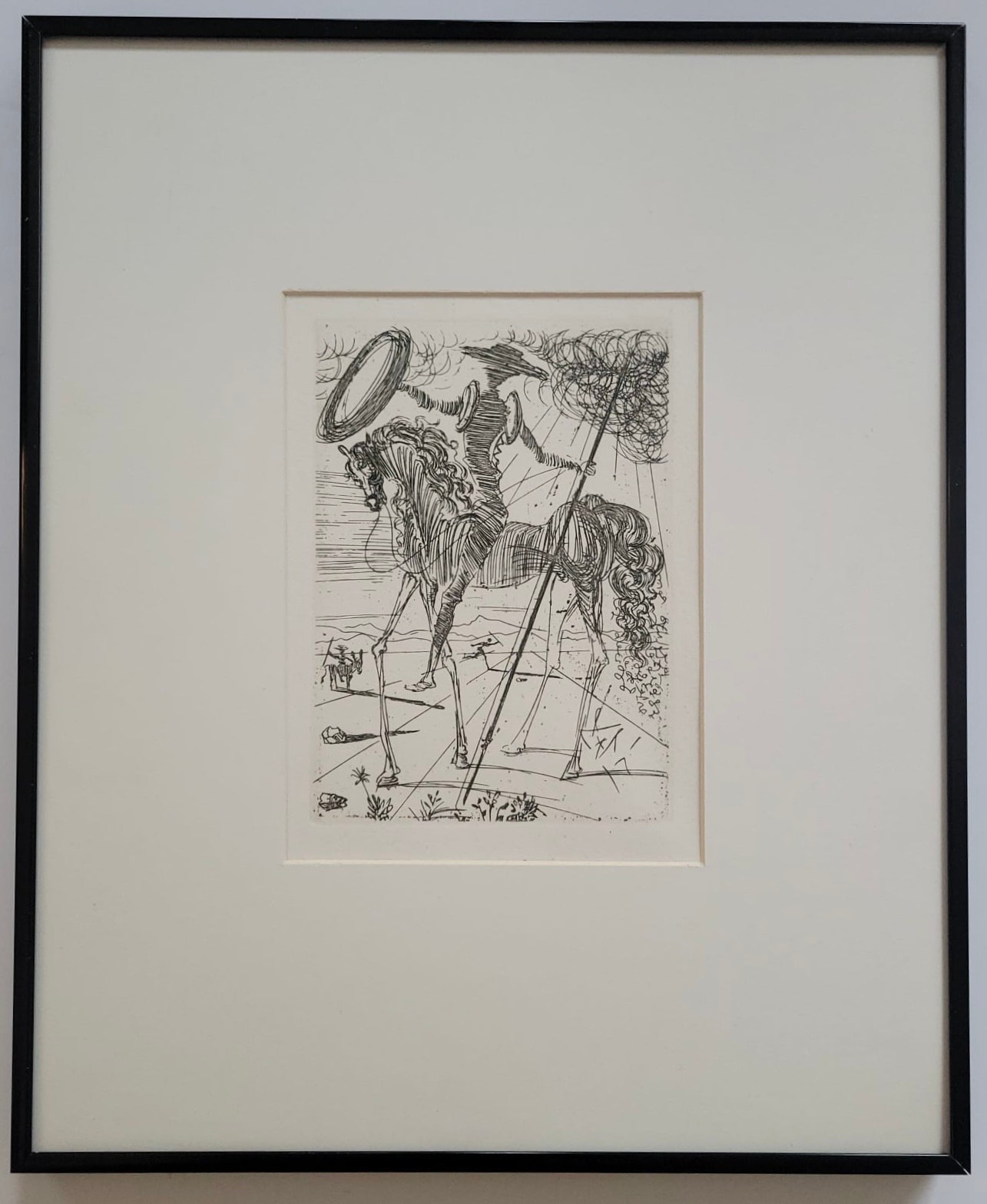 This item is a framed etching titled "Don Quixote" by the renowned surrealist artist Salvador Dalí.