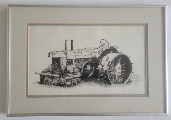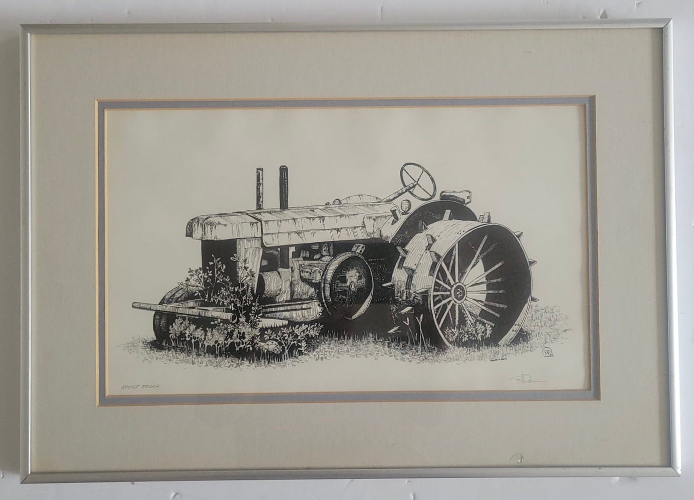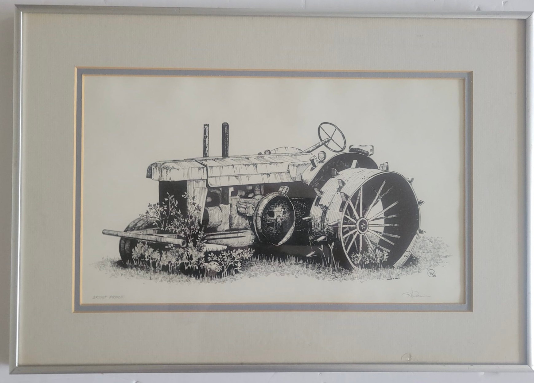 Framed art print featuring a vintage farm tractor, specifically resembling a model from manufacturers like Rumely or Case from the early 20th century