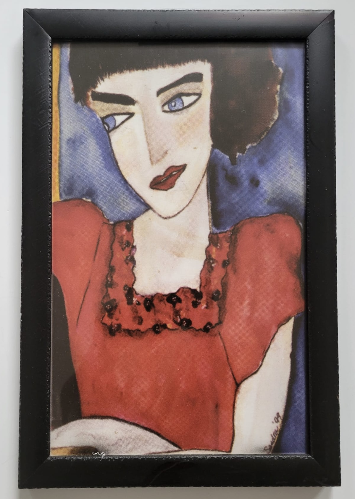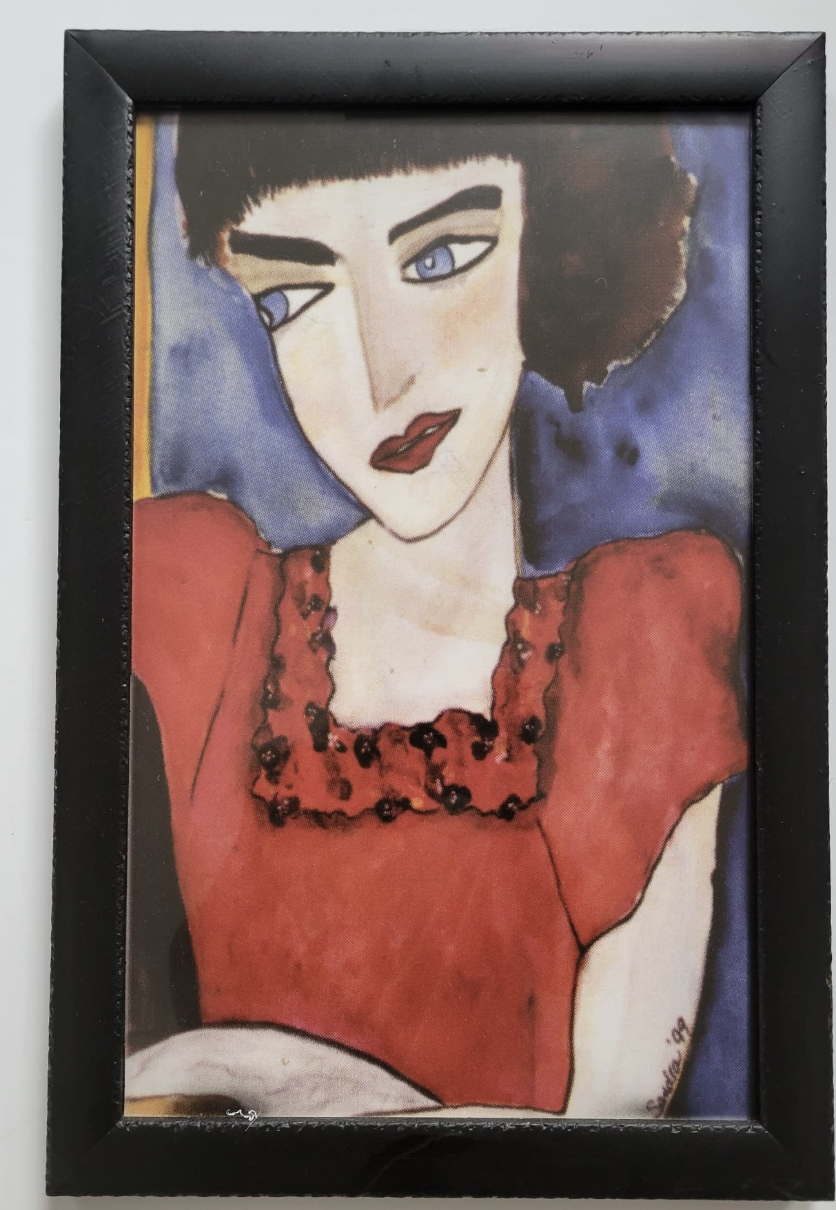 Framed Art Print,"Woman in Red Dress, No Mat, Distress,Black Frame Size 10X16