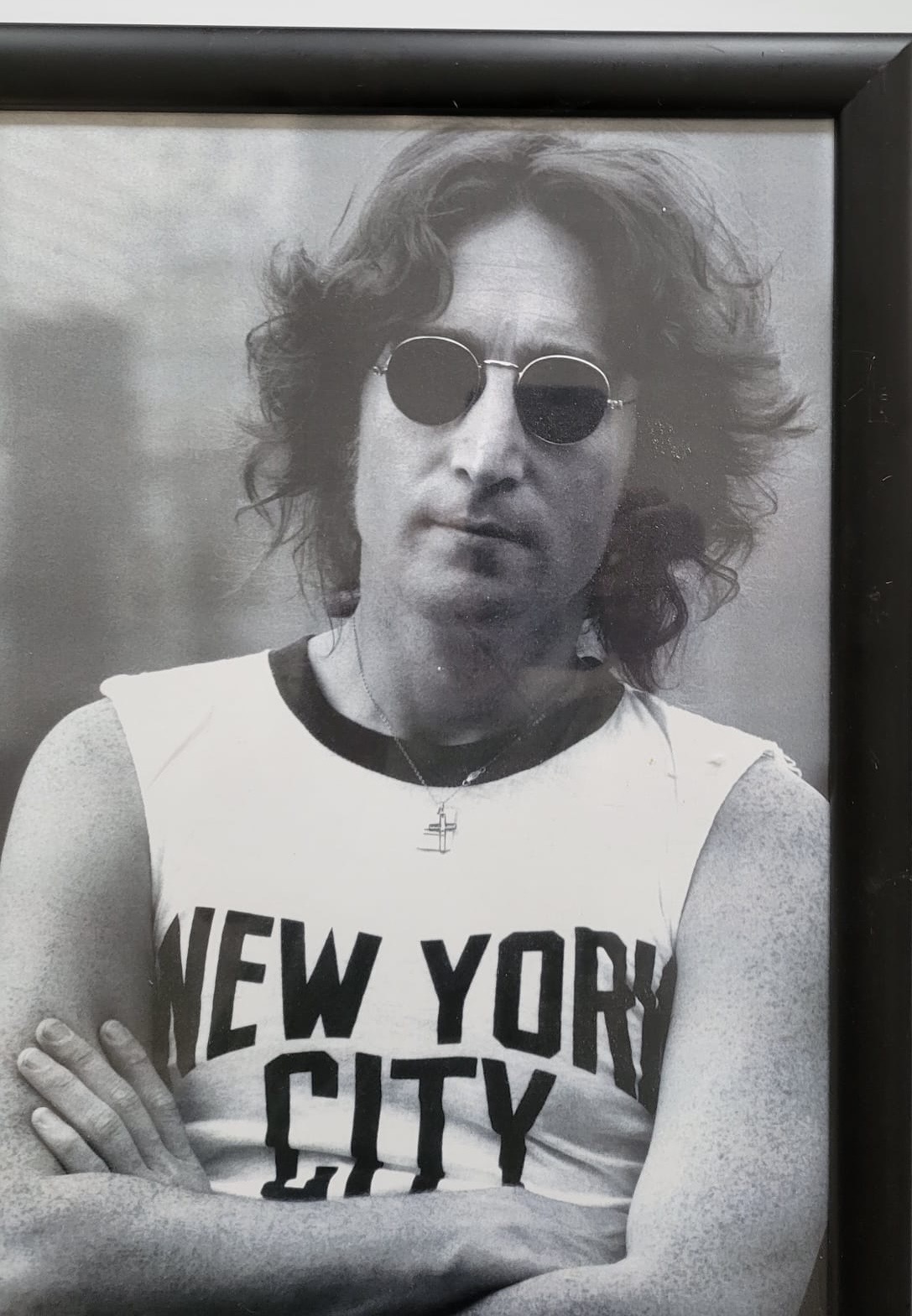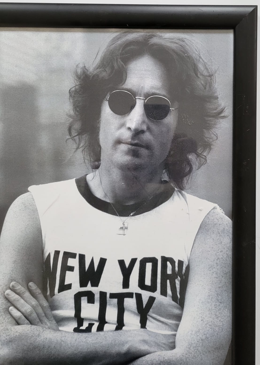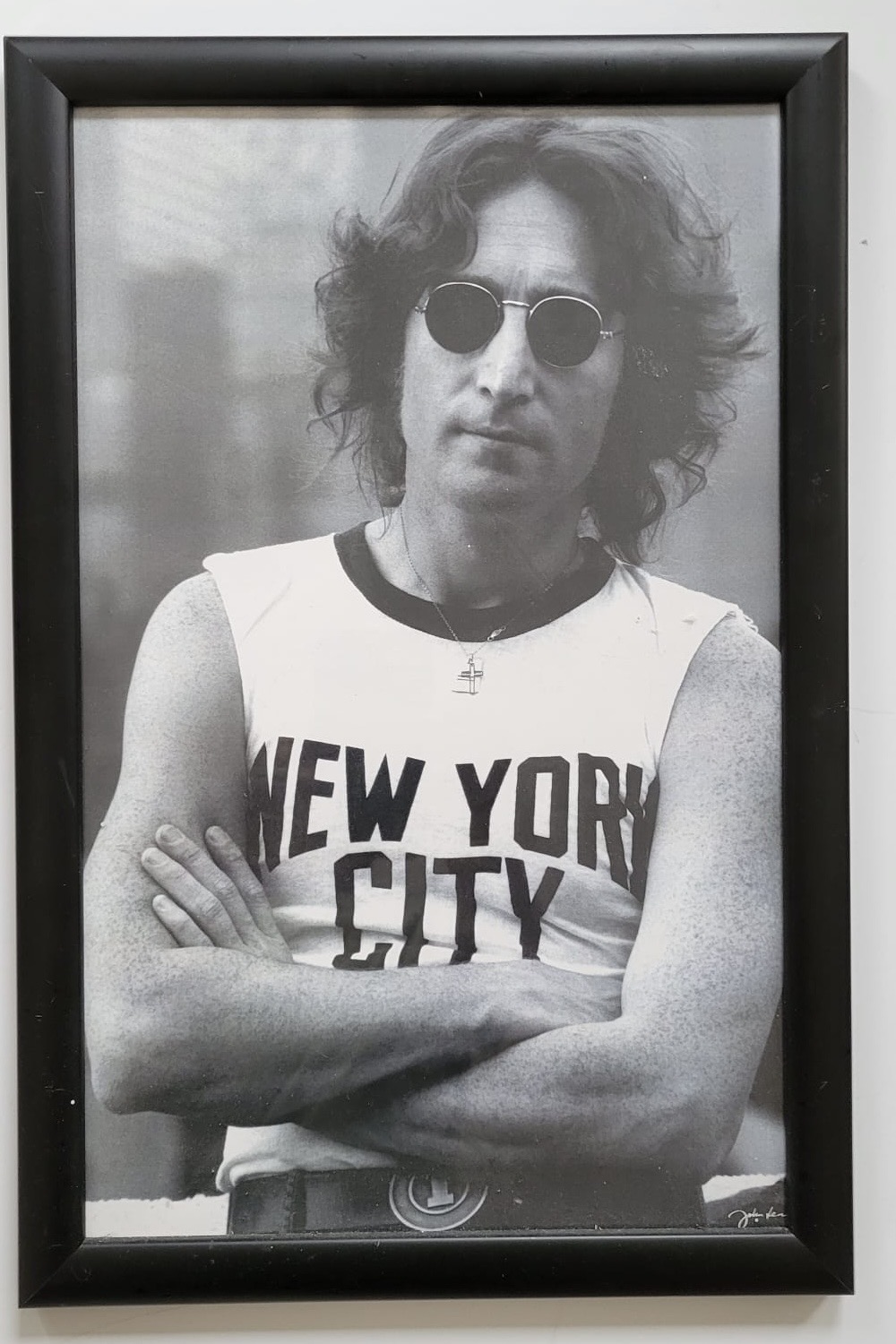 This framed photography captures the iconic image of John Lennon a legendary musician and peach activist,set against the vibrant backdrop of New York city. The artwork is elegantly presented in a high-quality frame,making it a perfect adddition to any musiclovers collection or a thoughtful gift for admireres of Lennons enduring legacy.