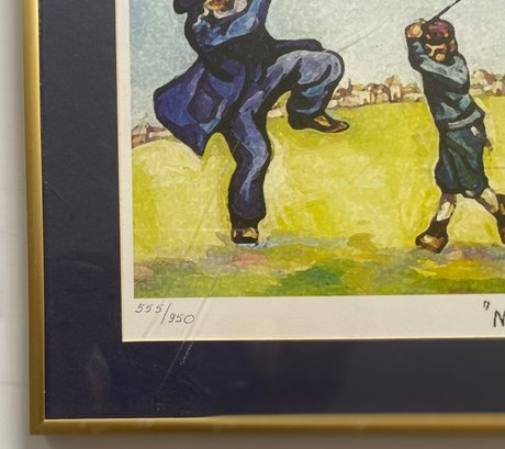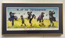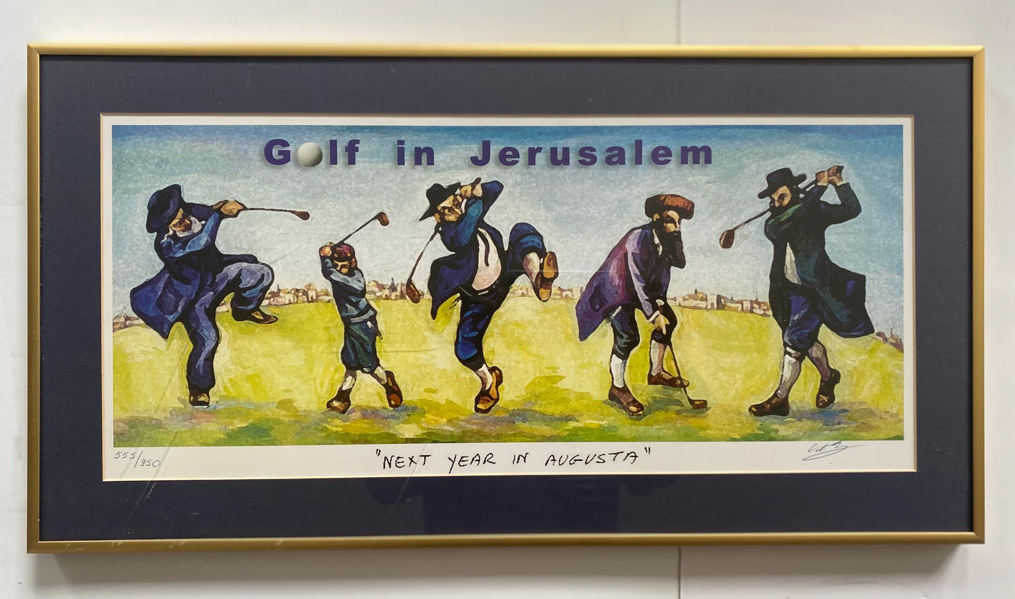Framed print titled "Golf in Jerusalem" by the artist Udi, also known as Udi Merioz.