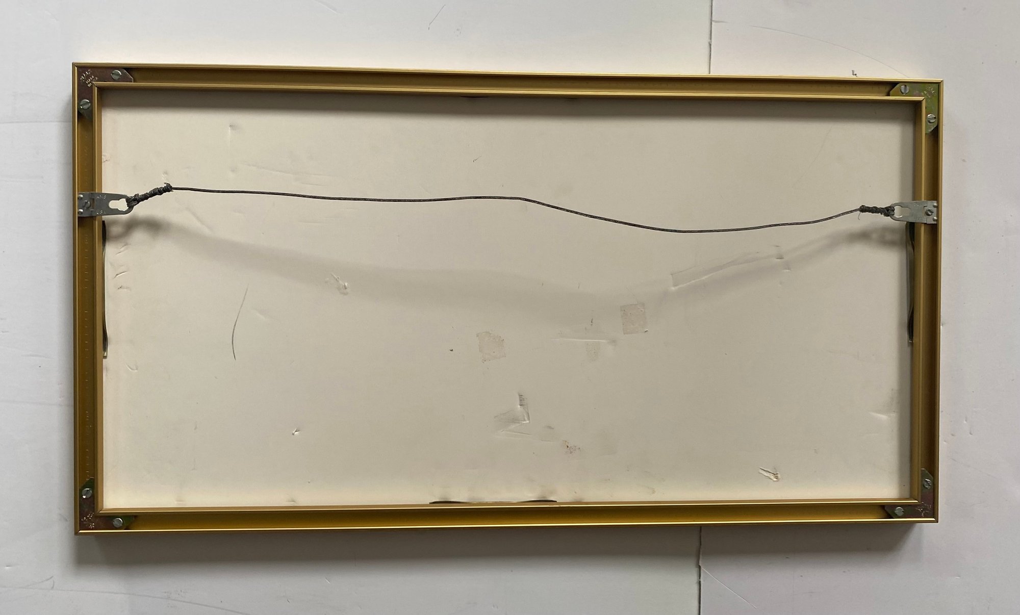 Features: Single mat with a gold frame. Art Size (19 X 8 1/2). Frame Size (22 X 11 3/4)