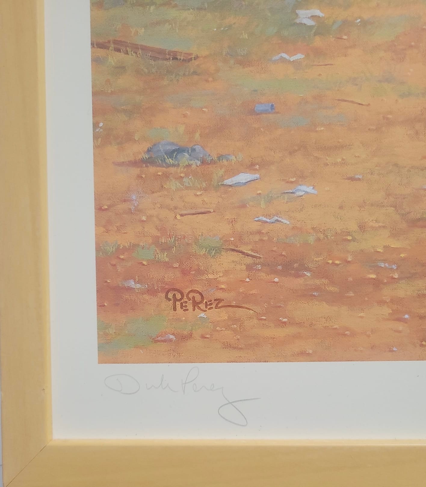 Features: Signed. No Mat. Natural Wood Frame. Art Size (23X18 1/2). Frame size (24 1/2 x 19 1/2)
