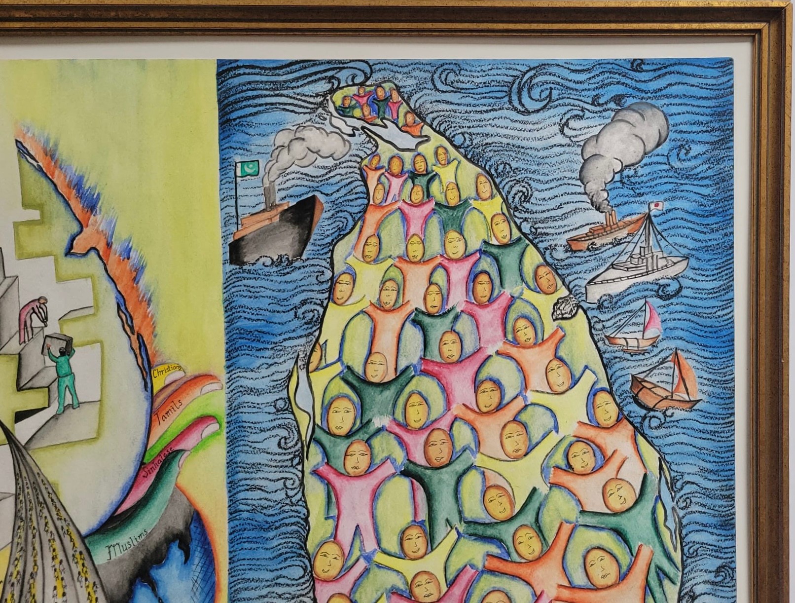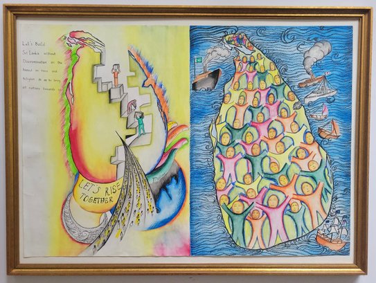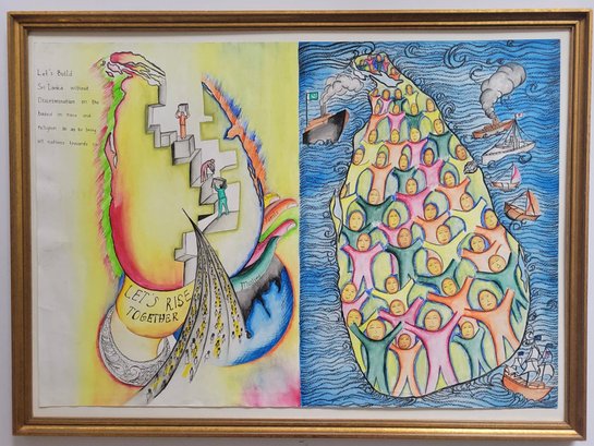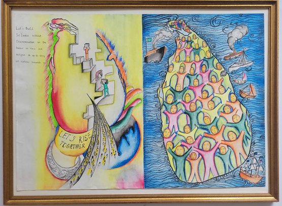 Hand-Drawn artwork depicting a call for unity in Sri Lanka.