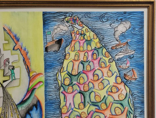 Features: Floated on Mat. Old Gold Frame. Art Size (28X20). Frame Size (31X23)