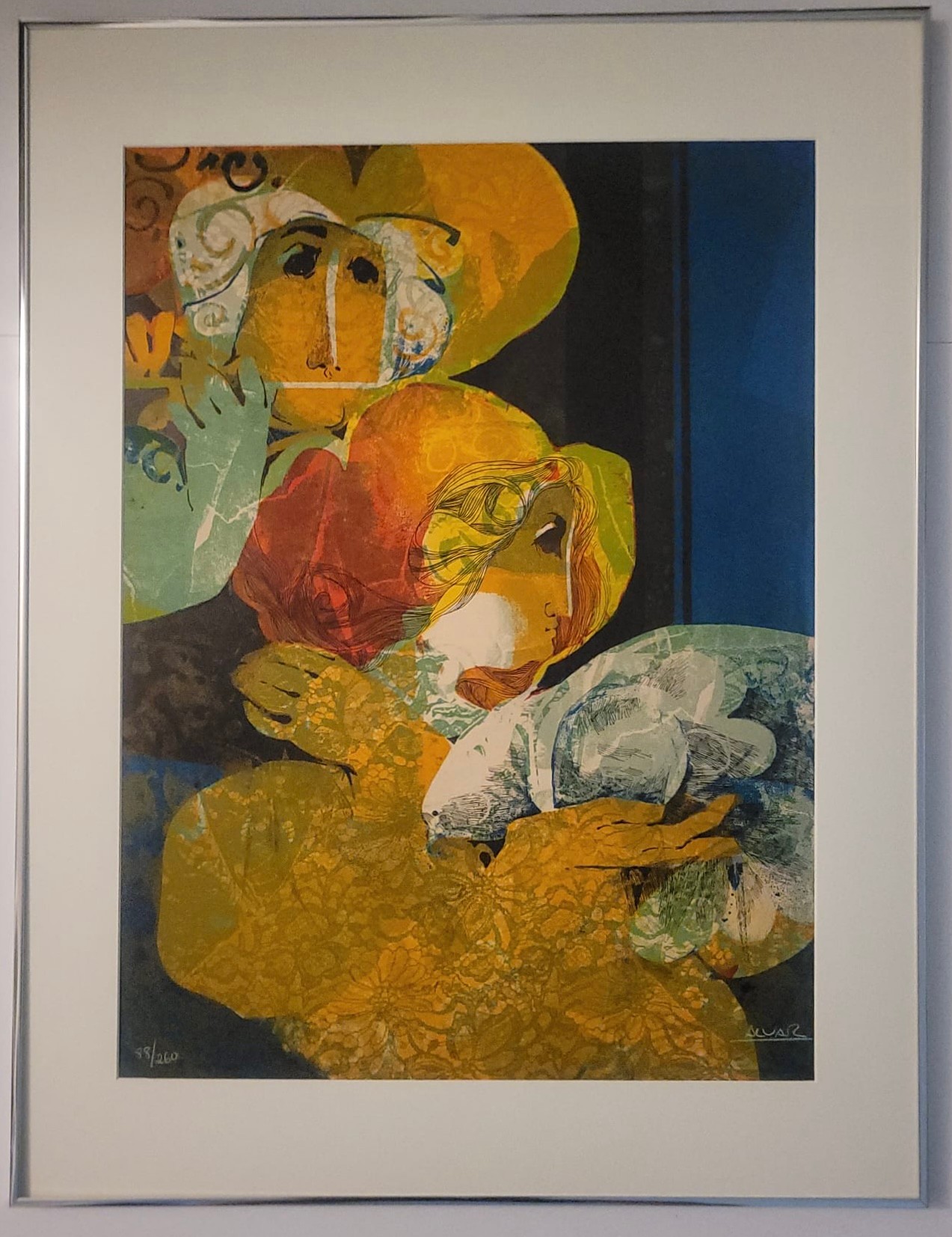 Limited edition color lithograph titled "Untitled" by Spanish artist Alvar Suñol Muñoz-Ramos, likely from around 1970.