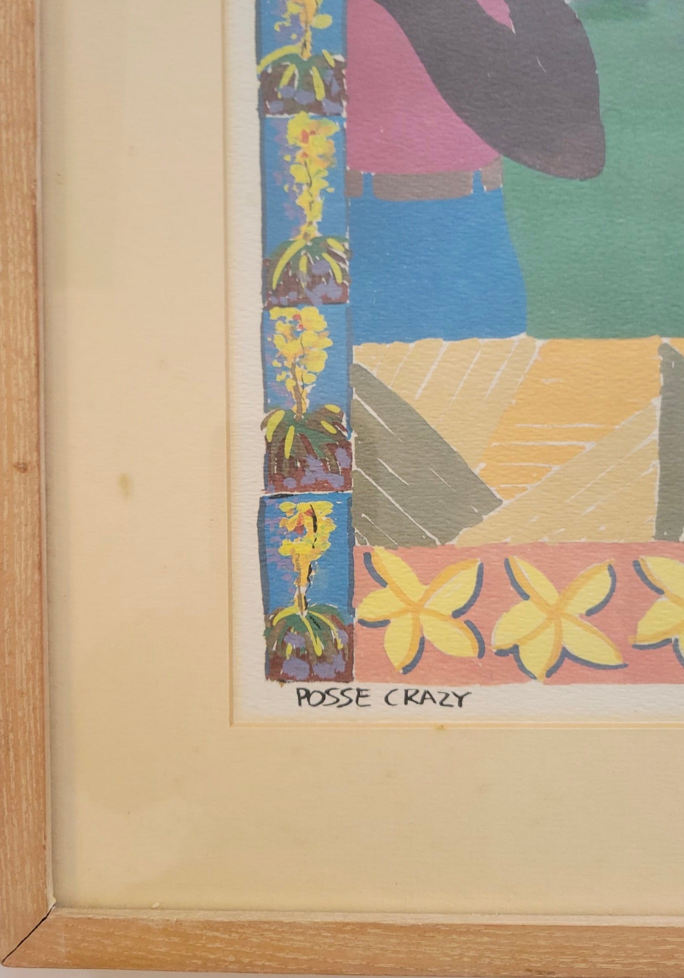 Limited Edition Color print entitled "Posse Crazy" by Virgin Islands artist Lisa Etre, created around 1985. Artist: Lisa Etre, a prominent artist known for portraying Virgin Island life.