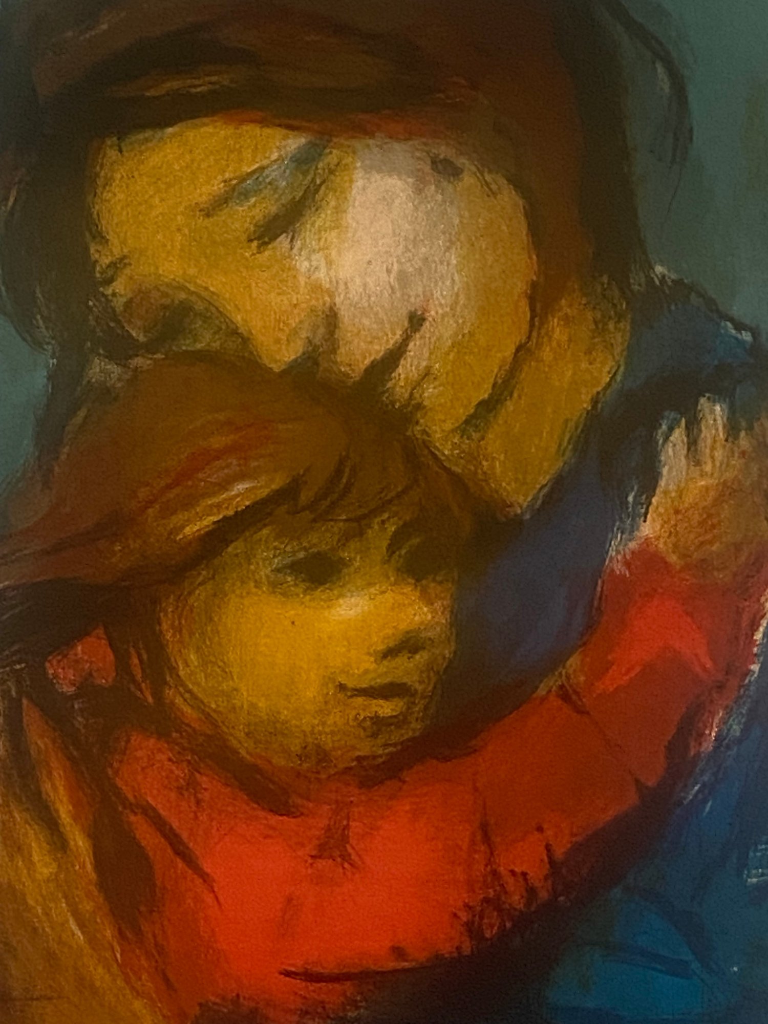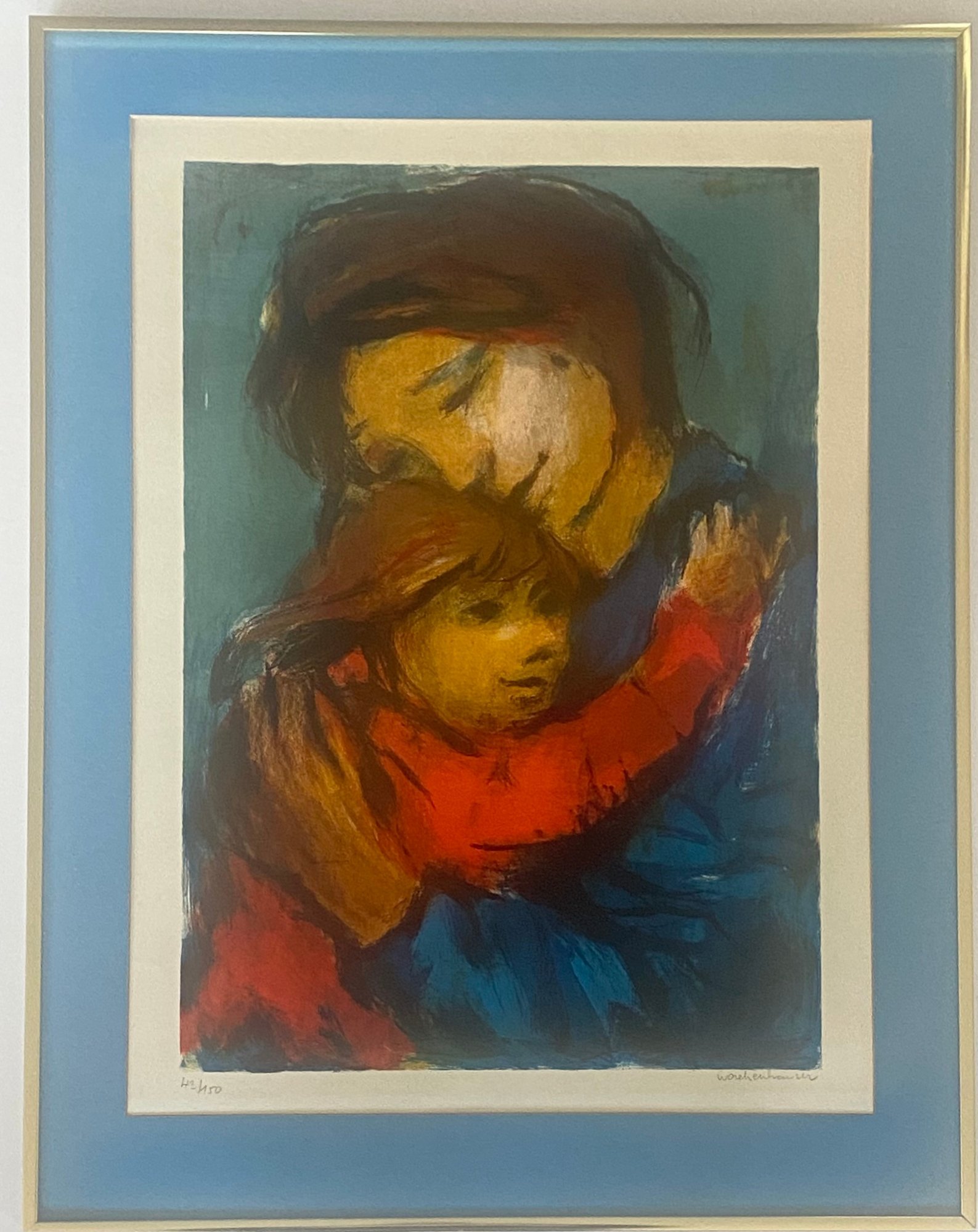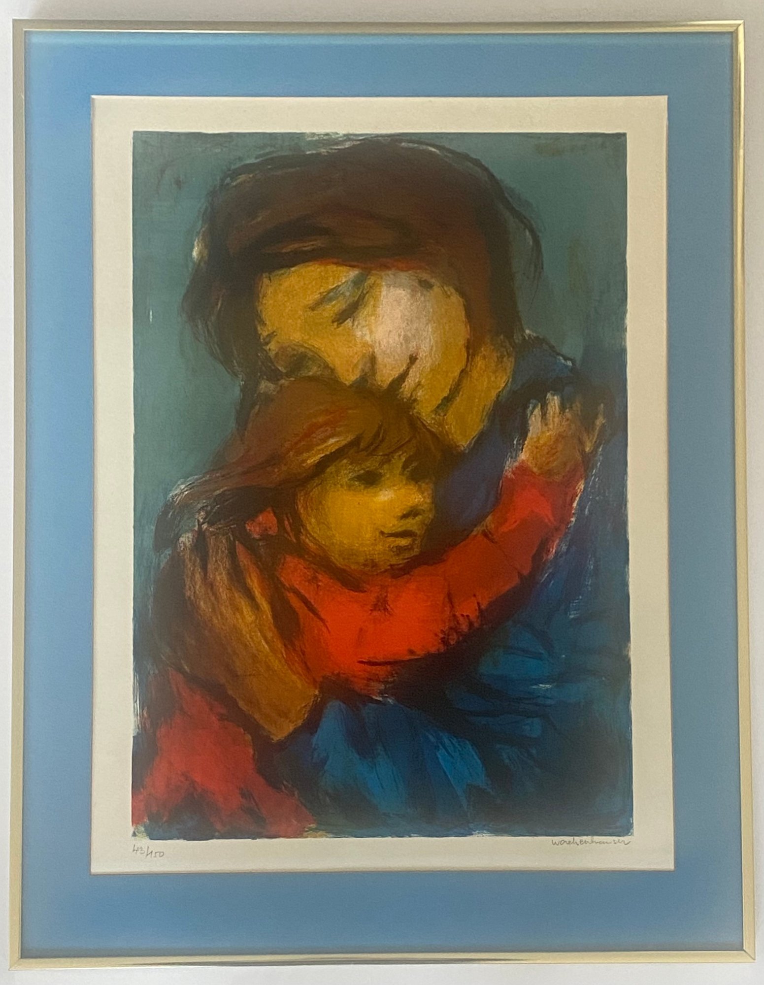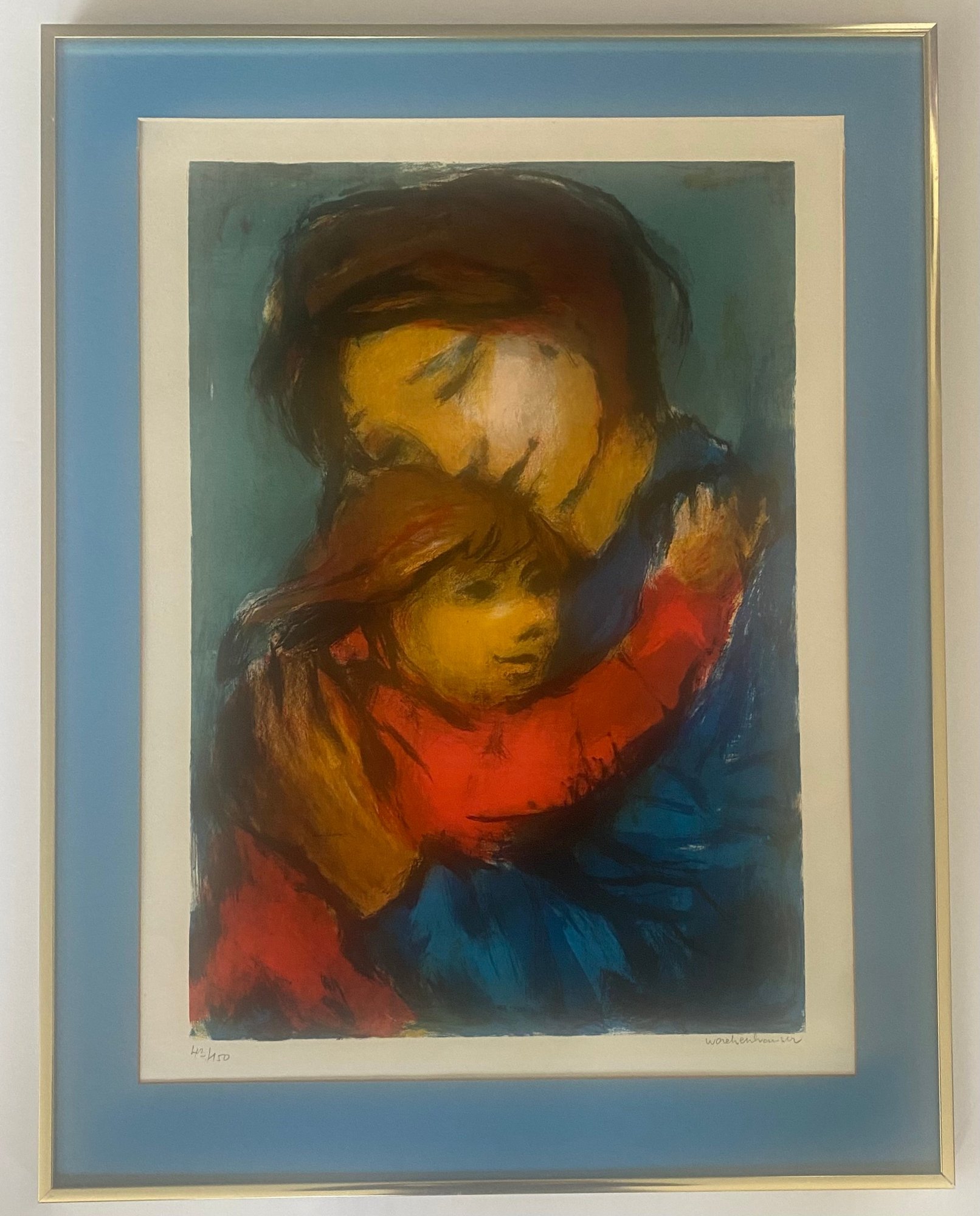 Lithograph titled Mother and Son by the Polish-Israeli artist Arie Wachenhauser (1917-1998)