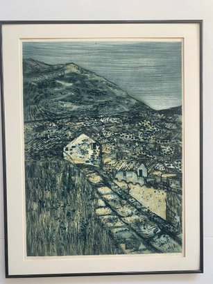 Cadaqués is a small fishing village in Catalonia, Spain, known for its charm and as a favorite haunt of artists like Salvador Dalí and Pablo Picasso. The print captures a landscape or cityscape view of Cadaqués, likely showcasing its distinctive architecture and natural surroundings.