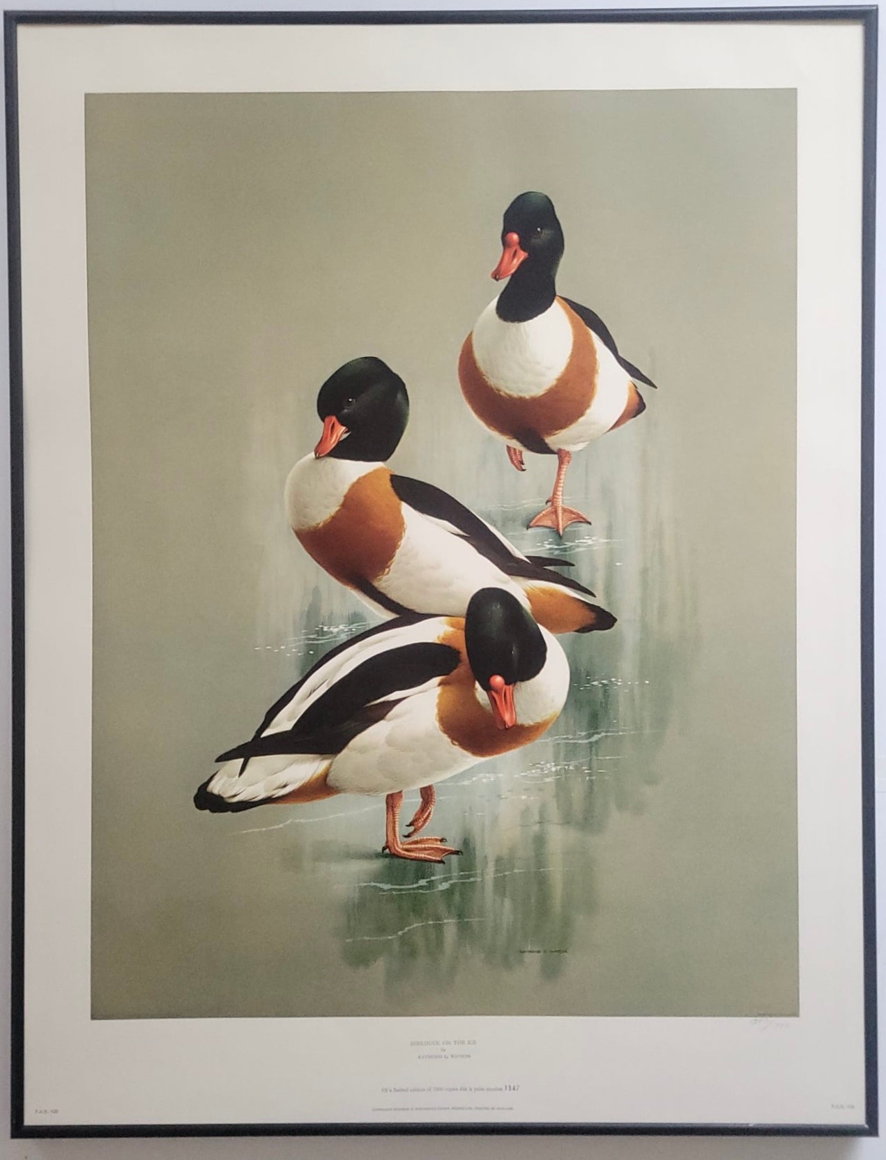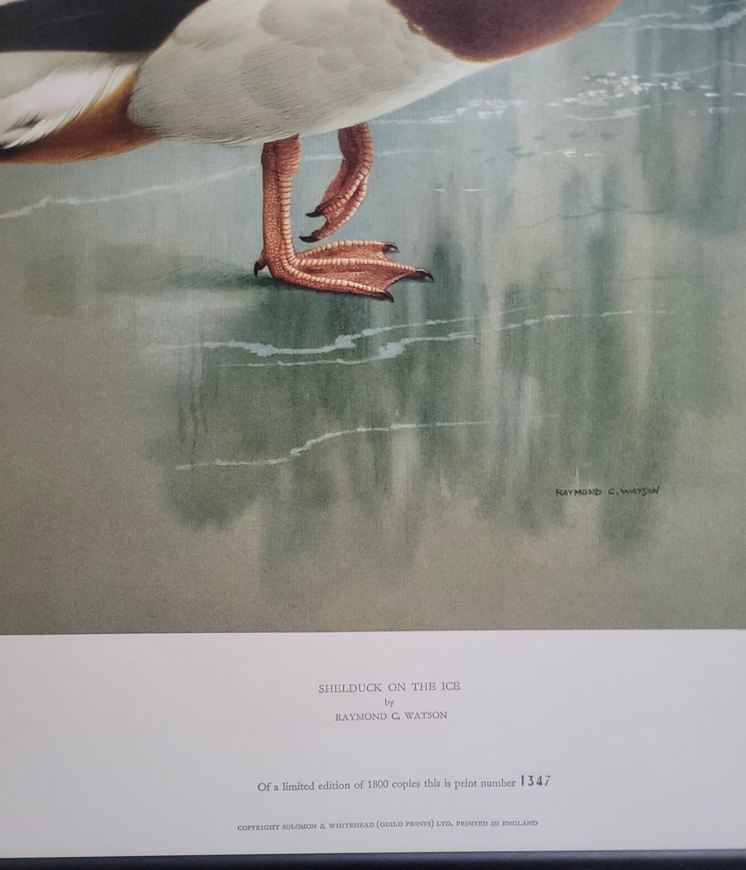 Print titled "Shelduck on the Ice" by the renowned British wildlife artist Raymond C. Watson.