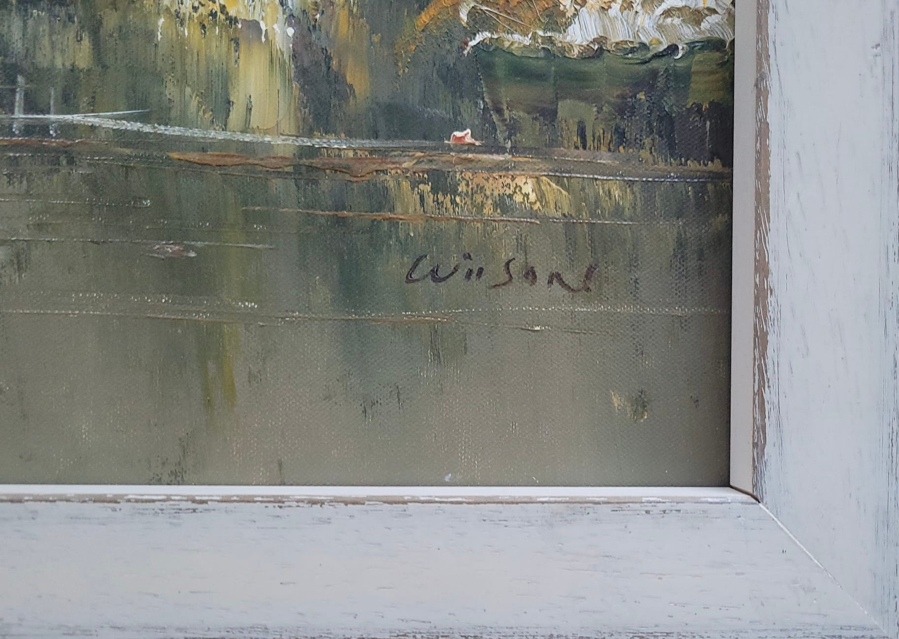 Features. Washed White frame. Art Size (34X24). Frlame size 36 s1/2 x 26 1/2)