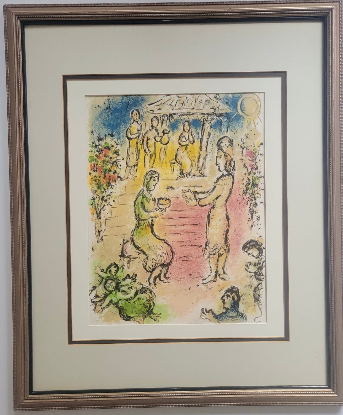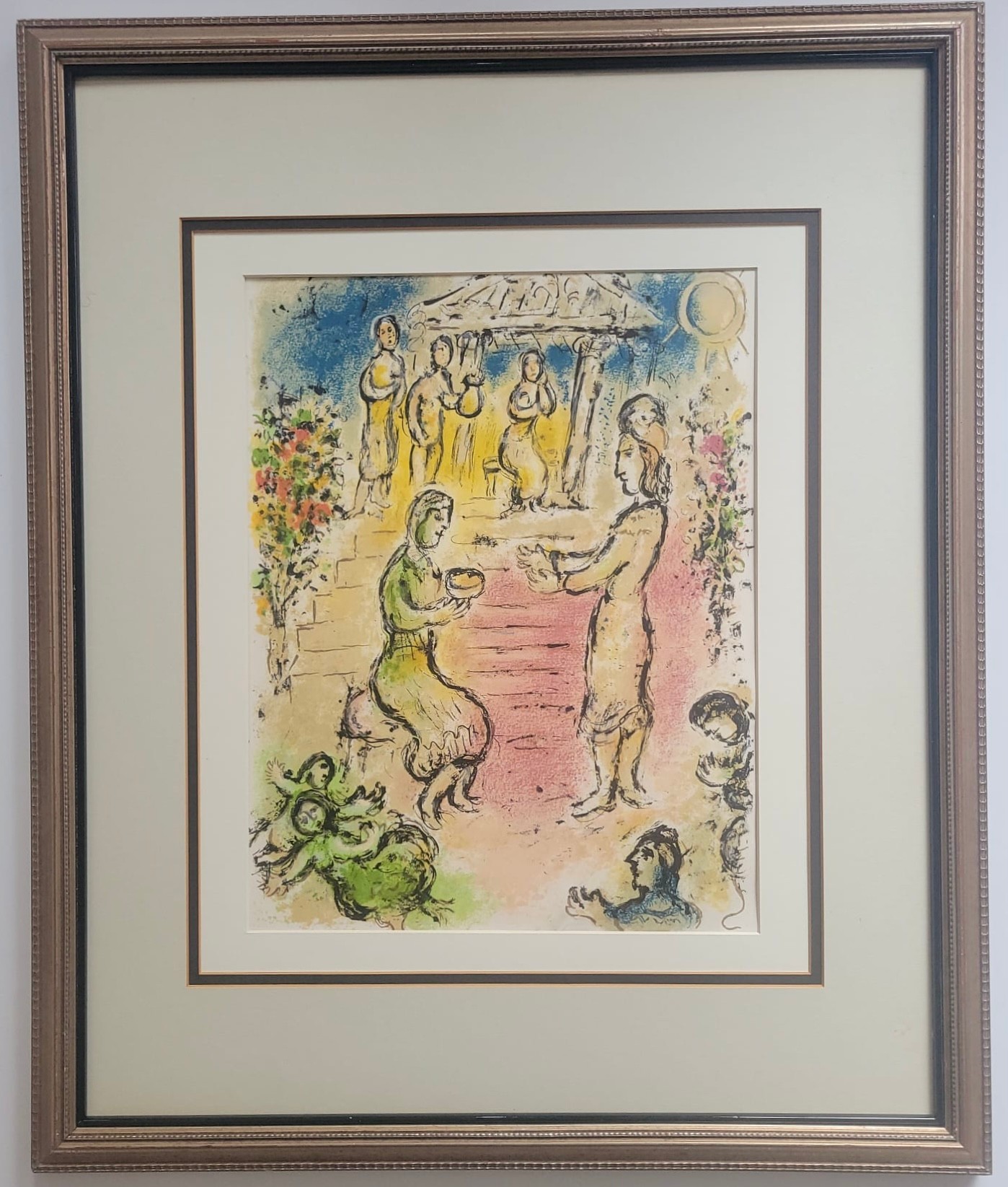 Offset lithograph titled "Alcinous' Palace" by artist Marc Chagall, depicting a scene from Homer's Odyssey.