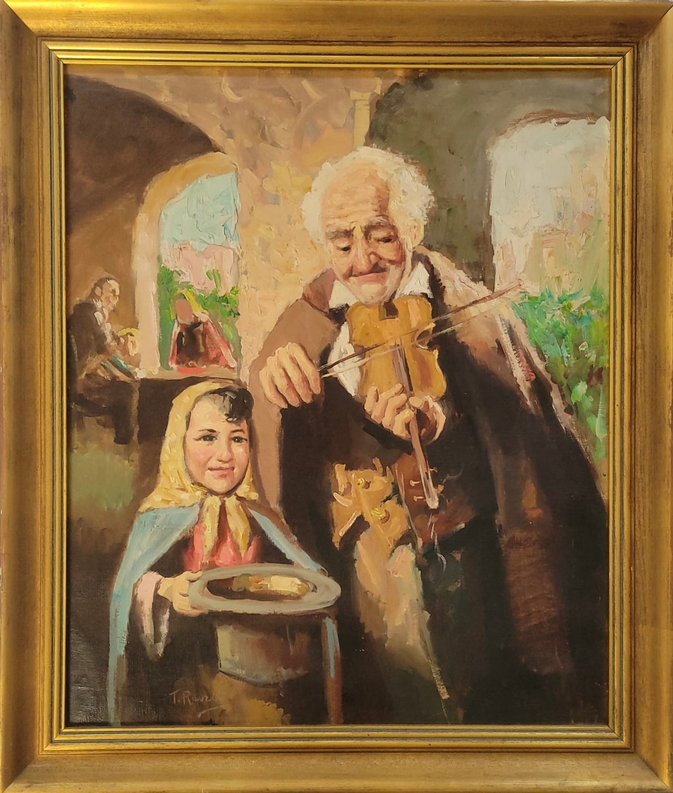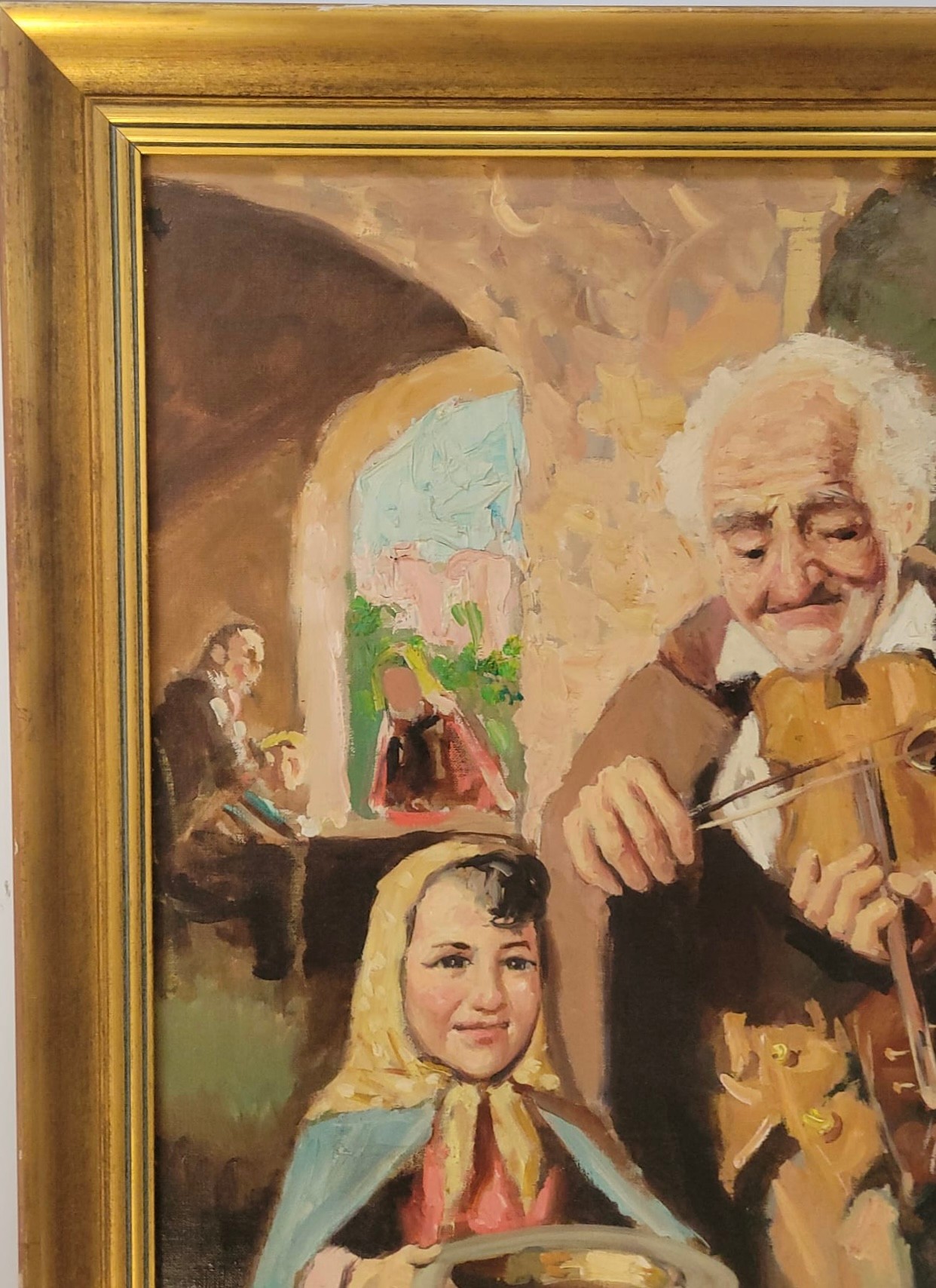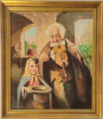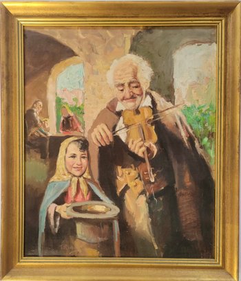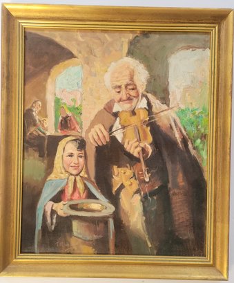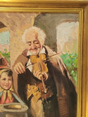 Oil on Canvas titled painting titled "Man with Violin" by Italian artist Nello Iovine (born 1935).