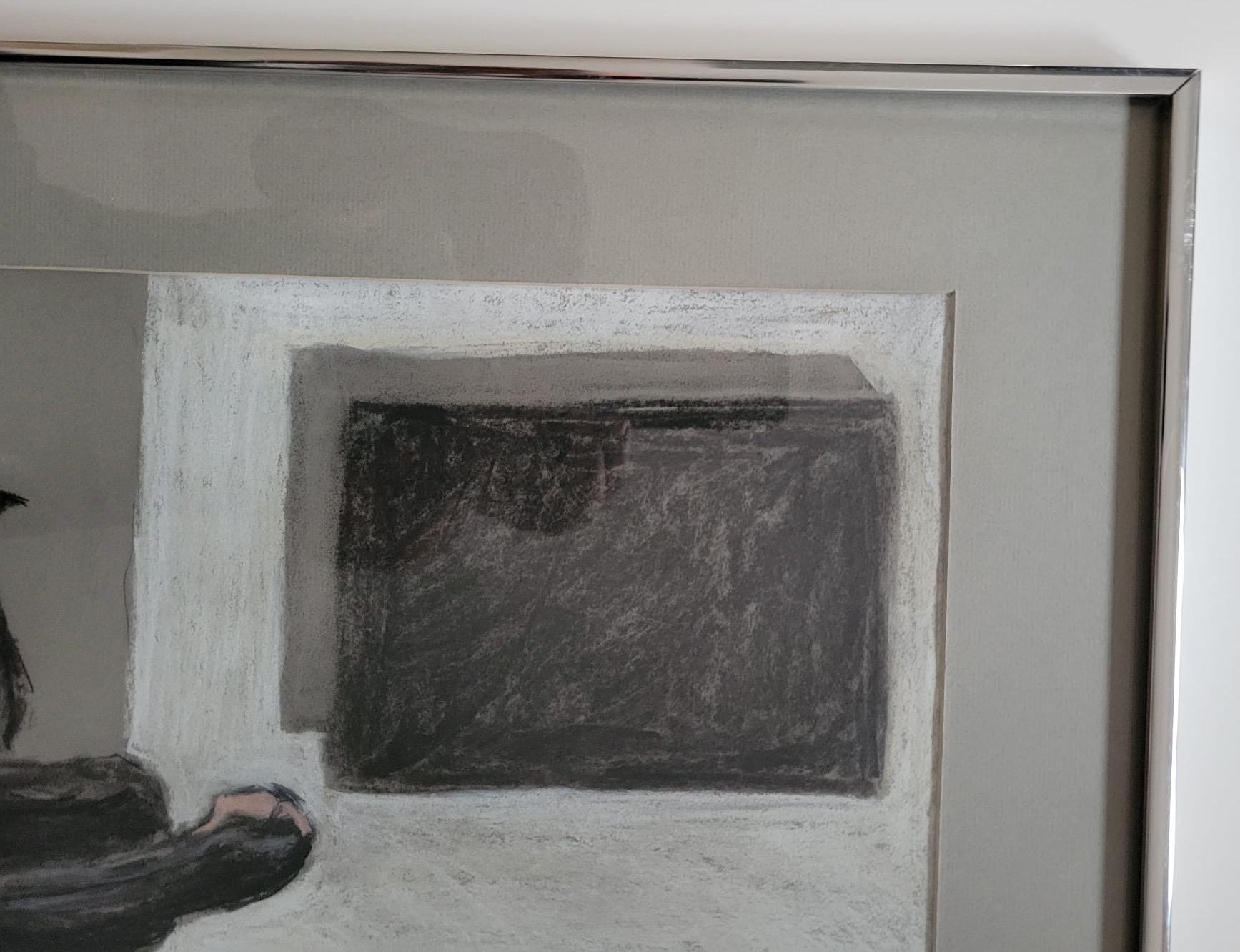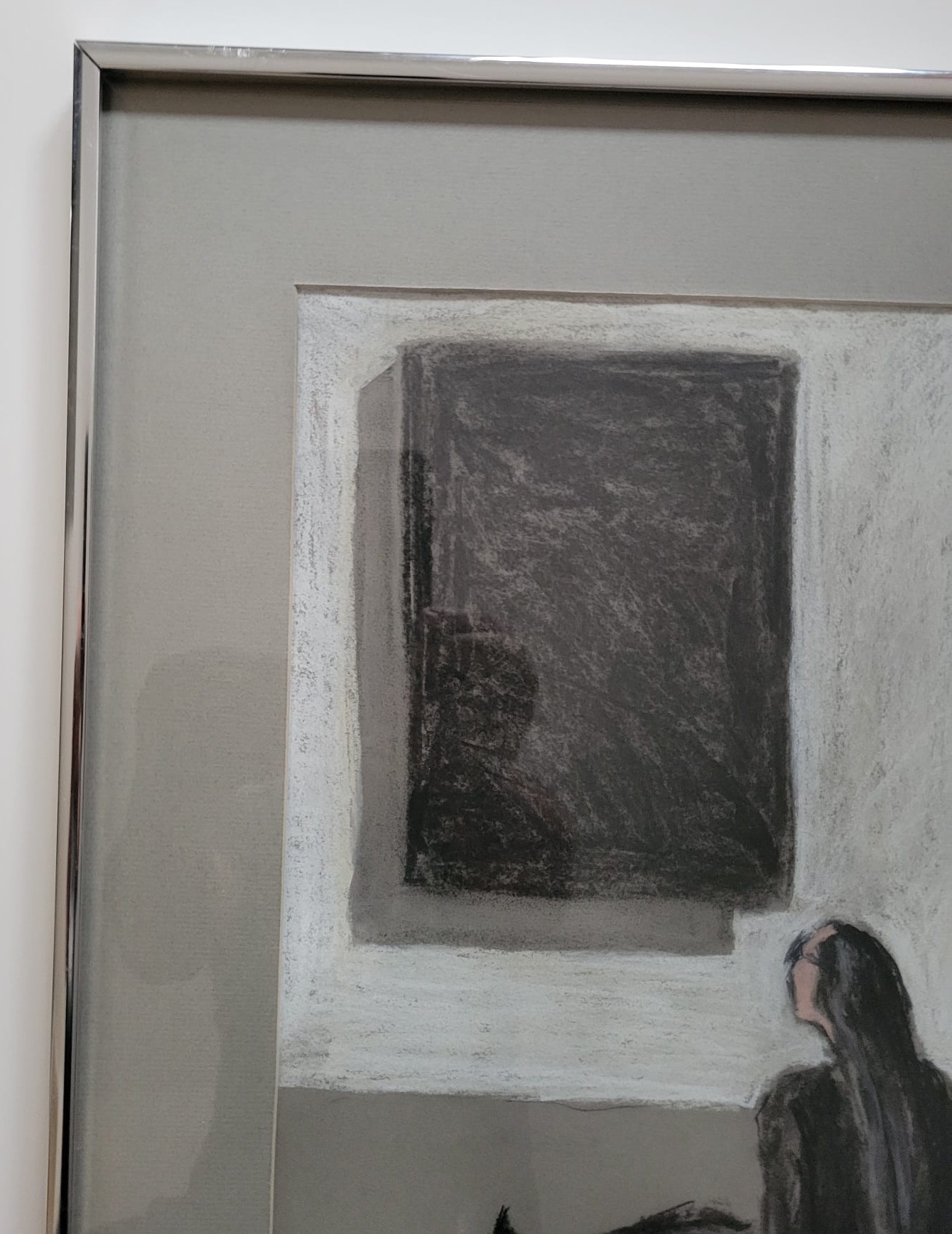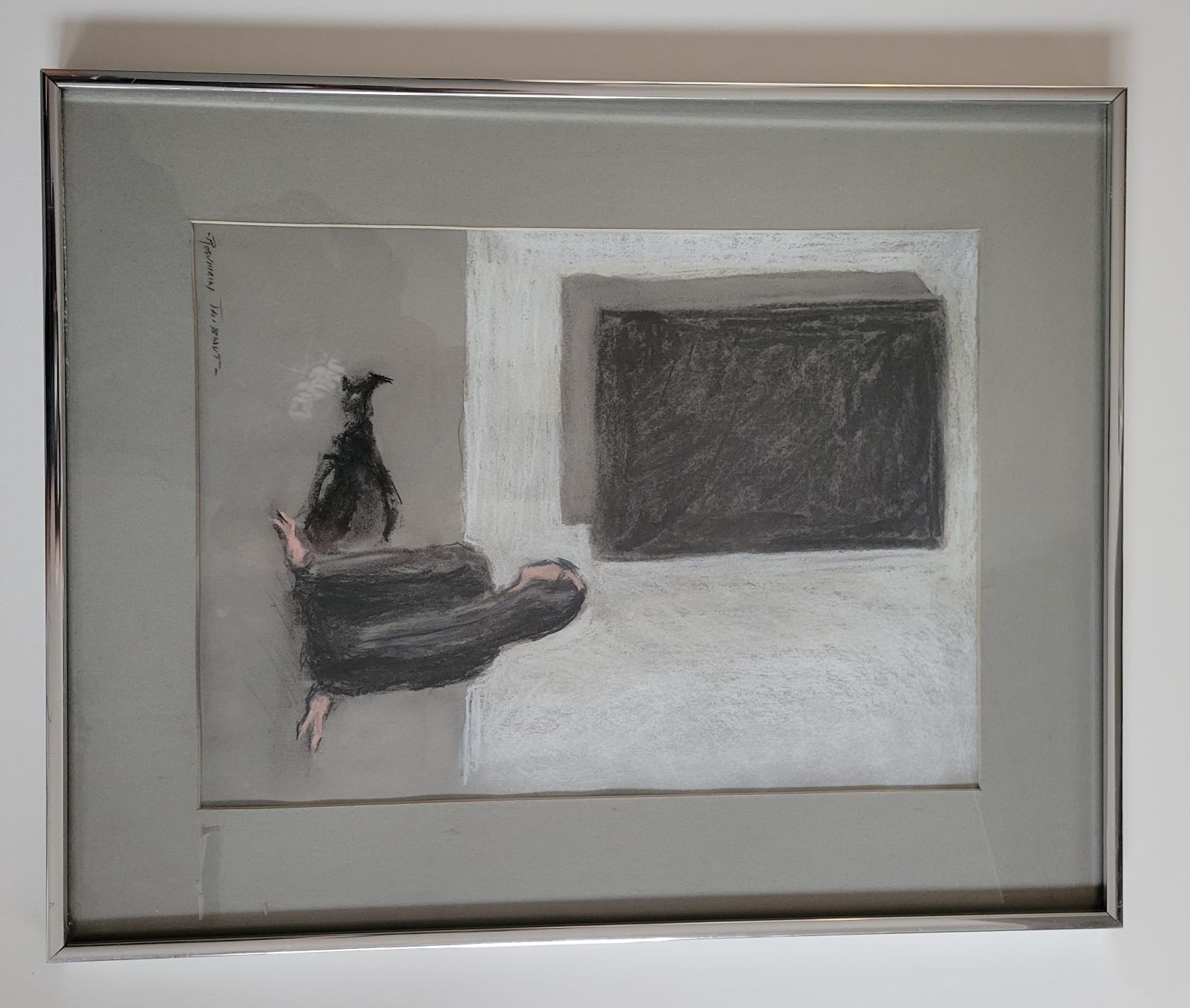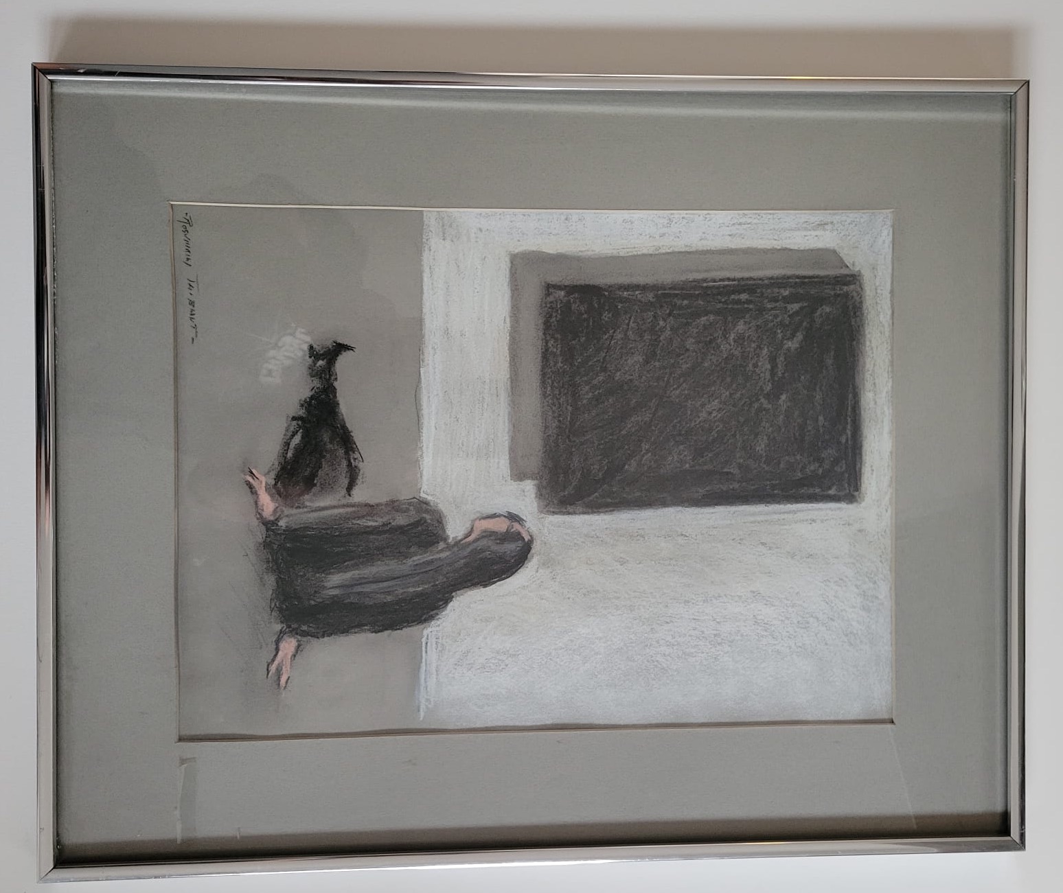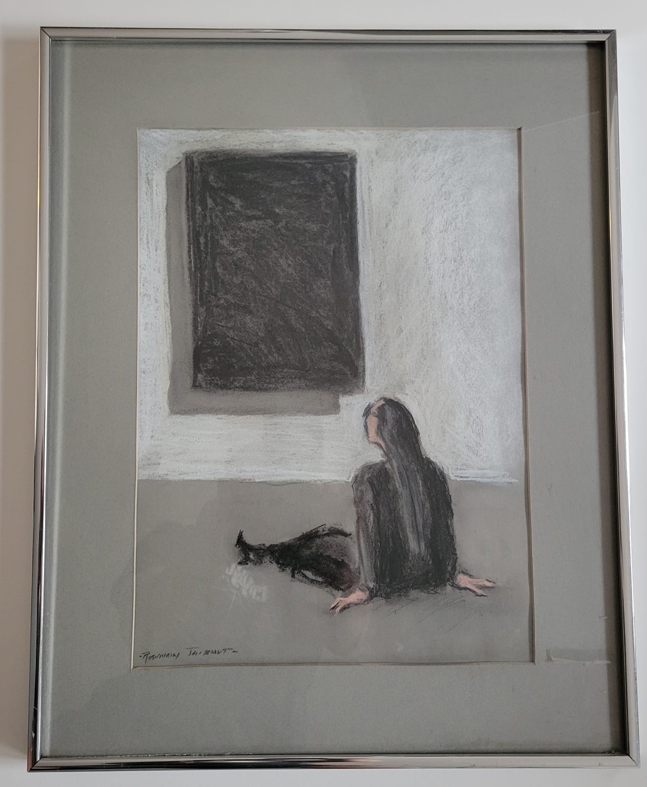 Single Mat with Silver Metal Frame. Art Size 11X15. Frame Size 16X20. Slightly aged.