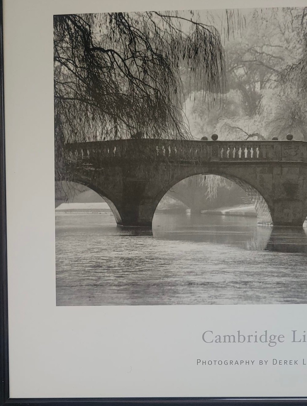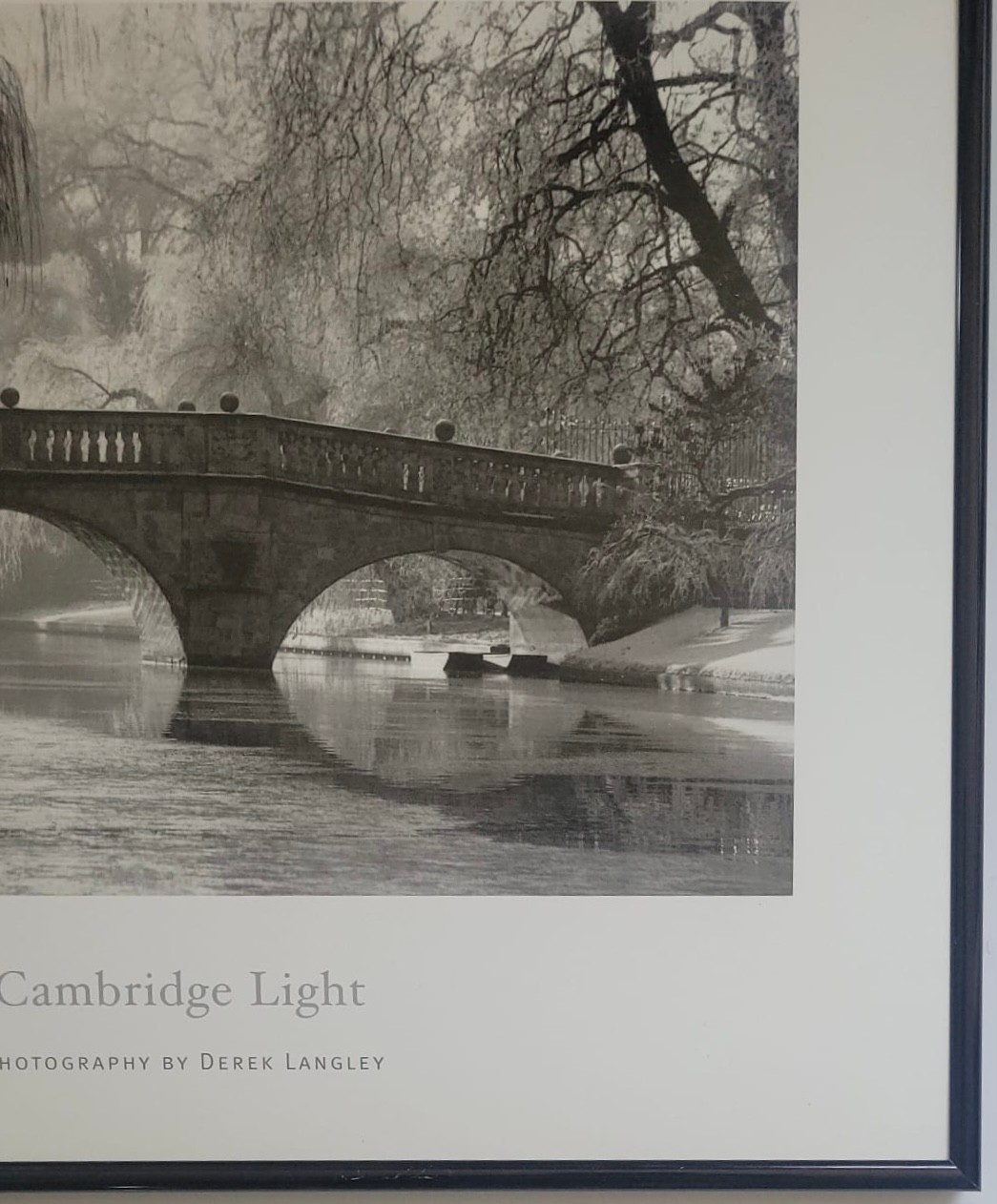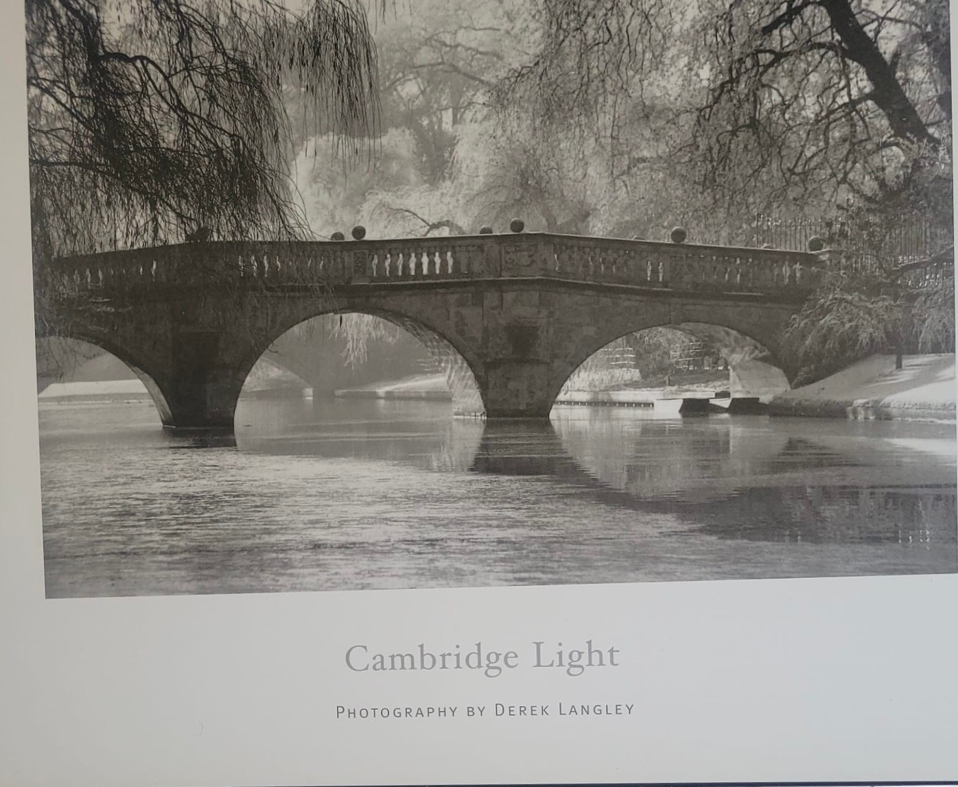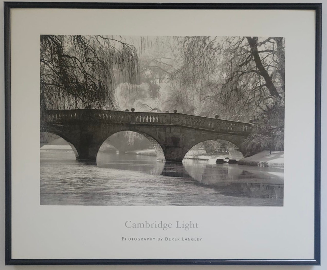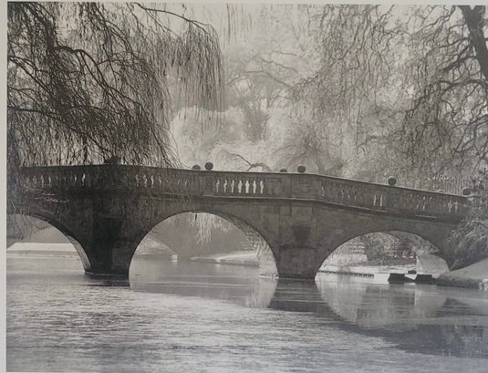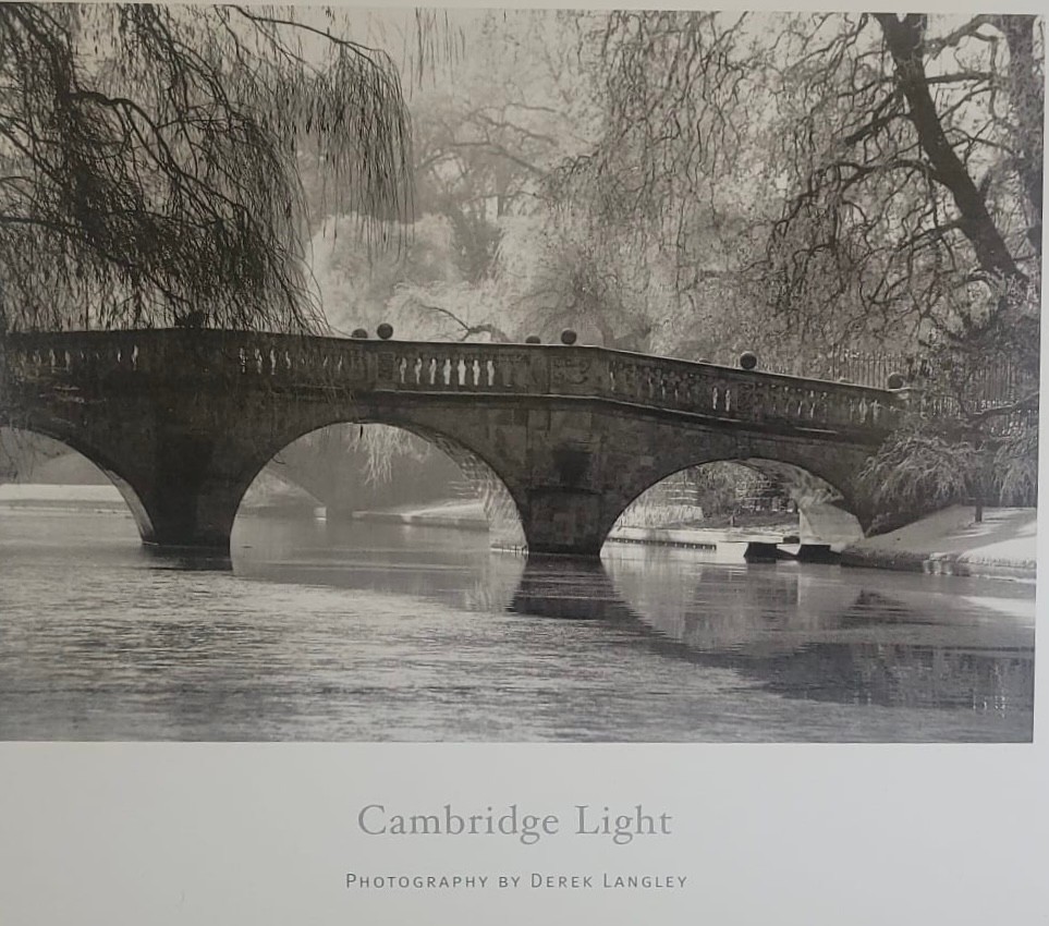 Poster Printtitled "Cambridge Light" by photographer Derek Langley, featuring the historic Clare College Bridge in Cambridge, England.