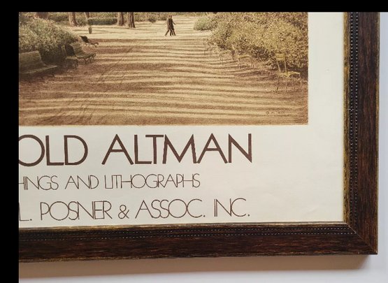 This rare lithograph on wove paper is a true masterpiece. It was created by the renowned artist Harold Altman and features stunning details that will leave you in awe. The print is not signed and not numbered, adding to its mystery and exclusivity. The paper material used is of high quality, ensuring that the print will last for years to come. It is a perfect addition to any art collection and will surely be a conversation starter. Don't miss out on the opportunity to own this exceptional piece. Rare Lithograph on wove paper, unsigned and not numbered By HAROLD ALTMAN " PARIS LUXEMBOURG " November Shadow 1980 . No mat, brown wood frame. Art size ( 24 × 21 )