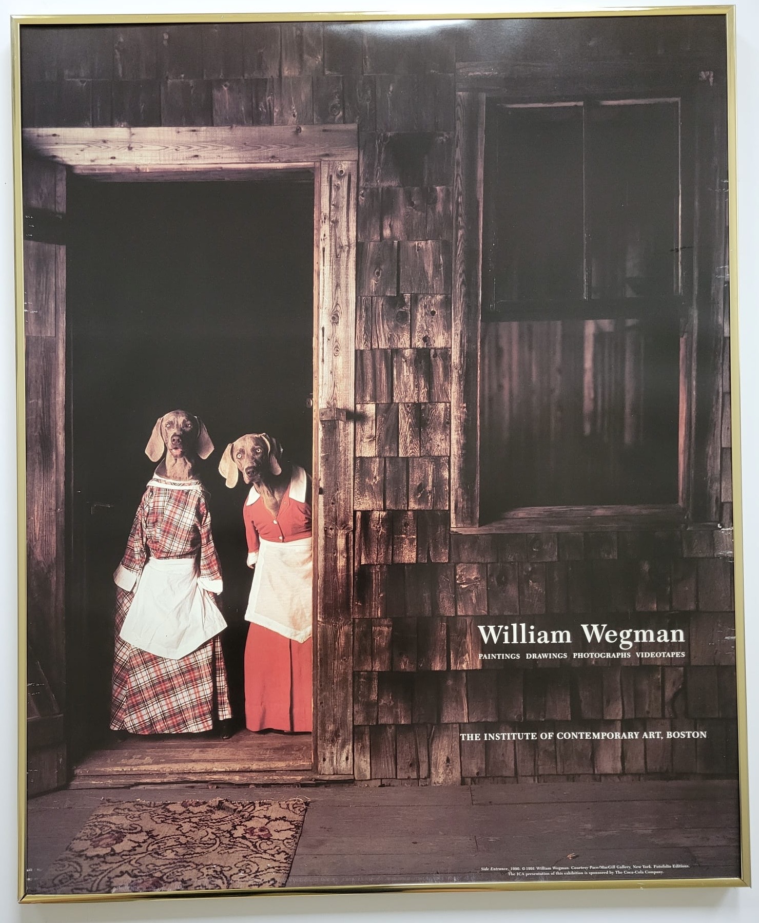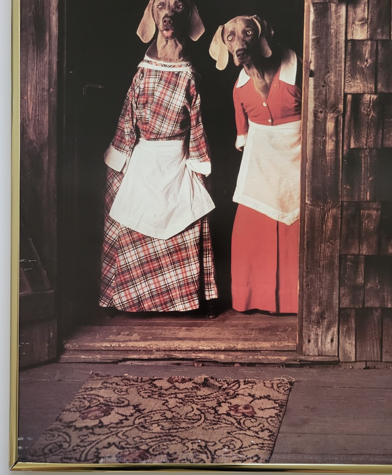 Print 2 Dogs Cooking by William Wegman. Not mat, old gold metal frame Art Size (23X28)