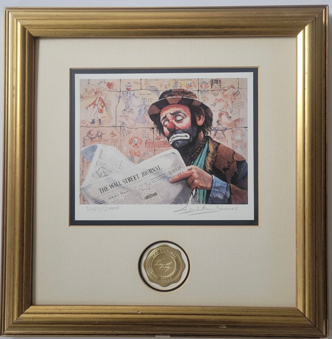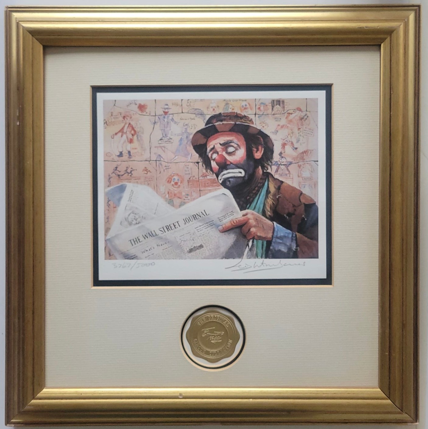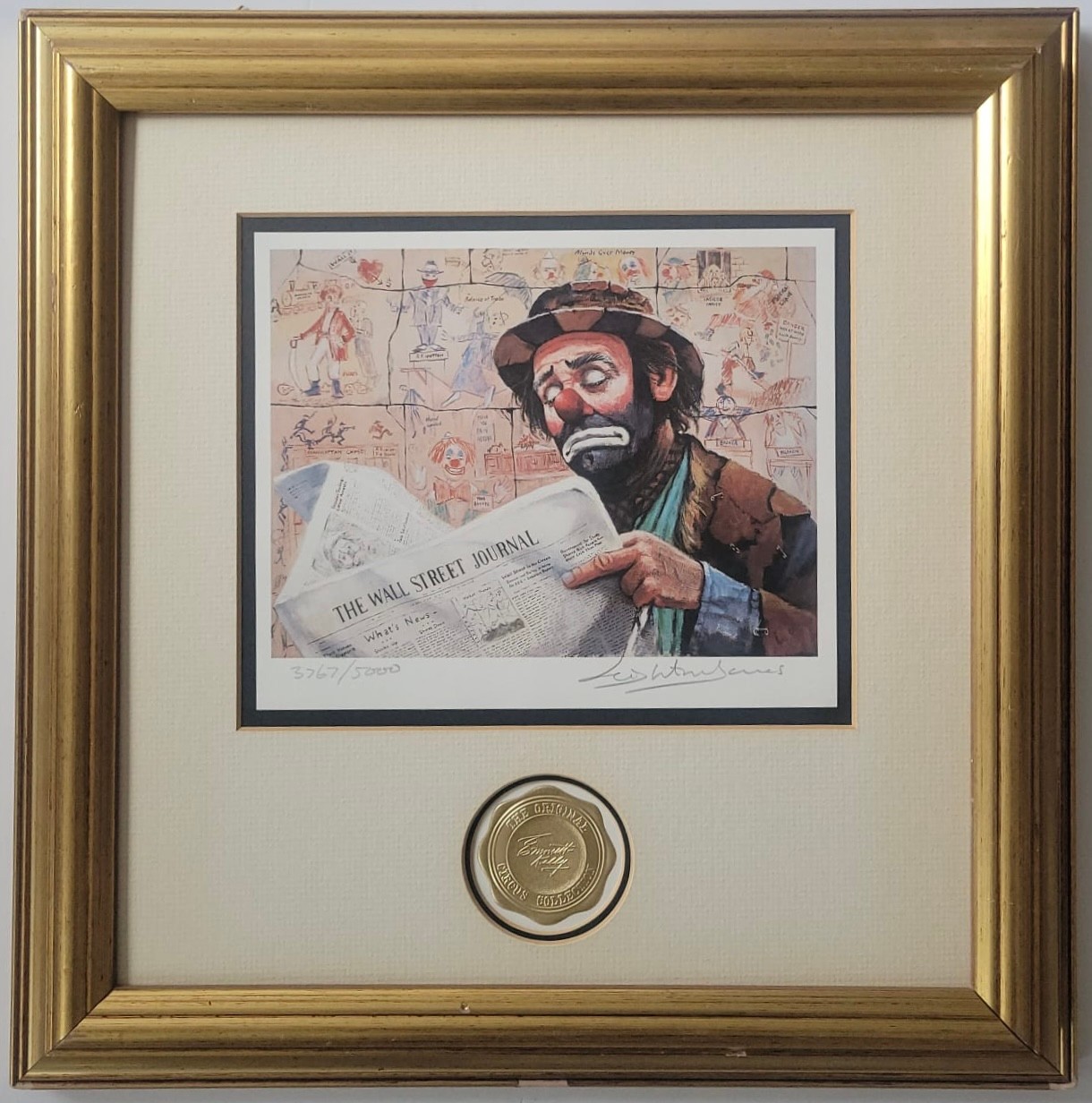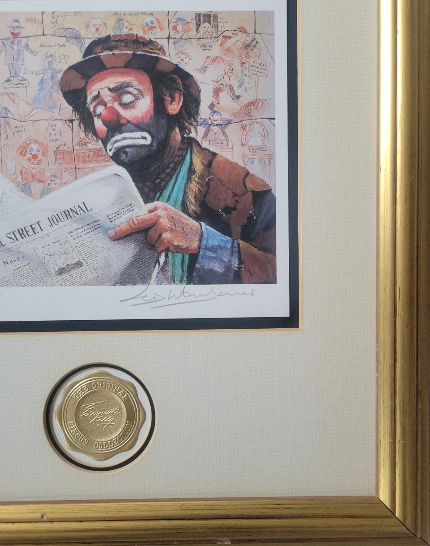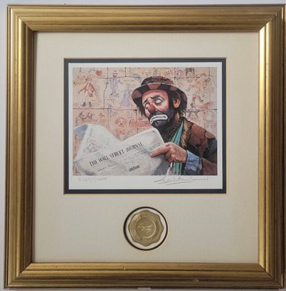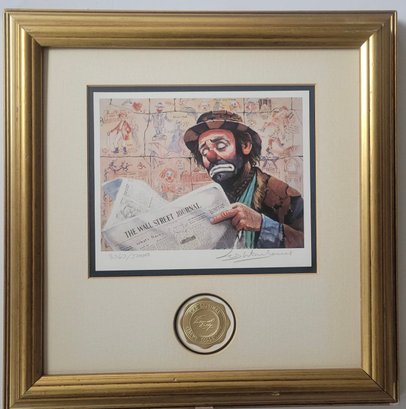 Framed and matted Print titled "The Tycoon" from the Emmett Kelly Circus Collection, featuring artwork by Leighton Jones.