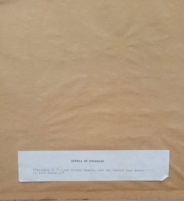 Central Figure: Apphia is typically shown at the center of the composition, often standing or seated at a table, emphasizing her role as the host of the "house church" in Colossae.