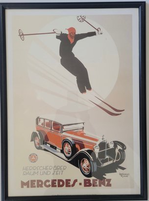 Vingage Art Deco advertising poster for Mercedes-Benz from approximately 1925-1935.