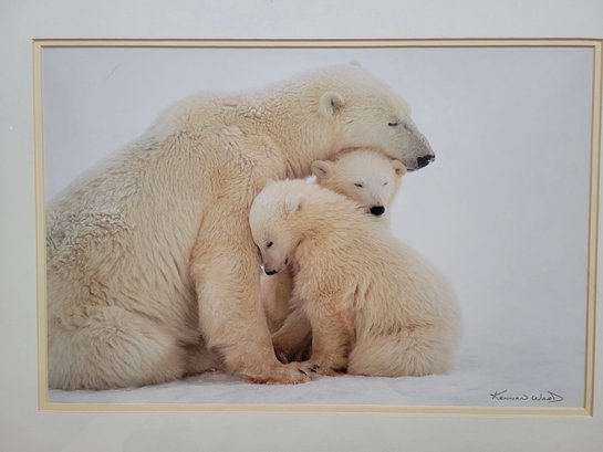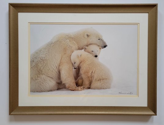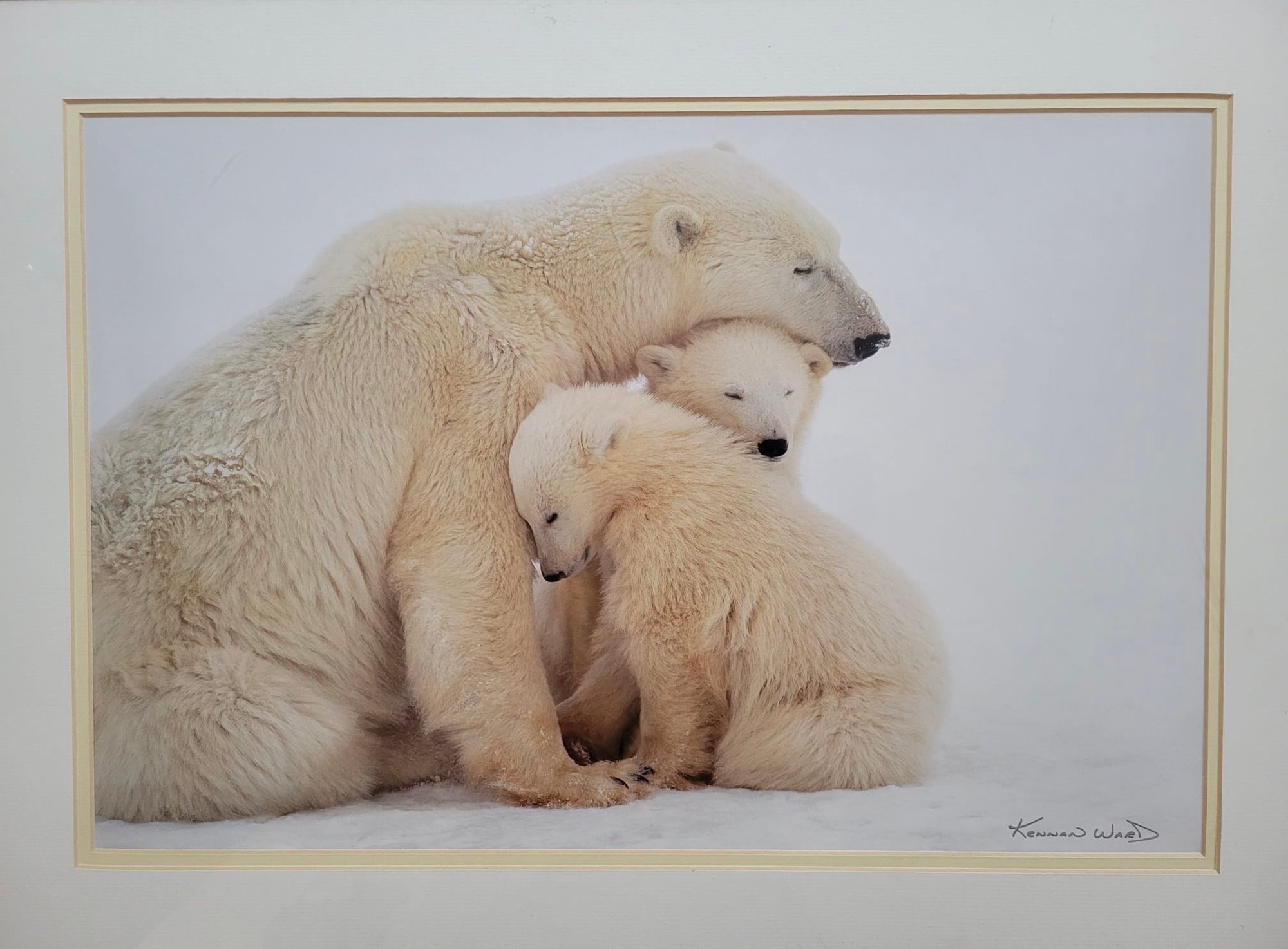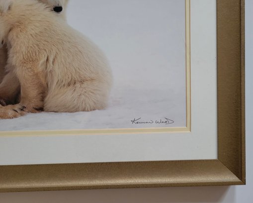 White Polar Bear Mom Cubs. Kennan Ward Photo Art Reproduction. Gold Metal Frame with Double mats Art size 20X14, Frame Size 27 1/2 X 21