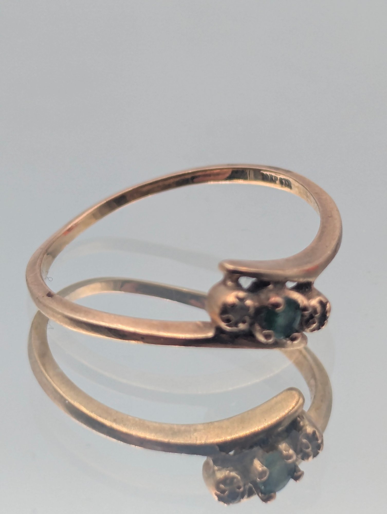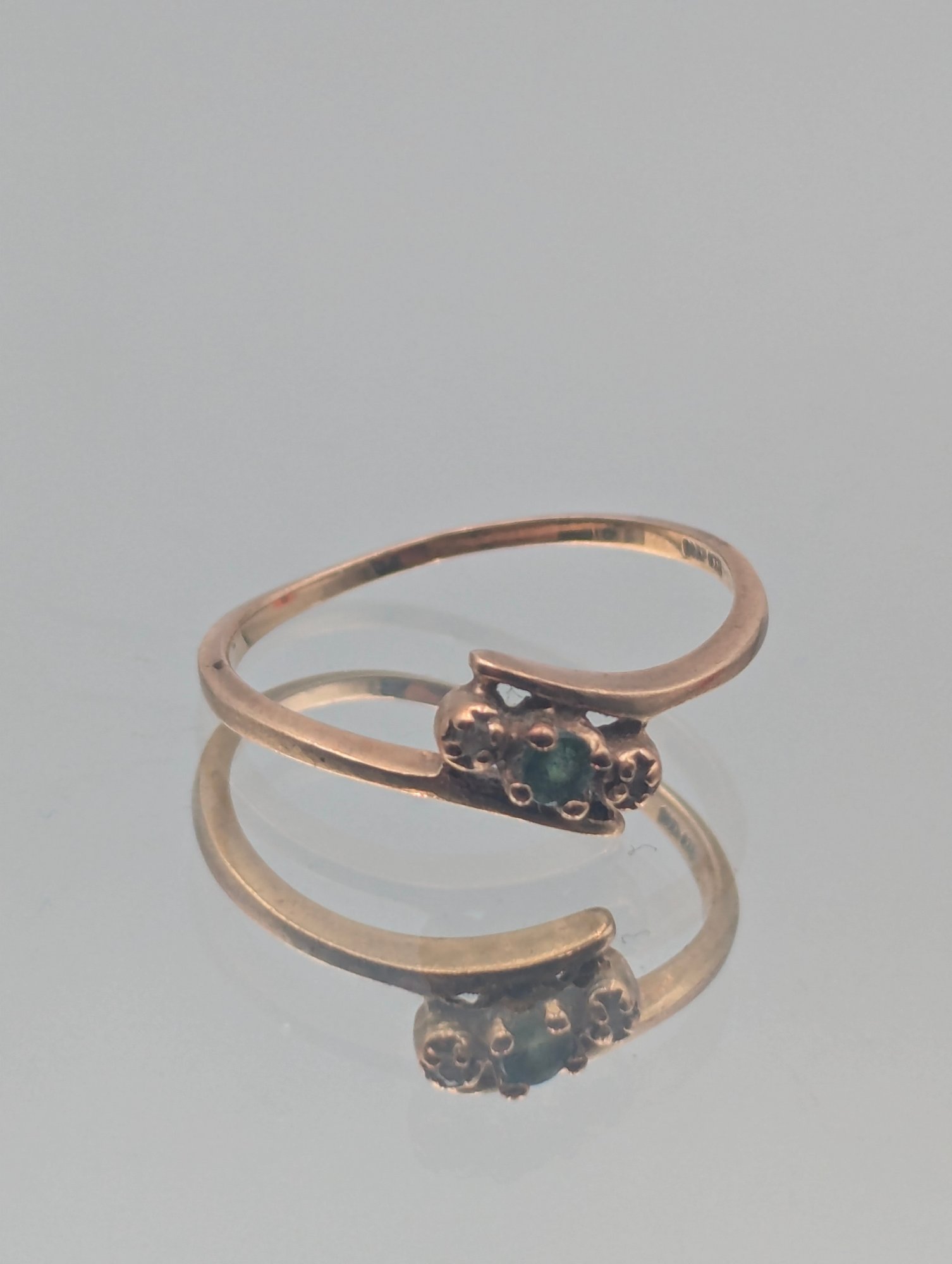 10K Yellow Gold Petite Ring With Green Stone Size 7 1.23g