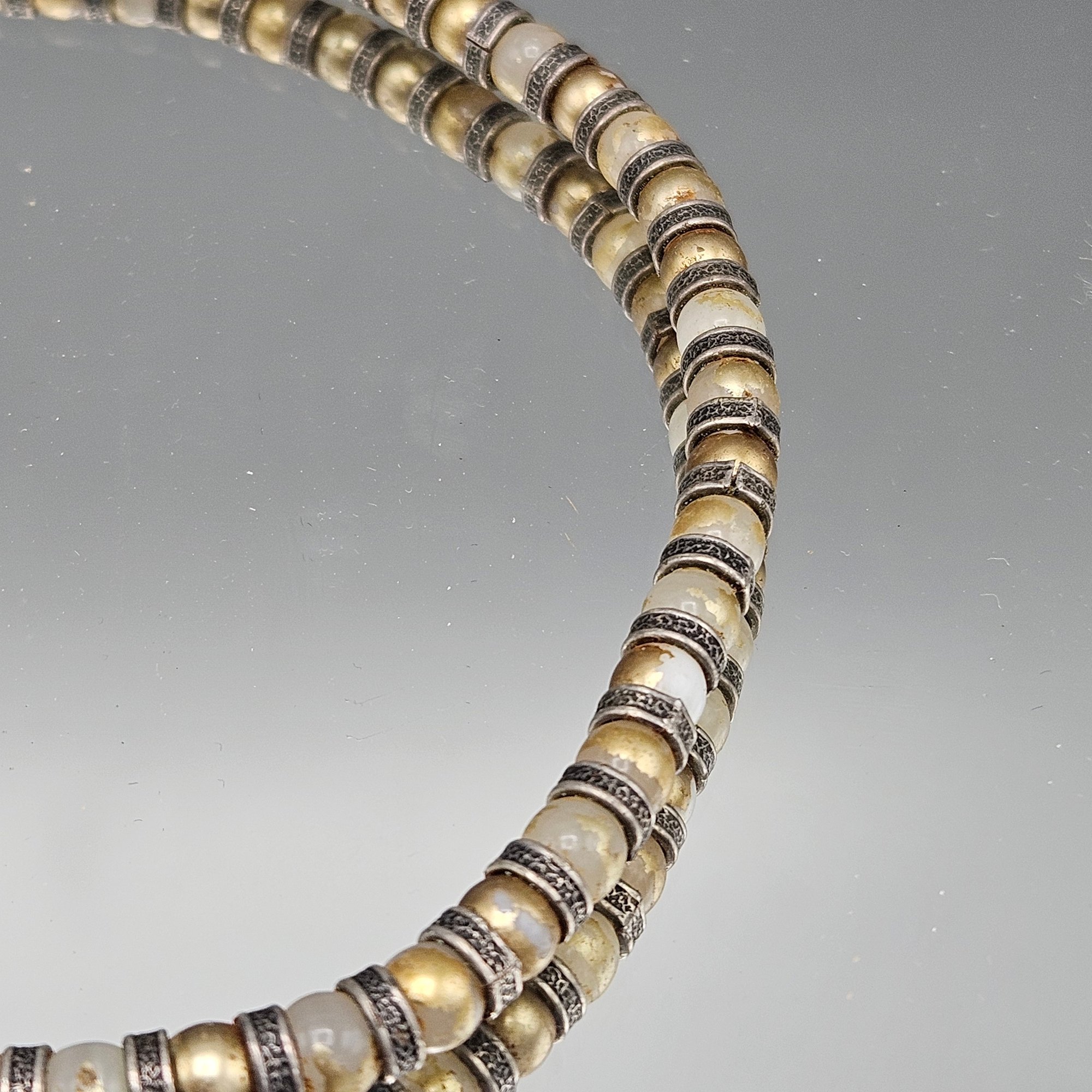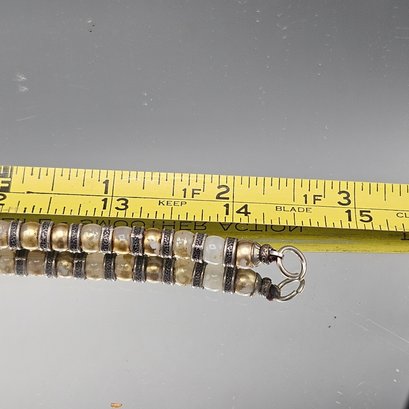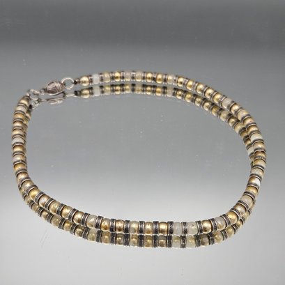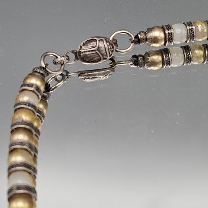 14-Inch Silver-Tone Beaded Necklace with Egyptian Scarab Decorative Clasp