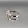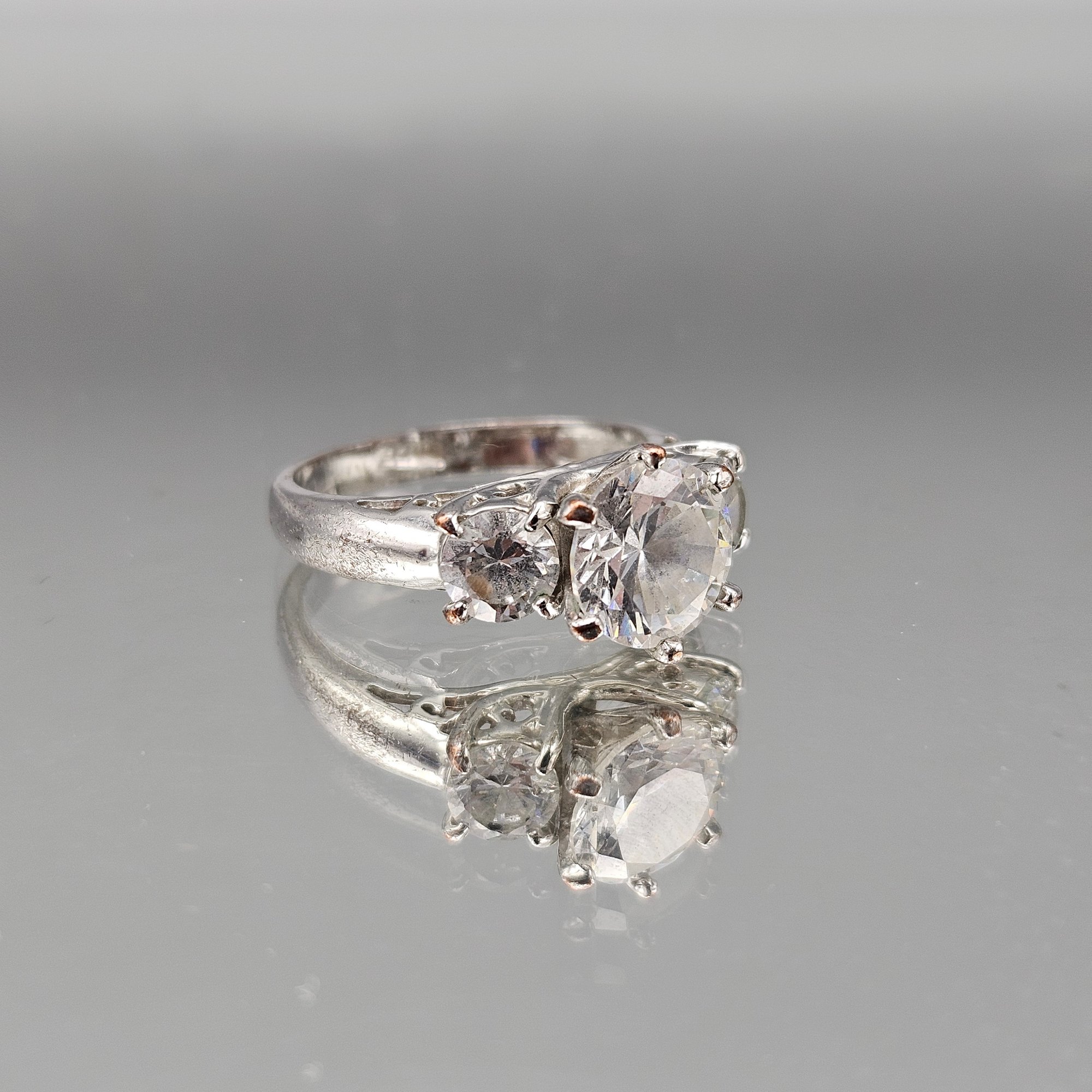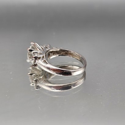 18K HGE Three Stone Clear Solitaire Ring, Silver Tone, Size 6.5